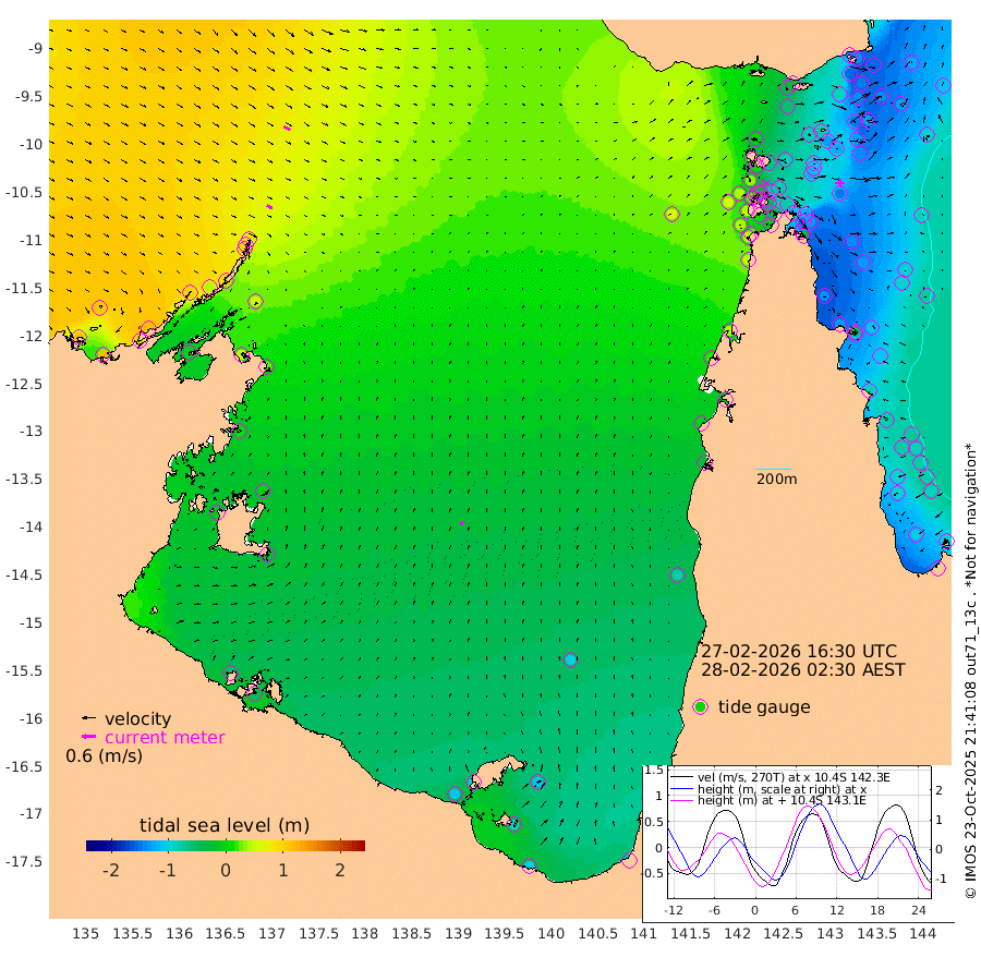 26cm/s 120T +3cm/s rms + 7cm/s -42T. ARA-GOC87 57m 19cm/s 22T +3cm/s rms + 2cm/s -2T. ARA-GOC87 60m 30cm/s 117T +2cm/s rms + 3cm/s 61T. ARA-GOC87 47m -141cm Daru -137cm Bobo Island -96cm Meer Island Barge -126cm Bramble Cay -147cm Unnamed Cay -140cm Pearce Cay -142cm Stephens Island -154cm Merrie England Shoals -151cm Mutacomal Reef -130cm Darnley Island Barge -109cm East Cay -132cm Yorke Island Barge -143cm Rennel Island -134cm Aureed Island -130cm Dungeness Reef -78cm Zagai Island -86cm Yam Island -24cm Dauan Island -15cm Saibai Island -56cm Phipi Reef -87cm Warrior Reef - West -3cm Mabuiag Island Barge -141cm Half Way Island -124cm Coconut Island -144cm Dugong Islet -108cm Poll Island -120cm Kirkcaldie Reef -90cm Suarji Island -99cm Sue Islet 32cm Hawkesbury Island -77cm Alert Patches -79cm Twin Island 35cm Badu Island -67cm St Pauls (Moa Island) 1cm Kubin (Moa Island) -44cm Ince Point -25cm Thursday Island -29cm Nardana Patches -13cm Turtle Head 12cm Round Island 25cm Goods Island 54cm Booby Island 38cm White Rocks Area 64cm Carpentaria -52cm Papou Point 52cm Bampfield Head 49cm Crab Island 43cm Red Wallis Island 1cm Packe Island -150cm Harrington Reef 24cm Herald Camp -22cm Sharp Point -6cm Red Island Point -40cm Possession Island -81cm Alpha Rock -106cm Frederick Point -133cm Wyborn Reef Light -124cm Tetley Island -83cm Triangle Reef -134cm Turtle Head Island -97cm Maclennan Cay -72cm Raine Island -135cm Mcsweeny Reef -129cm Collette Reef -95cm Shadwell Reef -142cm Hannibal Island -130cm Round Point 51cm Vrilya Point -123cm Cape Grenville -110cm Hicks Island -108cm Sir Charles Hardy Island -38cm Harvey Island -110cm Kay Reef -88cm Rocky Island -78cm Chapman Island -74cm Ham Reef -82cm Jubilee Reef -85cm Night Island -79cm Unnamed Reef No. 3 -93cm Morris Island -80cm 1st 3 Mile Opening -88cm Creech Reef -96cm Fife Island -99cm Eden Reef -99cm Stanley Island -110cm Normanby River 115cm Yabooma Island 119cm Hutchison River 116cm Elcho Island 111cm North West Crocodile Island 79cm Cape Wessel 101cm Stevens Island 44cm Guluwuru Island 92cm Hopeful Bay 85cm Auster Point 90cm Two Island Bay 99cm Cadell Strait -4cm Mallison Island 45cm Melville Bay (Gove Harbour) 53cm Truant Island 28cm Cape Arnhem 8cm Cape Grey -7cm Hawk Island -9cm Milner Bay (Groote Eylandt) -30cm Cape Beatrice -53cm West Island -50cm Centre Island -104cm Mornington Island -110cm West Wellesley Islands -109cm Bountiful Island -102cm Albert River Mouth -96cm Sweers Island -109cm Karumba -99cm Nassau River Offshore -79cm Christmas Creek -26cm Archer River -4cm Boyd Point -3cm Weipa (Humbug Point) 16cm Pennefather River 38cm Cullen Point