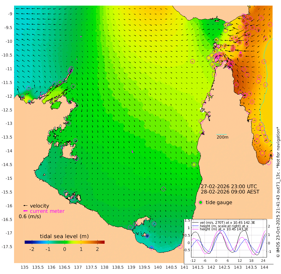 10cm/s 169T +3cm/s rms + 7cm/s -42T. ARA-GOC87 57m 38cm/s 165T +3cm/s rms + 2cm/s -2T. ARA-GOC87 60m 13cm/s -131T +2cm/s rms + 3cm/s 61T. ARA-GOC87 47m 185cm Daru 181cm Bobo Island 129cm Meer Island Barge 163cm Bramble Cay 190cm Unnamed Cay 191cm Pearce Cay 185cm Stephens Island 197cm Merrie England Shoals 197cm Mutacomal Reef 170cm Darnley Island Barge 142cm East Cay 175cm Yorke Island Barge 189cm Rennel Island 176cm Aureed Island 176cm Dungeness Reef 121cm Zagai Island 134cm Yam Island 67cm Dauan Island 59cm Saibai Island 80cm Phipi Reef 126cm Warrior Reef - West 72cm Mabuiag Island Barge 191cm Half Way Island 177cm Coconut Island 196cm Dugong Islet 162cm Poll Island 174cm Kirkcaldie Reef 139cm Suarji Island 151cm Sue Islet 99cm Hawkesbury Island 149cm Alert Patches 150cm Twin Island 81cm Badu Island 137cm St Pauls (Moa Island) 104cm Kubin (Moa Island) 124cm Ince Point 117cm Thursday Island 116cm Nardana Patches 109cm Turtle Head 83cm Round Island 94cm Goods Island 81cm Booby Island 90cm White Rocks Area 66cm Carpentaria 120cm Papou Point 81cm Bampfield Head 59cm Crab Island 86cm Red Wallis Island 109cm Packe Island 207cm Harrington Reef 82cm Herald Camp 31cm Sharp Point 93cm Red Island Point 112cm Possession Island 143cm Alpha Rock 171cm Frederick Point 190cm Wyborn Reef Light 184cm Tetley Island 121cm Triangle Reef 209cm Turtle Head Island 132cm Maclennan Cay 101cm Raine Island 180cm Mcsweeny Reef 166cm Collette Reef 126cm Shadwell Reef 182cm Hannibal Island 171cm Round Point 62cm Vrilya Point 158cm Cape Grenville 144cm Hicks Island 146cm Sir Charles Hardy Island 48cm Harvey Island 144cm Kay Reef 117cm Rocky Island 109cm Chapman Island 105cm Ham Reef 115cm Jubilee Reef 112cm Night Island 112cm Unnamed Reef No. 3 125cm Morris Island 113cm 1st 3 Mile Opening 121cm Creech Reef 124cm Fife Island 132cm Eden Reef 130cm Stanley Island 142cm Normanby River -69cm Yabooma Island -68cm Hutchison River -80cm Elcho Island -80cm North West Crocodile Island -28cm Cape Wessel -57cm Stevens Island 1cm Guluwuru Island -62cm Hopeful Bay -39cm Auster Point -40cm Two Island Bay -40cm Cadell Strait 58cm Mallison Island -12cm Melville Bay (Gove Harbour) -8cm Truant Island -8cm Cape Arnhem -21cm Cape Grey -31cm Hawk Island -63cm Milner Bay (Groote Eylandt) -50cm Cape Beatrice -57cm West Island -65cm Centre Island -55cm Mornington Island -44cm West Wellesley Islands -80cm Bountiful Island -141cm Albert River Mouth -160cm Sweers Island -127cm Karumba -5cm Nassau River Offshore 35cm Christmas Creek 46cm Archer River 56cm Boyd Point 49cm Weipa (Humbug Point) 54cm Pennefather River 50cm Cullen Point