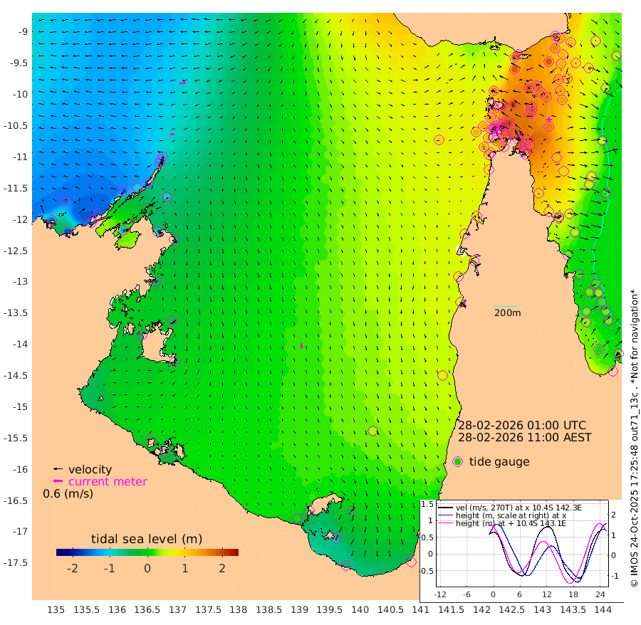28cm/s -98T +3cm/s rms + 7cm/s -42T. ARA-GOC87 57m 34cm/s 173T +3cm/s rms + 2cm/s -2T. ARA-GOC87 60m 39cm/s -100T +2cm/s rms + 3cm/s 61T. ARA-GOC87 47m 153cm Daru 131cm Bobo Island 39cm Meer Island Barge 71cm Bramble Cay 120cm Unnamed Cay 123cm Pearce Cay 104cm Stephens Island 116cm Merrie England Shoals 155cm Mutacomal Reef 87cm Darnley Island Barge 46cm East Cay 117cm Yorke Island Barge 139cm Rennel Island 128cm Aureed Island 162cm Dungeness Reef 167cm Zagai Island 180cm Yam Island 178cm Dauan Island 158cm Saibai Island 183cm Phipi Reef 186cm Warrior Reef - West 161cm Mabuiag Island Barge 136cm Half Way Island 160cm Coconut Island 158cm Dugong Islet 176cm Poll Island 180cm Kirkcaldie Reef 199cm Suarji Island 167cm Sue Islet 150cm Hawkesbury Island 200cm Alert Patches 194cm Twin Island 153cm Badu Island 204cm St Pauls (Moa Island) 160cm Kubin (Moa Island) 185cm Ince Point 178cm Thursday Island 180cm Nardana Patches 168cm Turtle Head 141cm Round Island 141cm Goods Island 126cm Booby Island 132cm White Rocks Area 92cm Carpentaria 169cm Papou Point 121cm Bampfield Head 103cm Crab Island 132cm Red Wallis Island 159cm Packe Island 174cm Harrington Reef 137cm Herald Camp 62cm Sharp Point 143cm Red Island Point 162cm Possession Island 174cm Alpha Rock 185cm Frederick Point 158cm Wyborn Reef Light 166cm Tetley Island 58cm Triangle Reef 159cm Turtle Head Island 53cm Maclennan Cay 18cm Raine Island 115cm Mcsweeny Reef 95cm Collette Reef 49cm Shadwell Reef 96cm Hannibal Island 76cm Round Point 92cm Vrilya Point 67cm Cape Grenville 55cm Hicks Island 56cm Sir Charles Hardy Island 21cm Harvey Island 41cm Kay Reef 27cm Rocky Island 17cm Chapman Island 16cm Ham Reef 25cm Jubilee Reef 31cm Night Island 21cm Unnamed Reef No. 3 28cm Morris Island 26cm 1st 3 Mile Opening 28cm Creech Reef 31cm Fife Island 10cm Eden Reef 26cm Stanley Island 24cm Normanby River -150cm Yabooma Island -162cm Hutchison River -157cm Elcho Island -147cm North West Crocodile Island -114cm Cape Wessel -143cm Stevens Island -95cm Guluwuru Island -144cm Hopeful Bay -121cm Auster Point -128cm Two Island Bay -149cm Cadell Strait -116cm Mallison Island -88cm Melville Bay (Gove Harbour) -92cm Truant Island -59cm Cape Arnhem -47cm Cape Grey -41cm Hawk Island -49cm Milner Bay (Groote Eylandt) -28cm Cape Beatrice -8cm West Island -15cm Centre Island 4cm Mornington Island 9cm West Wellesley Islands -12cm Bountiful Island -52cm Albert River Mouth -76cm Sweers Island -34cm Karumba 41cm Nassau River Offshore 67cm Christmas Creek 62cm Archer River 74cm Boyd Point 71cm Weipa (Humbug Point) 70cm Pennefather River 83cm Cullen Point