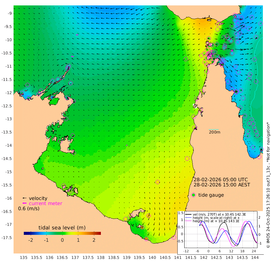 36cm/s -83T +3cm/s rms + 7cm/s -42T. ARA-GOC87 57m 17cm/s -122T +3cm/s rms + 2cm/s -2T. ARA-GOC87 60m 35cm/s -88T +2cm/s rms + 3cm/s 61T. ARA-GOC87 47m -104cm Daru -116cm Bobo Island -83cm Meer Island Barge -109cm Bramble Cay -122cm Unnamed Cay -121cm Pearce Cay -120cm Stephens Island -131cm Merrie England Shoals -118cm Mutacomal Reef -110cm Darnley Island Barge -92cm East Cay -108cm Yorke Island Barge -111cm Rennel Island -105cm Aureed Island -84cm Dungeness Reef -34cm Zagai Island -37cm Yam Island 64cm Dauan Island 50cm Saibai Island 55cm Phipi Reef -13cm Warrior Reef - West 27cm Mabuiag Island Barge -119cm Half Way Island -96cm Coconut Island -111cm Dugong Islet -72cm Poll Island -79cm Kirkcaldie Reef -34cm Suarji Island -66cm Sue Islet 29cm Hawkesbury Island -37cm Alert Patches -48cm Twin Island 47cm Badu Island -31cm St Pauls (Moa Island) 15cm Kubin (Moa Island) -13cm Ince Point -3cm Thursday Island -2cm Nardana Patches 23cm Turtle Head 25cm Round Island 39cm Goods Island 47cm Booby Island 31cm White Rocks Area 18cm Carpentaria -36cm Papou Point 28cm Bampfield Head 46cm Crab Island 41cm Red Wallis Island 24cm Packe Island -126cm Harrington Reef 47cm Herald Camp -2cm Sharp Point 13cm Red Island Point -19cm Possession Island -58cm Alpha Rock -79cm Frederick Point -118cm Wyborn Reef Light -109cm Tetley Island -67cm Triangle Reef -140cm Turtle Head Island -78cm Maclennan Cay -57cm Raine Island -113cm Mcsweeny Reef -104cm Collette Reef -73cm Shadwell Reef -119cm Hannibal Island -115cm Round Point 31cm Vrilya Point -103cm Cape Grenville -92cm Hicks Island -81cm Sir Charles Hardy Island -31cm Harvey Island -95cm Kay Reef -70cm Rocky Island -62cm Chapman Island -61cm Ham Reef -69cm Jubilee Reef -66cm Night Island -64cm Unnamed Reef No. 3 -77cm Morris Island -64cm 1st 3 Mile Opening -70cm Creech Reef -76cm Fife Island -84cm Eden Reef -82cm Stanley Island -99cm Normanby River -61cm Yabooma Island -65cm Hutchison River -50cm Elcho Island -44cm North West Crocodile Island -88cm Cape Wessel -81cm Stevens Island -86cm Guluwuru Island -63cm Hopeful Bay -82cm Auster Point -86cm Two Island Bay -89cm Cadell Strait -142cm Mallison Island -71cm Melville Bay (Gove Harbour) -83cm Truant Island -49cm Cape Arnhem -30cm Cape Grey -10cm Hawk Island 3cm Milner Bay (Groote Eylandt) 19cm Cape Beatrice 33cm West Island 37cm Centre Island 91cm Mornington Island 83cm West Wellesley Islands 118cm Bountiful Island 156cm Albert River Mouth 136cm Sweers Island 156cm Karumba 93cm Nassau River Offshore 80cm Christmas Creek 59cm Archer River 46cm Boyd Point 64cm Weipa (Humbug Point) 26cm Pennefather River 46cm Cullen Point