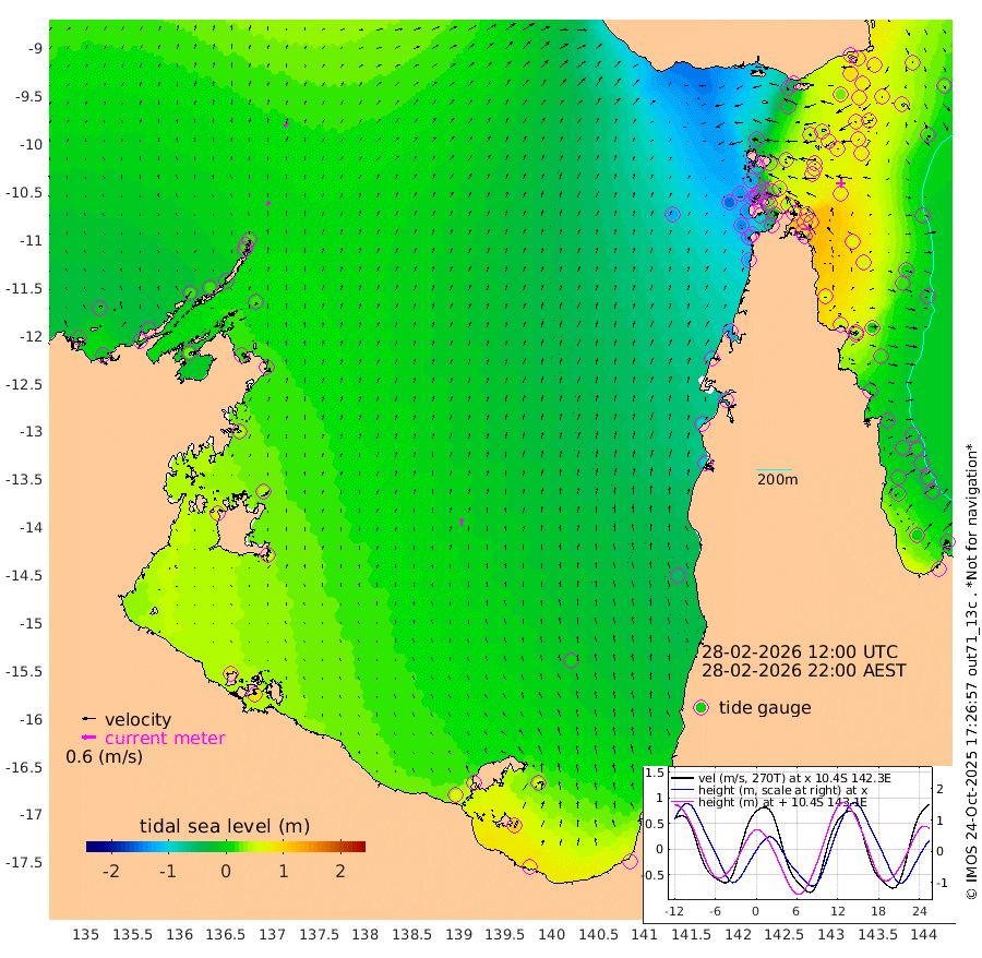 20cm/s 33T +3cm/s rms + 7cm/s -42T. ARA-GOC87 57m 32cm/s 2T +3cm/s rms + 2cm/s -2T. ARA-GOC87 60m 24cm/s 42T +2cm/s rms + 3cm/s 61T. ARA-GOC87 47m 79cm Daru 81cm Bobo Island 17cm Meer Island Barge 46cm Bramble Cay 73cm Unnamed Cay 69cm Pearce Cay 65cm Stephens Island 78cm Merrie England Shoals 86cm Mutacomal Reef 52cm Darnley Island Barge 25cm East Cay 64cm Yorke Island Barge 72cm Rennel Island 70cm Aureed Island 62cm Dungeness Reef 43cm Zagai Island 41cm Yam Island -43cm Dauan Island -34cm Saibai Island -17cm Phipi Reef 28cm Warrior Reef - West -34cm Mabuiag Island Barge 75cm Half Way Island 72cm Coconut Island 74cm Dugong Islet 60cm Poll Island 61cm Kirkcaldie Reef 45cm Suarji Island 53cm Sue Islet -125cm Hawkesbury Island 21cm Alert Patches 32cm Twin Island -114cm Badu Island 27cm St Pauls (Moa Island) -77cm Kubin (Moa Island) -12cm Ince Point -35cm Thursday Island -30cm Nardana Patches -75cm Turtle Head -80cm Round Island -128cm Goods Island -154cm Booby Island -128cm White Rocks Area -127cm Carpentaria 23cm Papou Point -133cm Bampfield Head -129cm Crab Island -139cm Red Wallis Island -97cm Packe Island 94cm Harrington Reef -125cm Herald Camp 17cm Sharp Point -62cm Red Island Point -5cm Possession Island 44cm Alpha Rock 57cm Frederick Point 84cm Wyborn Reef Light 80cm Tetley Island 12cm Triangle Reef 85cm Turtle Head Island 15cm Maclennan Cay -10cm Raine Island 64cm Mcsweeny Reef 54cm Collette Reef 15cm Shadwell Reef 63cm Hannibal Island 48cm Round Point -123cm Vrilya Point 39cm Cape Grenville 29cm Hicks Island 9cm Sir Charles Hardy Island 13cm Harvey Island 22cm Kay Reef 2cm Rocky Island -11cm Chapman Island -11cm Ham Reef -2cm Jubilee Reef 6cm Night Island -9cm Unnamed Reef No. 3 5cm Morris Island -7cm 1st 3 Mile Opening -2cm Creech Reef 11cm Fife Island -4cm Eden Reef 6cm Stanley Island 19cm Normanby River -10cm Yabooma Island -13cm Hutchison River -11cm Elcho Island -8cm North West Crocodile Island 18cm Cape Wessel 17cm Stevens Island 17cm Guluwuru Island 6cm Hopeful Bay 17cm Auster Point 14cm Two Island Bay 3cm Cadell Strait 28cm Mallison Island 20cm Melville Bay (Gove Harbour) 21cm Truant Island 19cm Cape Arnhem 38cm Cape Grey 43cm Hawk Island 72cm Milner Bay (Groote Eylandt) 62cm Cape Beatrice 85cm West Island 85cm Centre Island 60cm Mornington Island 62cm West Wellesley Islands 56cm Bountiful Island 73cm Albert River Mouth 107cm Sweers Island 68cm Karumba 0cm Nassau River Offshore -46cm Christmas Creek -86cm Archer River -97cm Boyd Point -114cm Weipa (Humbug Point) -85cm Pennefather River -120cm Cullen Point