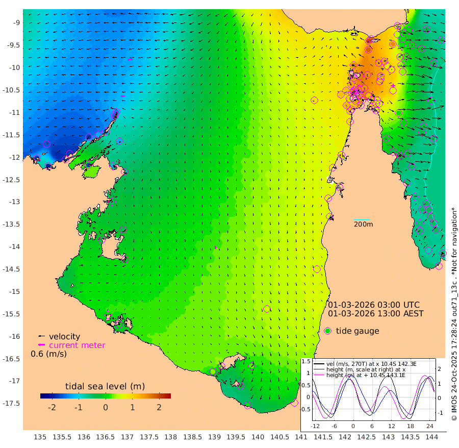 37cm/s -91T +3cm/s rms + 7cm/s -42T. ARA-GOC87 57m 28cm/s -180T +3cm/s rms + 2cm/s -2T. ARA-GOC87 60m 46cm/s -96T +2cm/s rms + 3cm/s 61T. ARA-GOC87 47m 58cm Daru 31cm Bobo Island -41cm Meer Island Barge -31cm Bramble Cay 10cm Unnamed Cay 14cm Pearce Cay -4cm Stephens Island -3cm Merrie England Shoals 47cm Mutacomal Reef -11cm Darnley Island Barge -44cm East Cay 22cm Yorke Island Barge 36cm Rennel Island 33cm Aureed Island 77cm Dungeness Reef 129cm Zagai Island 136cm Yam Island 196cm Dauan Island 176cm Saibai Island 187cm Phipi Reef 153cm Warrior Reef - West 162cm Mabuiag Island Barge 32cm Half Way Island 71cm Coconut Island 58cm Dugong Islet 105cm Poll Island 103cm Kirkcaldie Reef 148cm Suarji Island 105cm Sue Islet 135cm Hawkesbury Island 147cm Alert Patches 139cm Twin Island 151cm Badu Island 162cm St Pauls (Moa Island) 139cm Kubin (Moa Island) 151cm Ince Point 149cm Thursday Island 151cm Nardana Patches 146cm Turtle Head 126cm Round Island 126cm Goods Island 120cm Booby Island 113cm White Rocks Area 90cm Carpentaria 131cm Papou Point 104cm Bampfield Head 106cm Crab Island 123cm Red Wallis Island 135cm Packe Island 65cm Harrington Reef 131cm Herald Camp 57cm Sharp Point 125cm Red Island Point 125cm Possession Island 116cm Alpha Rock 108cm Frederick Point 55cm Wyborn Reef Light 71cm Tetley Island -11cm Triangle Reef 45cm Turtle Head Island -26cm Maclennan Cay -47cm Raine Island 12cm Mcsweeny Reef -2cm Collette Reef -26cm Shadwell Reef -13cm Hannibal Island -32cm Round Point 94cm Vrilya Point -31cm Cape Grenville -33cm Hicks Island -30cm Sir Charles Hardy Island -8cm Harvey Island -52cm Kay Reef -48cm Rocky Island -55cm Chapman Island -51cm Ham Reef -47cm Jubilee Reef -38cm Night Island -50cm Unnamed Reef No. 3 -53cm Morris Island -45cm 1st 3 Mile Opening -47cm Creech Reef -49cm Fife Island -78cm Eden Reef -59cm Stanley Island -72cm Normanby River -179cm Yabooma Island -195cm Hutchison River -178cm Elcho Island -163cm North West Crocodile Island -145cm Cape Wessel -176cm Stevens Island -127cm Guluwuru Island -171cm Hopeful Bay -152cm Auster Point -155cm Two Island Bay -179cm Cadell Strait -169cm Mallison Island -116cm Melville Bay (Gove Harbour) -124cm Truant Island -76cm Cape Arnhem -56cm Cape Grey -43cm Hawk Island -38cm Milner Bay (Groote Eylandt) -17cm Cape Beatrice 12cm West Island 9cm Centre Island 35cm Mornington Island 31cm West Wellesley Islands 23cm Bountiful Island 10cm Albert River Mouth -18cm Sweers Island 27cm Karumba 59cm Nassau River Offshore 75cm Christmas Creek 64cm Archer River 74cm Boyd Point 73cm Weipa (Humbug Point) 69cm Pennefather River 90cm Cullen Point