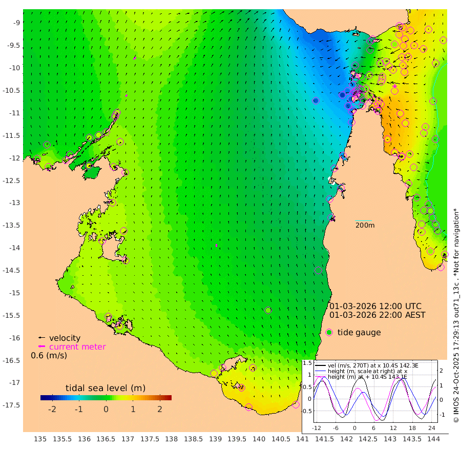 23cm/s 47T +3cm/s rms + 7cm/s -42T. ARA-GOC87 57m 27cm/s -5T +3cm/s rms + 2cm/s -2T. ARA-GOC87 60m 29cm/s 48T +2cm/s rms + 3cm/s 61T. ARA-GOC87 47m 97cm Daru 105cm Bobo Island 48cm Meer Island Barge 77cm Bramble Cay 96cm Unnamed Cay 98cm Pearce Cay 94cm Stephens Island 103cm Merrie England Shoals 102cm Mutacomal Reef 81cm Darnley Island Barge 58cm East Cay 87cm Yorke Island Barge 93cm Rennel Island 94cm Aureed Island 78cm Dungeness Reef 44cm Zagai Island 37cm Yam Island -49cm Dauan Island -45cm Saibai Island -16cm Phipi Reef 32cm Warrior Reef - West -54cm Mabuiag Island Barge 94cm Half Way Island 87cm Coconut Island 89cm Dugong Islet 64cm Poll Island 66cm Kirkcaldie Reef 43cm Suarji Island 53cm Sue Islet -150cm Hawkesbury Island 13cm Alert Patches 25cm Twin Island -132cm Badu Island 15cm St Pauls (Moa Island) -93cm Kubin (Moa Island) -26cm Ince Point -52cm Thursday Island -46cm Nardana Patches -87cm Turtle Head -100cm Round Island -143cm Goods Island -177cm Booby Island -148cm White Rocks Area -158cm Carpentaria 11cm Papou Point -158cm Bampfield Head -149cm Crab Island -161cm Red Wallis Island -111cm Packe Island 108cm Harrington Reef -148cm Herald Camp 10cm Sharp Point -77cm Red Island Point -18cm Possession Island 36cm Alpha Rock 58cm Frederick Point 97cm Wyborn Reef Light 88cm Tetley Island 36cm Triangle Reef 99cm Turtle Head Island 42cm Maclennan Cay 20cm Raine Island 89cm Mcsweeny Reef 79cm Collette Reef 42cm Shadwell Reef 92cm Hannibal Island 80cm Round Point -148cm Vrilya Point 68cm Cape Grenville 59cm Hicks Island 40cm Sir Charles Hardy Island 22cm Harvey Island 52cm Kay Reef 34cm Rocky Island 22cm Chapman Island 18cm Ham Reef 28cm Jubilee Reef 35cm Night Island 22cm Unnamed Reef No. 3 38cm Morris Island 23cm 1st 3 Mile Opening 30cm Creech Reef 46cm Fife Island 36cm Eden Reef 38cm Stanley Island 55cm Normanby River 15cm Yabooma Island 25cm Hutchison River 18cm Elcho Island 16cm North West Crocodile Island 39cm Cape Wessel 43cm Stevens Island 51cm Guluwuru Island 31cm Hopeful Bay 38cm Auster Point 34cm Two Island Bay 42cm Cadell Strait 76cm Mallison Island 50cm Melville Bay (Gove Harbour) 50cm Truant Island 41cm Cape Arnhem 52cm Cape Grey 56cm Hawk Island 73cm Milner Bay (Groote Eylandt) 66cm Cape Beatrice 77cm West Island 77cm Centre Island 79cm Mornington Island 81cm West Wellesley Islands 83cm Bountiful Island 106cm Albert River Mouth 138cm Sweers Island 98cm Karumba 23cm Nassau River Offshore -27cm Christmas Creek -79cm Archer River -98cm Boyd Point -111cm Weipa (Humbug Point) -96cm Pennefather River -139cm Cullen Point