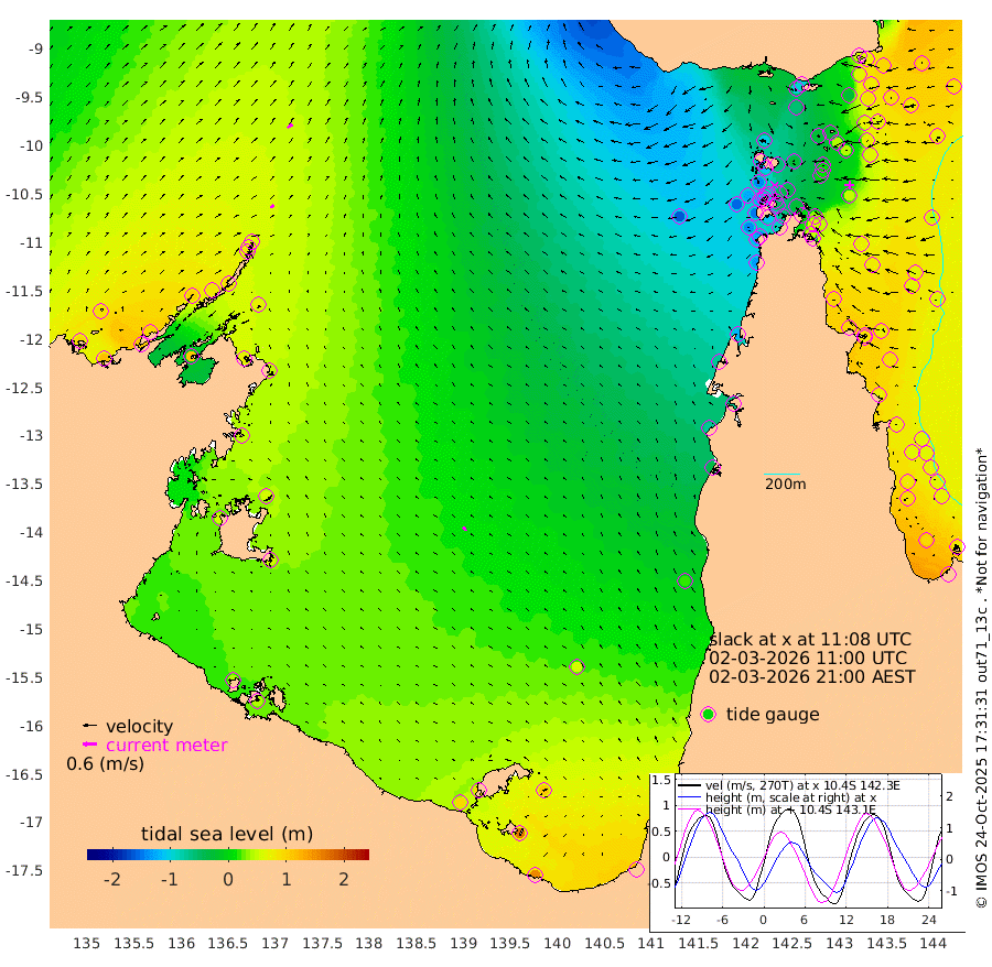 20cm/s 65T +3cm/s rms + 7cm/s -42T. ARA-GOC87 57m 20cm/s -33T +3cm/s rms + 2cm/s -2T. ARA-GOC87 60m 28cm/s 60T +2cm/s rms + 3cm/s 61T. ARA-GOC87 47m 58cm Daru 75cm Bobo Island 74cm Meer Island Barge 92cm Bramble Cay 80cm Unnamed Cay 85cm Pearce Cay 88cm Stephens Island 93cm Merrie England Shoals 65cm Mutacomal Reef 79cm Darnley Island Barge 87cm East Cay 64cm Yorke Island Barge 68cm Rennel Island 68cm Aureed Island 39cm Dungeness Reef -20cm Zagai Island -27cm Yam Island -96cm Dauan Island -97cm Saibai Island -57cm Phipi Reef -26cm Warrior Reef - West -104cm Mabuiag Island Barge 64cm Half Way Island 43cm Coconut Island 49cm Dugong Islet 8cm Poll Island 12cm Kirkcaldie Reef -26cm Suarji Island -7cm Sue Islet -141cm Hawkesbury Island -45cm Alert Patches -37cm Twin Island -129cm Badu Island -58cm St Pauls (Moa Island) -109cm Kubin (Moa Island) -74cm Ince Point -90cm Thursday Island -87cm Nardana Patches -97cm Turtle Head -111cm Round Island -122cm Goods Island -150cm Booby Island -127cm White Rocks Area -158cm Carpentaria -49cm Papou Point -147cm Bampfield Head -126cm Crab Island -140cm Red Wallis Island -108cm Packe Island 56cm Harrington Reef -142cm Herald Camp -21cm Sharp Point -85cm Red Island Point -62cm Possession Island -28cm Alpha Rock 0cm Frederick Point 51cm Wyborn Reef Light 35cm Tetley Island 51cm Triangle Reef 52cm Turtle Head Island 64cm Maclennan Cay 65cm Raine Island 74cm Mcsweeny Reef 77cm Collette Reef 66cm Shadwell Reef 92cm Hannibal Island 97cm Round Point -130cm Vrilya Point 84cm Cape Grenville 81cm Hicks Island 68cm Sir Charles Hardy Island 25cm Harvey Island 85cm Kay Reef 73cm Rocky Island 72cm Chapman Island 62cm Ham Reef 67cm Jubilee Reef 67cm Night Island 68cm Unnamed Reef No. 3 79cm Morris Island 63cm 1st 3 Mile Opening 70cm Creech Reef 85cm Fife Island 95cm Eden Reef 81cm Stanley Island 99cm Normanby River 91cm Yabooma Island 114cm Hutchison River 96cm Elcho Island 89cm North West Crocodile Island 67cm Cape Wessel 99cm Stevens Island 77cm Guluwuru Island 93cm Hopeful Bay 76cm Auster Point 68cm Two Island Bay 109cm Cadell Strait 105cm Mallison Island 75cm Melville Bay (Gove Harbour) 72cm Truant Island 52cm Cape Arnhem 52cm Cape Grey 56cm Hawk Island 56cm Milner Bay (Groote Eylandt) 55cm Cape Beatrice 43cm West Island 44cm Centre Island 91cm Mornington Island 92cm West Wellesley Islands 112cm Bountiful Island 150cm Albert River Mouth 168cm Sweers Island 140cm Karumba 60cm Nassau River Offshore 15cm Christmas Creek -31cm Archer River -68cm Boyd Point -63cm Weipa (Humbug Point) -74cm Pennefather River -118cm Cullen Point