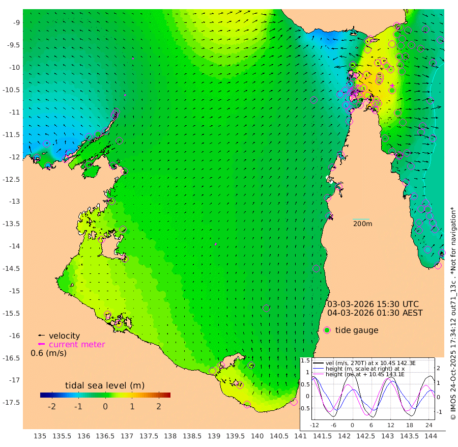 14cm/s 33T +3cm/s rms + 7cm/s -42T. ARA-GOC87 57m 23cm/s 19T +3cm/s rms + 2cm/s -2T. ARA-GOC87 60m 14cm/s 38T +2cm/s rms + 3cm/s 61T. ARA-GOC87 47m 25cm Daru 21cm Bobo Island -45cm Meer Island Barge -40cm Bramble Cay -9cm Unnamed Cay -6cm Pearce Cay -14cm Stephens Island -19cm Merrie England Shoals 11cm Mutacomal Reef -14cm Darnley Island Barge -54cm East Cay 9cm Yorke Island Barge 2cm Rennel Island 19cm Aureed Island 26cm Dungeness Reef 70cm Zagai Island 53cm Yam Island 46cm Dauan Island 53cm Saibai Island 45cm Phipi Reef 60cm Warrior Reef - West 28cm Mabuiag Island Barge 7cm Half Way Island 34cm Coconut Island 18cm Dugong Islet 44cm Poll Island 35cm Kirkcaldie Reef 66cm Suarji Island 48cm Sue Islet -99cm Hawkesbury Island 34cm Alert Patches 41cm Twin Island -59cm Badu Island 58cm St Pauls (Moa Island) -43cm Kubin (Moa Island) 17cm Ince Point -1cm Thursday Island 5cm Nardana Patches -39cm Turtle Head -51cm Round Island -91cm Goods Island -105cm Booby Island -99cm White Rocks Area -59cm Carpentaria 41cm Papou Point -89cm Bampfield Head -87cm Crab Island -99cm Red Wallis Island -69cm Packe Island 33cm Harrington Reef -89cm Herald Camp 31cm Sharp Point -42cm Red Island Point 12cm Possession Island 41cm Alpha Rock 38cm Frederick Point 24cm Wyborn Reef Light 32cm Tetley Island -34cm Triangle Reef 18cm Turtle Head Island -44cm Maclennan Cay -65cm Raine Island -5cm Mcsweeny Reef -17cm Collette Reef -43cm Shadwell Reef -22cm Hannibal Island -47cm Round Point -80cm Vrilya Point -45cm Cape Grenville -46cm Hicks Island -55cm Sir Charles Hardy Island -11cm Harvey Island -64cm Kay Reef -63cm Rocky Island -75cm Chapman Island -69cm Ham Reef -62cm Jubilee Reef -51cm Night Island -71cm Unnamed Reef No. 3 -66cm Morris Island -60cm 1st 3 Mile Opening -63cm Creech Reef -60cm Fife Island -86cm Eden Reef -71cm Stanley Island -76cm Normanby River -120cm Yabooma Island -123cm Hutchison River -108cm Elcho Island -108cm North West Crocodile Island -38cm Cape Wessel -80cm Stevens Island -13cm Guluwuru Island -87cm Hopeful Bay -53cm Auster Point -56cm Two Island Bay -83cm Cadell Strait 3cm Mallison Island -14cm Melville Bay (Gove Harbour) -12cm Truant Island 7cm Cape Arnhem 24cm Cape Grey 24cm Hawk Island 58cm Milner Bay (Groote Eylandt) 46cm Cape Beatrice 78cm West Island 81cm Centre Island 42cm Mornington Island 39cm West Wellesley Islands 29cm Bountiful Island 35cm Albert River Mouth 62cm Sweers Island 26cm Karumba -14cm Nassau River Offshore -44cm Christmas Creek -74cm Archer River -65cm Boyd Point -87cm Weipa (Humbug Point) -60cm Pennefather River -77cm Cullen Point