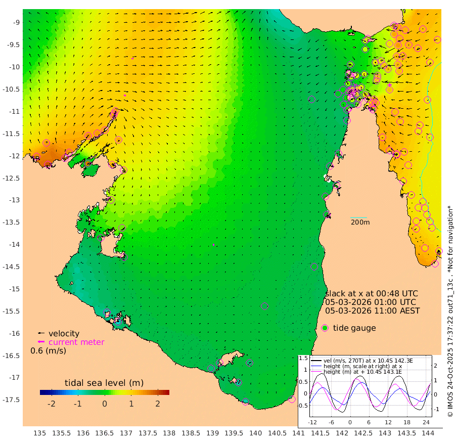 20cm/s 103T +3cm/s rms + 7cm/s -42T. ARA-GOC87 57m 17cm/s -178T +3cm/s rms + 2cm/s -2T. ARA-GOC87 60m 17cm/s 84T +2cm/s rms + 3cm/s 61T. ARA-GOC87 47m 124cm Daru 132cm Bobo Island 87cm Meer Island Barge 116cm Bramble Cay 126cm Unnamed Cay 136cm Pearce Cay 124cm Stephens Island 126cm Merrie England Shoals 131cm Mutacomal Reef 111cm Darnley Island Barge 101cm East Cay 114cm Yorke Island Barge 126cm Rennel Island 121cm Aureed Island 110cm Dungeness Reef 84cm Zagai Island 86cm Yam Island 53cm Dauan Island 45cm Saibai Island 49cm Phipi Reef 92cm Warrior Reef - West 35cm Mabuiag Island Barge 116cm Half Way Island 115cm Coconut Island 119cm Dugong Islet 102cm Poll Island 94cm Kirkcaldie Reef 82cm Suarji Island 88cm Sue Islet 33cm Hawkesbury Island 70cm Alert Patches 80cm Twin Island 24cm Badu Island 71cm St Pauls (Moa Island) 46cm Kubin (Moa Island) 55cm Ince Point 41cm Thursday Island 45cm Nardana Patches 37cm Turtle Head 31cm Round Island 20cm Goods Island -9cm Booby Island 11cm White Rocks Area -39cm Carpentaria 65cm Papou Point 10cm Bampfield Head -23cm Crab Island 3cm Red Wallis Island 38cm Packe Island 126cm Harrington Reef 17cm Herald Camp 9cm Sharp Point 26cm Red Island Point 50cm Possession Island 84cm Alpha Rock 102cm Frederick Point 133cm Wyborn Reef Light 128cm Tetley Island 87cm Triangle Reef 130cm Turtle Head Island 87cm Maclennan Cay 68cm Raine Island 119cm Mcsweeny Reef 109cm Collette Reef 82cm Shadwell Reef 120cm Hannibal Island 124cm Round Point -43cm Vrilya Point 102cm Cape Grenville 99cm Hicks Island 104cm Sir Charles Hardy Island 31cm Harvey Island 95cm Kay Reef 82cm Rocky Island 81cm Chapman Island 74cm Ham Reef 77cm Jubilee Reef 73cm Night Island 76cm Unnamed Reef No. 3 85cm Morris Island 68cm 1st 3 Mile Opening 76cm Creech Reef 93cm Fife Island 93cm Eden Reef 81cm Stanley Island 100cm Normanby River 153cm Yabooma Island 188cm Hutchison River 147cm Elcho Island 140cm North West Crocodile Island 132cm Cape Wessel 153cm Stevens Island 136cm Guluwuru Island 134cm Hopeful Bay 128cm Auster Point 133cm Two Island Bay 179cm Cadell Strait 171cm Mallison Island 123cm Melville Bay (Gove Harbour) 132cm Truant Island 81cm Cape Arnhem 38cm Cape Grey 27cm Hawk Island -30cm Milner Bay (Groote Eylandt) -31cm Cape Beatrice -81cm West Island -93cm Centre Island -62cm Mornington Island -60cm West Wellesley Islands -55cm Bountiful Island -76cm Albert River Mouth -87cm Sweers Island -76cm Karumba -37cm Nassau River Offshore -21cm Christmas Creek -19cm Archer River -11cm Boyd Point -11cm Weipa (Humbug Point) -38cm Pennefather River -28cm Cullen Point