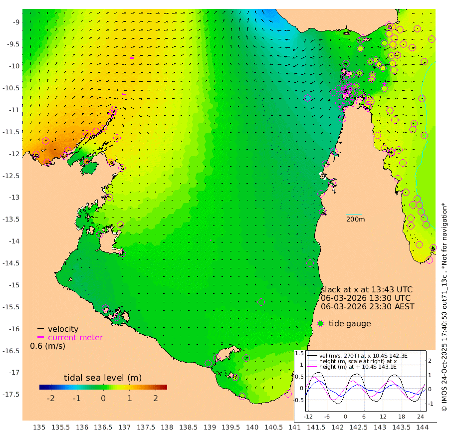 37cm/s 103T +3cm/s rms + 7cm/s -42T. ARA-GOC87 57m 6cm/s -35T +3cm/s rms + 2cm/s -2T. ARA-GOC87 60m 38cm/s 91T +2cm/s rms + 3cm/s 61T. ARA-GOC87 47m 66cm Daru 75cm Bobo Island 42cm Meer Island Barge 62cm Bramble Cay 60cm Unnamed Cay 76cm Pearce Cay 61cm Stephens Island 64cm Merrie England Shoals 62cm Mutacomal Reef 53cm Darnley Island Barge 51cm East Cay 55cm Yorke Island Barge 59cm Rennel Island 62cm Aureed Island 53cm Dungeness Reef 42cm Zagai Island 28cm Yam Island 17cm Dauan Island 11cm Saibai Island 41cm Phipi Reef 43cm Warrior Reef - West 0cm Mabuiag Island Barge 51cm Half Way Island 64cm Coconut Island 44cm Dugong Islet 44cm Poll Island 39cm Kirkcaldie Reef 31cm Suarji Island 33cm Sue Islet -27cm Hawkesbury Island 22cm Alert Patches 25cm Twin Island -1cm Badu Island 19cm St Pauls (Moa Island) -13cm Kubin (Moa Island) 5cm Ince Point -5cm Thursday Island -3cm Nardana Patches -8cm Turtle Head -19cm Round Island -25cm Goods Island -50cm Booby Island -37cm White Rocks Area -83cm Carpentaria 19cm Papou Point -47cm Bampfield Head -37cm Crab Island -47cm Red Wallis Island -20cm Packe Island 57cm Harrington Reef -53cm Herald Camp 0cm Sharp Point 0cm Red Island Point 8cm Possession Island 19cm Alpha Rock 41cm Frederick Point 65cm Wyborn Reef Light 60cm Tetley Island 41cm Triangle Reef 65cm Turtle Head Island 34cm Maclennan Cay 37cm Raine Island 59cm Mcsweeny Reef 57cm Collette Reef 42cm Shadwell Reef 63cm Hannibal Island 67cm Round Point -51cm Vrilya Point 46cm Cape Grenville 49cm Hicks Island 36cm Sir Charles Hardy Island 13cm Harvey Island 44cm Kay Reef 39cm Rocky Island 43cm Chapman Island 32cm Ham Reef 36cm Jubilee Reef 34cm Night Island 36cm Unnamed Reef No. 3 41cm Morris Island 31cm 1st 3 Mile Opening 34cm Creech Reef 49cm Fife Island 46cm Eden Reef 35cm Stanley Island 45cm Normanby River 134cm Yabooma Island 173cm Hutchison River 140cm Elcho Island 131cm North West Crocodile Island 102cm Cape Wessel 145cm Stevens Island 115cm Guluwuru Island 126cm Hopeful Bay 114cm Auster Point 103cm Two Island Bay 171cm Cadell Strait 149cm Mallison Island 110cm Melville Bay (Gove Harbour) 113cm Truant Island 76cm Cape Arnhem 53cm Cape Grey 43cm Hawk Island 11cm Milner Bay (Groote Eylandt) 2cm Cape Beatrice -40cm West Island -40cm Centre Island 3cm Mornington Island -6cm West Wellesley Islands 14cm Bountiful Island 32cm Albert River Mouth 44cm Sweers Island 33cm Karumba 6cm Nassau River Offshore -4cm Christmas Creek -10cm Archer River -29cm Boyd Point -25cm Weipa (Humbug Point) -23cm Pennefather River -53cm Cullen Point