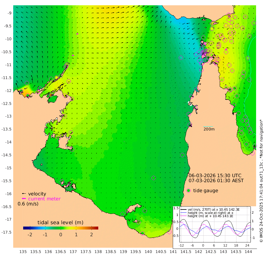 31cm/s 91T +3cm/s rms + 7cm/s -42T. ARA-GOC87 57m 5cm/s 85T +3cm/s rms + 2cm/s -2T. ARA-GOC87 60m 29cm/s 79T +2cm/s rms + 3cm/s 61T. ARA-GOC87 47m 65cm Daru 74cm Bobo Island 24cm Meer Island Barge 33cm Bramble Cay 43cm Unnamed Cay 62cm Pearce Cay 46cm Stephens Island 39cm Merrie England Shoals 50cm Mutacomal Reef 47cm Darnley Island Barge 24cm East Cay 57cm Yorke Island Barge 47cm Rennel Island 69cm Aureed Island 56cm Dungeness Reef 75cm Zagai Island 51cm Yam Island 48cm Dauan Island 54cm Saibai Island 57cm Phipi Reef 74cm Warrior Reef - West 15cm Mabuiag Island Barge 45cm Half Way Island 68cm Coconut Island 46cm Dugong Islet 56cm Poll Island 47cm Kirkcaldie Reef 57cm Suarji Island 56cm Sue Islet -80cm Hawkesbury Island 31cm Alert Patches 38cm Twin Island -38cm Badu Island 42cm St Pauls (Moa Island) -39cm Kubin (Moa Island) 10cm Ince Point -8cm Thursday Island -3cm Nardana Patches -30cm Turtle Head -53cm Round Island -70cm Goods Island -94cm Booby Island -89cm White Rocks Area -78cm Carpentaria 33cm Papou Point -89cm Bampfield Head -77cm Crab Island -88cm Red Wallis Island -55cm Packe Island 60cm Harrington Reef -91cm Herald Camp 17cm Sharp Point -26cm Red Island Point 4cm Possession Island 34cm Alpha Rock 50cm Frederick Point 59cm Wyborn Reef Light 59cm Tetley Island 27cm Triangle Reef 53cm Turtle Head Island 18cm Maclennan Cay 8cm Raine Island 48cm Mcsweeny Reef 42cm Collette Reef 22cm Shadwell Reef 44cm Hannibal Island 32cm Round Point -78cm Vrilya Point 20cm Cape Grenville 23cm Hicks Island 19cm Sir Charles Hardy Island 7cm Harvey Island 12cm Kay Reef 12cm Rocky Island 11cm Chapman Island 7cm Ham Reef 12cm Jubilee Reef 13cm Night Island 9cm Unnamed Reef No. 3 11cm Morris Island 6cm 1st 3 Mile Opening 10cm Creech Reef 20cm Fife Island 10cm Eden Reef 4cm Stanley Island 8cm Normanby River -33cm Yabooma Island -7cm Hutchison River -17cm Elcho Island -25cm North West Crocodile Island 34cm Cape Wessel 9cm Stevens Island 78cm Guluwuru Island -1cm Hopeful Bay 18cm Auster Point 11cm Two Island Bay 44cm Cadell Strait 172cm Mallison Island 63cm Melville Bay (Gove Harbour) 68cm Truant Island 58cm Cape Arnhem 44cm Cape Grey 34cm Hawk Island 20cm Milner Bay (Groote Eylandt) 10cm Cape Beatrice -2cm West Island -1cm Centre Island 17cm Mornington Island 10cm West Wellesley Islands 11cm Bountiful Island 9cm Albert River Mouth 26cm Sweers Island 6cm Karumba 1cm Nassau River Offshore -11cm Christmas Creek -33cm Archer River -39cm Boyd Point -52cm Weipa (Humbug Point) -44cm Pennefather River -72cm Cullen Point