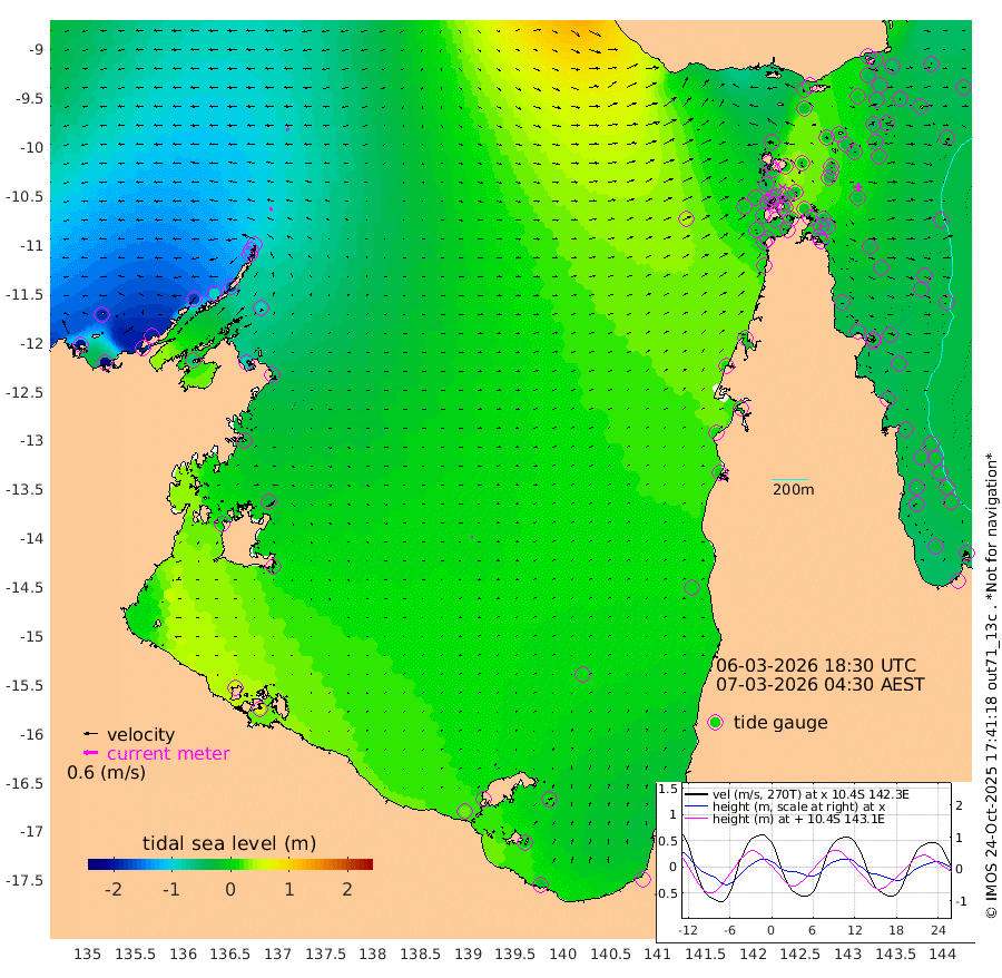 13cm/s -67T +3cm/s rms + 7cm/s -42T. ARA-GOC87 57m 10cm/s 89T +3cm/s rms + 2cm/s -2T. ARA-GOC87 60m 15cm/s -90T +2cm/s rms + 3cm/s 61T. ARA-GOC87 47m -35cm Daru -36cm Bobo Island -26cm Meer Island Barge -44cm Bramble Cay -41cm Unnamed Cay -42cm Pearce Cay -36cm Stephens Island -46cm Merrie England Shoals -43cm Mutacomal Reef -25cm Darnley Island Barge -37cm East Cay -23cm Yorke Island Barge -39cm Rennel Island -23cm Aureed Island -25cm Dungeness Reef -6cm Zagai Island -14cm Yam Island -7cm Dauan Island 6cm Saibai Island -15cm Phipi Reef -14cm Warrior Reef - West -2cm Mabuiag Island Barge -29cm Half Way Island -27cm Coconut Island -25cm Dugong Islet -20cm Poll Island -18cm Kirkcaldie Reef -1cm Suarji Island -7cm Sue Islet -41cm Hawkesbury Island -8cm Alert Patches -10cm Twin Island -28cm Badu Island -3cm St Pauls (Moa Island) -28cm Kubin (Moa Island) -9cm Ince Point -7cm Thursday Island -8cm Nardana Patches -18cm Turtle Head -29cm Round Island -25cm Goods Island -9cm Booby Island -21cm White Rocks Area 44cm Carpentaria -9cm Papou Point -12cm Bampfield Head -9cm Crab Island -15cm Red Wallis Island -29cm Packe Island -26cm Harrington Reef -24cm Herald Camp 7cm Sharp Point -21cm Red Island Point -12cm Possession Island -12cm Alpha Rock -20cm Frederick Point -41cm Wyborn Reef Light -37cm Tetley Island -27cm Triangle Reef -37cm Turtle Head Island -24cm Maclennan Cay -28cm Raine Island -33cm Mcsweeny Reef -33cm Collette Reef -27cm Shadwell Reef -38cm Hannibal Island -51cm Round Point 11cm Vrilya Point -35cm Cape Grenville -36cm Hicks Island -29cm Sir Charles Hardy Island -9cm Harvey Island -35cm Kay Reef -31cm Rocky Island -33cm Chapman Island -26cm Ham Reef -26cm Jubilee Reef -25cm Night Island -28cm Unnamed Reef No. 3 -32cm Morris Island -20cm 1st 3 Mile Opening -24cm Creech Reef -37cm Fife Island -36cm Eden Reef -30cm Stanley Island -41cm Normanby River -196cm Yabooma Island -221cm Hutchison River -188cm Elcho Island -187cm North West Crocodile Island -107cm Cape Wessel -175cm Stevens Island -85cm Guluwuru Island -160cm Hopeful Bay -127cm Auster Point -131cm Two Island Bay -181cm Cadell Strait -64cm Mallison Island -88cm Melville Bay (Gove Harbour) -89cm Truant Island -48cm Cape Arnhem -23cm Cape Grey -24cm Hawk Island 13cm Milner Bay (Groote Eylandt) 13cm Cape Beatrice 58cm West Island 62cm Centre Island 20cm Mornington Island 26cm West Wellesley Islands 8cm Bountiful Island -18cm Albert River Mouth -7cm Sweers Island -22cm Karumba 3cm Nassau River Offshore 2cm Christmas Creek -3cm Archer River 8cm Boyd Point -5cm Weipa (Humbug Point) 9cm Pennefather River 8cm Cullen Point