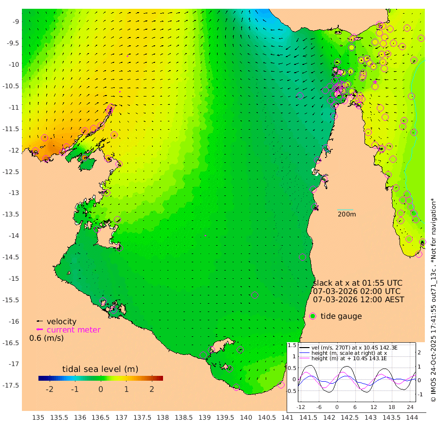 11cm/s 84T +3cm/s rms + 7cm/s -42T. ARA-GOC87 57m 11cm/s -148T +3cm/s rms + 2cm/s -2T. ARA-GOC87 60m 13cm/s 60T +2cm/s rms + 3cm/s 61T. ARA-GOC87 47m 77cm Daru 77cm Bobo Island 37cm Meer Island Barge 58cm Bramble Cay 69cm Unnamed Cay 72cm Pearce Cay 62cm Stephens Island 65cm Merrie England Shoals 78cm Mutacomal Reef 54cm Darnley Island Barge 44cm East Cay 62cm Yorke Island Barge 70cm Rennel Island 68cm Aureed Island 66cm Dungeness Reef 71cm Zagai Island 68cm Yam Island 70cm Dauan Island 62cm Saibai Island 60cm Phipi Reef 82cm Warrior Reef - West 36cm Mabuiag Island Barge 58cm Half Way Island 70cm Coconut Island 64cm Dugong Islet 67cm Poll Island 54cm Kirkcaldie Reef 61cm Suarji Island 58cm Sue Islet 0cm Hawkesbury Island 43cm Alert Patches 50cm Twin Island 11cm Badu Island 51cm St Pauls (Moa Island) 21cm Kubin (Moa Island) 34cm Ince Point 19cm Thursday Island 25cm Nardana Patches 15cm Turtle Head 8cm Round Island -6cm Goods Island -36cm Booby Island -20cm White Rocks Area -66cm Carpentaria 42cm Papou Point -25cm Bampfield Head -44cm Crab Island -26cm Red Wallis Island 9cm Packe Island 67cm Harrington Reef -12cm Herald Camp 10cm Sharp Point 1cm Red Island Point 23cm Possession Island 56cm Alpha Rock 61cm Frederick Point 82cm Wyborn Reef Light 81cm Tetley Island 44cm Triangle Reef 63cm Turtle Head Island 36cm Maclennan Cay 25cm Raine Island 63cm Mcsweeny Reef 56cm Collette Reef 37cm Shadwell Reef 60cm Hannibal Island 61cm Round Point -67cm Vrilya Point 44cm Cape Grenville 44cm Hicks Island 50cm Sir Charles Hardy Island 13cm Harvey Island 38cm Kay Reef 34cm Rocky Island 33cm Chapman Island 27cm Ham Reef 30cm Jubilee Reef 28cm Night Island 28cm Unnamed Reef No. 3 33cm Morris Island 22cm 1st 3 Mile Opening 26cm Creech Reef 41cm Fife Island 34cm Eden Reef 27cm Stanley Island 38cm Normanby River 136cm Yabooma Island 171cm Hutchison River 138cm Elcho Island 131cm North West Crocodile Island 110cm Cape Wessel 138cm Stevens Island 120cm Guluwuru Island 119cm Hopeful Bay 107cm Auster Point 110cm Two Island Bay 155cm Cadell Strait 152cm Mallison Island 110cm Melville Bay (Gove Harbour) 115cm Truant Island 75cm Cape Arnhem 43cm Cape Grey 37cm Hawk Island -3cm Milner Bay (Groote Eylandt) -4cm Cape Beatrice -45cm West Island -56cm Centre Island -14cm Mornington Island -14cm West Wellesley Islands 5cm Bountiful Island 15cm Albert River Mouth 1cm Sweers Island 4cm Karumba -9cm Nassau River Offshore -11cm Christmas Creek -26cm Archer River -24cm Boyd Point -21cm Weipa (Humbug Point) -55cm Pennefather River -46cm Cullen Point