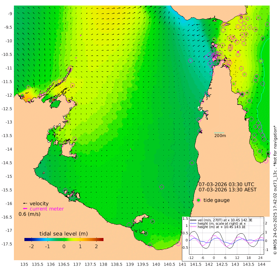 13cm/s 52T +3cm/s rms + 7cm/s -42T. ARA-GOC87 57m 10cm/s -170T +3cm/s rms + 2cm/s -2T. ARA-GOC87 60m 15cm/s 31T +2cm/s rms + 3cm/s 61T. ARA-GOC87 47m 61cm Daru 63cm Bobo Island 15cm Meer Island Barge 28cm Bramble Cay 41cm Unnamed Cay 48cm Pearce Cay 38cm Stephens Island 34cm Merrie England Shoals 55cm Mutacomal Reef 37cm Darnley Island Barge 17cm East Cay 49cm Yorke Island Barge 47cm Rennel Island 57cm Aureed Island 51cm Dungeness Reef 75cm Zagai Island 66cm Yam Island 73cm Dauan Island 74cm Saibai Island 55cm Phipi Reef 85cm Warrior Reef - West 27cm Mabuiag Island Barge 40cm Half Way Island 55cm Coconut Island 48cm Dugong Islet 57cm Poll Island 44cm Kirkcaldie Reef 52cm Suarji Island 56cm Sue Islet -50cm Hawkesbury Island 26cm Alert Patches 39cm Twin Island -35cm Badu Island 45cm St Pauls (Moa Island) -14cm Kubin (Moa Island) 16cm Ince Point -3cm Thursday Island 4cm Nardana Patches -21cm Turtle Head -31cm Round Island -58cm Goods Island -87cm Booby Island -77cm White Rocks Area -80cm Carpentaria 35cm Papou Point -77cm Bampfield Head -80cm Crab Island -70cm Red Wallis Island -31cm Packe Island 51cm Harrington Reef -51cm Herald Camp 18cm Sharp Point -28cm Red Island Point 3cm Possession Island 48cm Alpha Rock 48cm Frederick Point 60cm Wyborn Reef Light 63cm Tetley Island 25cm Triangle Reef 38cm Turtle Head Island 14cm Maclennan Cay -2cm Raine Island 40cm Mcsweeny Reef 33cm Collette Reef 14cm Shadwell Reef 34cm Hannibal Island 27cm Round Point -91cm Vrilya Point 17cm Cape Grenville 17cm Hicks Island 25cm Sir Charles Hardy Island 6cm Harvey Island 7cm Kay Reef 6cm Rocky Island 3cm Chapman Island 4cm Ham Reef 4cm Jubilee Reef 6cm Night Island 2cm Unnamed Reef No. 3 4cm Morris Island -7cm 1st 3 Mile Opening 1cm Creech Reef 15cm Fife Island 1cm Eden Reef -2cm Stanley Island 5cm Normanby River 19cm Yabooma Island 43cm Hutchison River 29cm Elcho Island 25cm North West Crocodile Island 62cm Cape Wessel 45cm Stevens Island 90cm Guluwuru Island 35cm Hopeful Bay 40cm Auster Point 50cm Two Island Bay 73cm Cadell Strait 183cm Mallison Island 73cm Melville Bay (Gove Harbour) 79cm Truant Island 59cm Cape Arnhem 31cm Cape Grey 31cm Hawk Island 1cm Milner Bay (Groote Eylandt) 2cm Cape Beatrice -21cm West Island -28cm Centre Island 2cm Mornington Island -1cm West Wellesley Islands -2cm Bountiful Island 6cm Albert River Mouth -5cm Sweers Island -2cm Karumba -8cm Nassau River Offshore -15cm Christmas Creek -43cm Archer River -38cm Boyd Point -48cm Weipa (Humbug Point) -69cm Pennefather River -65cm Cullen Point