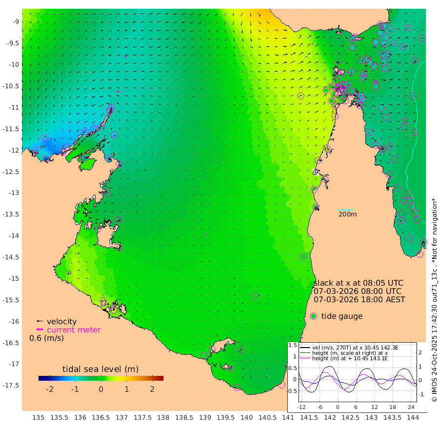 23cm/s -73T +3cm/s rms + 7cm/s -42T. ARA-GOC87 57m 8cm/s 14T +3cm/s rms + 2cm/s -2T. ARA-GOC87 60m 21cm/s -85T +2cm/s rms + 3cm/s 61T. ARA-GOC87 47m -81cm Daru -84cm Bobo Island -48cm Meer Island Barge -66cm Bramble Cay -75cm Unnamed Cay -83cm Pearce Cay -69cm Stephens Island -71cm Merrie England Shoals -79cm Mutacomal Reef -63cm Darnley Island Barge -53cm East Cay -69cm Yorke Island Barge -73cm Rennel Island -77cm Aureed Island -74cm Dungeness Reef -74cm Zagai Island -62cm Yam Island -67cm Dauan Island -61cm Saibai Island -73cm Phipi Reef -80cm Warrior Reef - West -43cm Mabuiag Island Barge -62cm Half Way Island -80cm Coconut Island -65cm Dugong Islet -70cm Poll Island -59cm Kirkcaldie Reef -74cm Suarji Island -63cm Sue Islet -4cm Hawkesbury Island -56cm Alert Patches -57cm Twin Island -34cm Badu Island -57cm St Pauls (Moa Island) -23cm Kubin (Moa Island) -42cm Ince Point -31cm Thursday Island -35cm Nardana Patches -29cm Turtle Head -12cm Round Island -12cm Goods Island 14cm Booby Island 0cm White Rocks Area 44cm Carpentaria -47cm Papou Point 5cm Bampfield Head 24cm Crab Island 13cm Red Wallis Island -13cm Packe Island -73cm Harrington Reef 18cm Herald Camp -9cm Sharp Point -16cm Red Island Point -33cm Possession Island -53cm Alpha Rock -66cm Frederick Point -84cm Wyborn Reef Light -81cm Tetley Island -51cm Triangle Reef -75cm Turtle Head Island -45cm Maclennan Cay -39cm Raine Island -71cm Mcsweeny Reef -65cm Collette Reef -48cm Shadwell Reef -71cm Hannibal Island -68cm Round Point 44cm Vrilya Point -52cm Cape Grenville -52cm Hicks Island -56cm Sir Charles Hardy Island -14cm Harvey Island -49cm Kay Reef -45cm Rocky Island -46cm Chapman Island -37cm Ham Reef -42cm Jubilee Reef -37cm Night Island -39cm Unnamed Reef No. 3 -46cm Morris Island -40cm 1st 3 Mile Opening -40cm Creech Reef -48cm Fife Island -49cm Eden Reef -39cm Stanley Island -45cm Normanby River -113cm Yabooma Island -153cm Hutchison River -118cm Elcho Island -107cm North West Crocodile Island -95cm Cape Wessel -119cm Stevens Island -116cm Guluwuru Island -101cm Hopeful Bay -97cm Auster Point -84cm Two Island Bay -137cm Cadell Strait -140cm Mallison Island -108cm Melville Bay (Gove Harbour) -111cm Truant Island -76cm Cape Arnhem -53cm Cape Grey -36cm Hawk Island -3cm Milner Bay (Groote Eylandt) 3cm Cape Beatrice 41cm West Island 49cm Centre Island 13cm Mornington Island 13cm West Wellesley Islands -16cm Bountiful Island -11cm Albert River Mouth -12cm Sweers Island 1cm Karumba 4cm Nassau River Offshore 3cm Christmas Creek 7cm Archer River 11cm Boyd Point 5cm Weipa (Humbug Point) 30cm Pennefather River 36cm Cullen Point