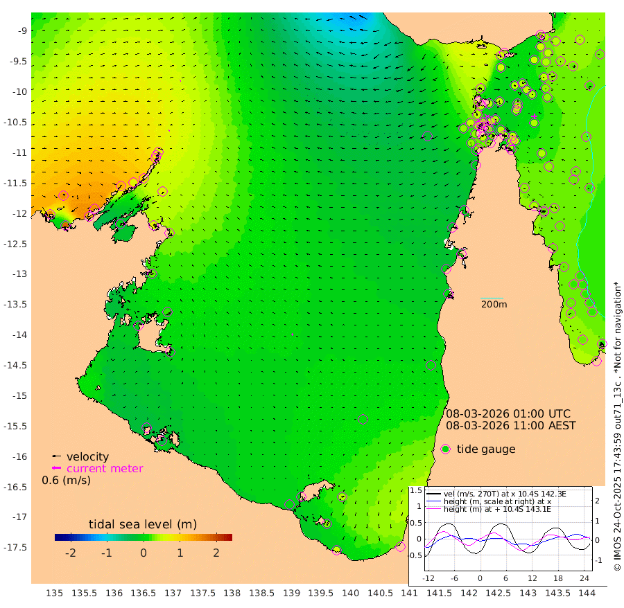 5cm/s -118T +3cm/s rms + 7cm/s -42T. ARA-GOC87 57m 11cm/s -123T +3cm/s rms + 2cm/s -2T. ARA-GOC87 60m 2cm/s -117T +2cm/s rms + 3cm/s 61T. ARA-GOC87 47m 48cm Daru 40cm Bobo Island 22cm Meer Island Barge 39cm Bramble Cay 47cm Unnamed Cay 43cm Pearce Cay 37cm Stephens Island 45cm Merrie England Shoals 53cm Mutacomal Reef 27cm Darnley Island Barge 27cm East Cay 32cm Yorke Island Barge 47cm Rennel Island 34cm Aureed Island 47cm Dungeness Reef 42cm Zagai Island 48cm Yam Island 59cm Dauan Island 42cm Saibai Island 58cm Phipi Reef 53cm Warrior Reef - West 44cm Mabuiag Island Barge 37cm Half Way Island 43cm Coconut Island 43cm Dugong Islet 46cm Poll Island 40cm Kirkcaldie Reef 51cm Suarji Island 35cm Sue Islet 52cm Hawkesbury Island 46cm Alert Patches 43cm Twin Island 58cm Badu Island 45cm St Pauls (Moa Island) 52cm Kubin (Moa Island) 44cm Ince Point 41cm Thursday Island 44cm Nardana Patches 51cm Turtle Head 46cm Round Island 51cm Goods Island 33cm Booby Island 47cm White Rocks Area -19cm Carpentaria 37cm Papou Point 34cm Bampfield Head 14cm Crab Island 32cm Red Wallis Island 47cm Packe Island 42cm Harrington Reef 37cm Herald Camp 5cm Sharp Point 33cm Red Island Point 35cm Possession Island 42cm Alpha Rock 44cm Frederick Point 53cm Wyborn Reef Light 52cm Tetley Island 26cm Triangle Reef 44cm Turtle Head Island 24cm Maclennan Cay 21cm Raine Island 39cm Mcsweeny Reef 34cm Collette Reef 25cm Shadwell Reef 37cm Hannibal Island 41cm Round Point -12cm Vrilya Point 29cm Cape Grenville 30cm Hicks Island 33cm Sir Charles Hardy Island 8cm Harvey Island 27cm Kay Reef 25cm Rocky Island 23cm Chapman Island 17cm Ham Reef 21cm Jubilee Reef 18cm Night Island 18cm Unnamed Reef No. 3 25cm Morris Island 22cm 1st 3 Mile Opening 19cm Creech Reef 24cm Fife Island 24cm Eden Reef 21cm Stanley Island 26cm Normanby River 150cm Yabooma Island 176cm Hutchison River 146cm Elcho Island 143cm North West Crocodile Island 73cm Cape Wessel 125cm Stevens Island 65cm Guluwuru Island 109cm Hopeful Bay 88cm Auster Point 84cm Two Island Bay 121cm Cadell Strait 0cm Mallison Island 69cm Melville Bay (Gove Harbour) 67cm Truant Island 38cm Cape Arnhem 28cm Cape Grey 21cm Hawk Island -1cm Milner Bay (Groote Eylandt) 3cm Cape Beatrice -26cm West Island -37cm Centre Island 1cm Mornington Island 4cm West Wellesley Islands 39cm Bountiful Island 53cm Albert River Mouth 34cm Sweers Island 41cm Karumba 13cm Nassau River Offshore 11cm Christmas Creek 7cm Archer River 5cm Boyd Point 19cm Weipa (Humbug Point) -16cm Pennefather River -3cm Cullen Point