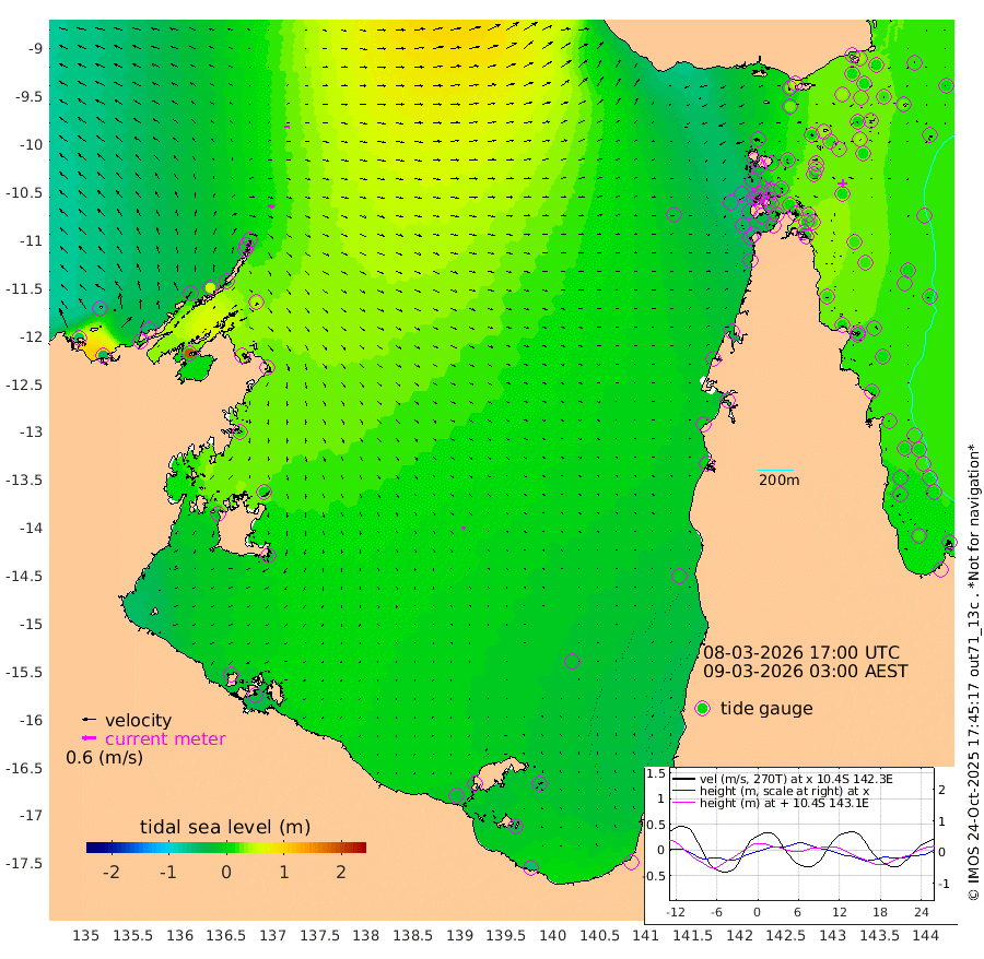26cm/s 100T +3cm/s rms + 7cm/s -42T. ARA-GOC87 57m 13cm/s 139T +3cm/s rms + 2cm/s -2T. ARA-GOC87 60m 21cm/s 89T +2cm/s rms + 3cm/s 61T. ARA-GOC87 47m 22cm Daru 31cm Bobo Island 18cm Meer Island Barge 15cm Bramble Cay 14cm Unnamed Cay 23cm Pearce Cay 16cm Stephens Island 11cm Merrie England Shoals 13cm Mutacomal Reef 26cm Darnley Island Barge 15cm East Cay 28cm Yorke Island Barge 10cm Rennel Island 30cm Aureed Island 16cm Dungeness Reef 36cm Zagai Island 15cm Yam Island 29cm Dauan Island 44cm Saibai Island 27cm Phipi Reef 34cm Warrior Reef - West 10cm Mabuiag Island Barge 9cm Half Way Island 26cm Coconut Island 8cm Dugong Islet 15cm Poll Island 9cm Kirkcaldie Reef 15cm Suarji Island 26cm Sue Islet -41cm Hawkesbury Island 6cm Alert Patches 8cm Twin Island -18cm Badu Island 10cm St Pauls (Moa Island) -27cm Kubin (Moa Island) -4cm Ince Point -11cm Thursday Island -9cm Nardana Patches -22cm Turtle Head -31cm Round Island -38cm Goods Island -44cm Booby Island -52cm White Rocks Area -18cm Carpentaria 6cm Papou Point -36cm Bampfield Head -35cm Crab Island -44cm Red Wallis Island -33cm Packe Island 13cm Harrington Reef -46cm Herald Camp 6cm Sharp Point -17cm Red Island Point -5cm Possession Island 9cm Alpha Rock 14cm Frederick Point 20cm Wyborn Reef Light 20cm Tetley Island 21cm Triangle Reef 13cm Turtle Head Island 11cm Maclennan Cay 11cm Raine Island 19cm Mcsweeny Reef 21cm Collette Reef 18cm Shadwell Reef 21cm Hannibal Island 13cm Round Point -28cm Vrilya Point 10cm Cape Grenville 11cm Hicks Island 17cm Sir Charles Hardy Island 3cm Harvey Island 12cm Kay Reef 13cm Rocky Island 18cm Chapman Island 16cm Ham Reef 15cm Jubilee Reef 11cm Night Island 16cm Unnamed Reef No. 3 11cm Morris Island 9cm 1st 3 Mile Opening 13cm Creech Reef 14cm Fife Island 15cm Eden Reef 8cm Stanley Island 6cm Normanby River -65cm Yabooma Island -51cm Hutchison River -52cm Elcho Island -60cm North West Crocodile Island 13cm Cape Wessel -25cm Stevens Island 54cm Guluwuru Island -23cm Hopeful Bay -6cm Auster Point -12cm Two Island Bay 4cm Cadell Strait 193cm Mallison Island 37cm Melville Bay (Gove Harbour) 43cm Truant Island 38cm Cape Arnhem 21cm Cape Grey 11cm Hawk Island -8cm Milner Bay (Groote Eylandt) -18cm Cape Beatrice -30cm West Island -26cm Centre Island -21cm Mornington Island -28cm West Wellesley Islands -35cm Bountiful Island -59cm Albert River Mouth -44cm Sweers Island -57cm Karumba -19cm Nassau River Offshore -9cm Christmas Creek -7cm Archer River -6cm Boyd Point -17cm Weipa (Humbug Point) -10cm Pennefather River -24cm Cullen Point