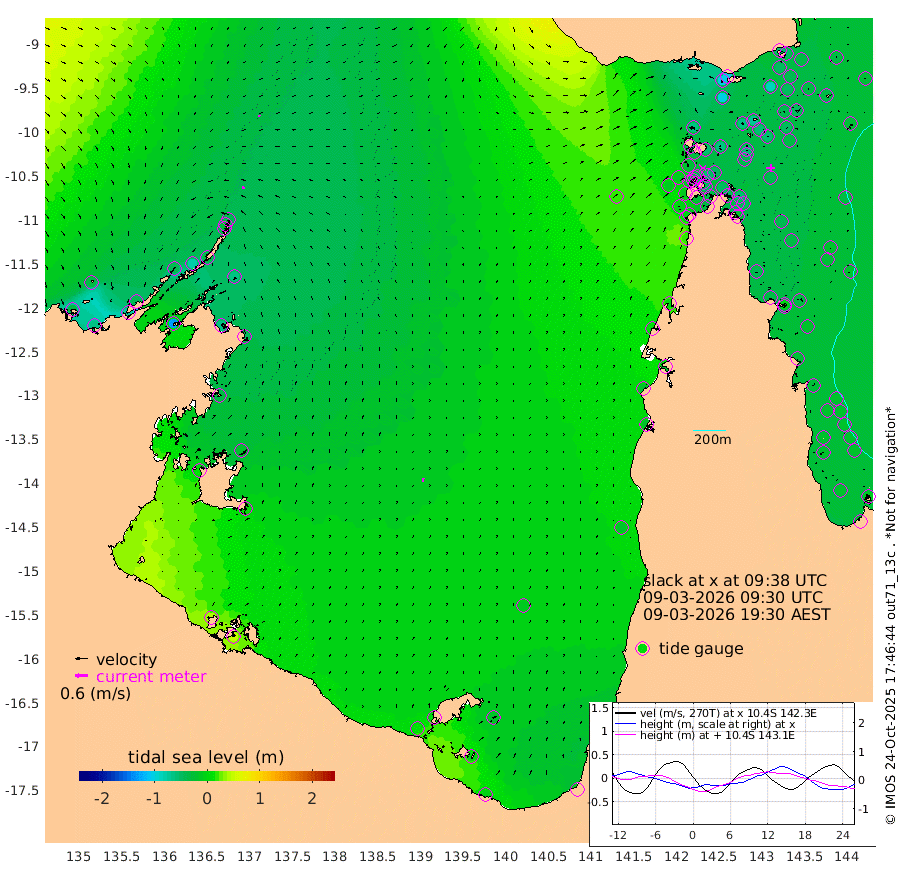 13cm/s -62T +3cm/s rms + 7cm/s -42T. ARA-GOC87 57m 20cm/s 4T +3cm/s rms + 2cm/s -2T. ARA-GOC87 60m 8cm/s -79T +2cm/s rms + 3cm/s 61T. ARA-GOC87 47m -55cm Daru -51cm Bobo Island -25cm Meer Island Barge -33cm Bramble Cay -41cm Unnamed Cay -45cm Pearce Cay -34cm Stephens Island -33cm Merrie England Shoals -46cm Mutacomal Reef -37cm Darnley Island Barge -24cm East Cay -45cm Yorke Island Barge -40cm Rennel Island -47cm Aureed Island -53cm Dungeness Reef -75cm Zagai Island -62cm Yam Island -102cm Dauan Island -99cm Saibai Island -100cm Phipi Reef -87cm Warrior Reef - West -66cm Mabuiag Island Barge -31cm Half Way Island -53cm Coconut Island -38cm Dugong Islet -53cm Poll Island -45cm Kirkcaldie Reef -65cm Suarji Island -58cm Sue Islet -29cm Hawkesbury Island -55cm Alert Patches -51cm Twin Island -57cm Badu Island -59cm St Pauls (Moa Island) -37cm Kubin (Moa Island) -48cm Ince Point -40cm Thursday Island -44cm Nardana Patches -42cm Turtle Head -28cm Round Island -30cm Goods Island -11cm Booby Island -10cm White Rocks Area 16cm Carpentaria -46cm Papou Point -12cm Bampfield Head 0cm Crab Island -6cm Red Wallis Island -25cm Packe Island -38cm Harrington Reef -11cm Herald Camp -15cm Sharp Point -31cm Red Island Point -36cm Possession Island -45cm Alpha Rock -49cm Frederick Point -52cm Wyborn Reef Light -53cm Tetley Island -32cm Triangle Reef -40cm Turtle Head Island -22cm Maclennan Cay -20cm Raine Island -39cm Mcsweeny Reef -37cm Collette Reef -29cm Shadwell Reef -38cm Hannibal Island -30cm Round Point 16cm Vrilya Point -21cm Cape Grenville -24cm Hicks Island -34cm Sir Charles Hardy Island -6cm Harvey Island -20cm Kay Reef -23cm Rocky Island -25cm Chapman Island -20cm Ham Reef -22cm Jubilee Reef -16cm Night Island -19cm Unnamed Reef No. 3 -21cm Morris Island -21cm 1st 3 Mile Opening -19cm Creech Reef -19cm Fife Island -21cm Eden Reef -14cm Stanley Island -12cm Normanby River -34cm Yabooma Island -65cm Hutchison River -42cm Elcho Island -35cm North West Crocodile Island -39cm Cape Wessel -44cm Stevens Island -78cm Guluwuru Island -37cm Hopeful Bay -36cm Auster Point -28cm Two Island Bay -71cm Cadell Strait -131cm Mallison Island -66cm Melville Bay (Gove Harbour) -67cm Truant Island -49cm Cape Arnhem -33cm Cape Grey -20cm Hawk Island 14cm Milner Bay (Groote Eylandt) 15cm Cape Beatrice 43cm West Island 50cm Centre Island 6cm Mornington Island 9cm West Wellesley Islands -20cm Bountiful Island -6cm Albert River Mouth -1cm Sweers Island -2cm Karumba -11cm Nassau River Offshore -20cm Christmas Creek -17cm Archer River -15cm Boyd Point -20cm Weipa (Humbug Point) 6cm Pennefather River 7cm Cullen Point