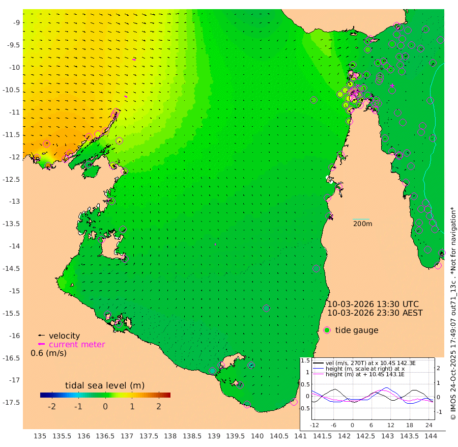 26cm/s 118T +3cm/s rms + 7cm/s -42T. ARA-GOC87 57m 17cm/s 4T +3cm/s rms + 2cm/s -2T. ARA-GOC87 60m 29cm/s 110T +2cm/s rms + 3cm/s 61T. ARA-GOC87 47m -5cm Daru -9cm Bobo Island -22cm Meer Island Barge -20cm Bramble Cay -14cm Unnamed Cay -10cm Pearce Cay -15cm Stephens Island -17cm Merrie England Shoals -11cm Mutacomal Reef -23cm Darnley Island Barge -24cm East Cay -17cm Yorke Island Barge -9cm Rennel Island -17cm Aureed Island -1cm Dungeness Reef 5cm Zagai Island 9cm Yam Island 13cm Dauan Island -4cm Saibai Island 17cm Phipi Reef 0cm Warrior Reef - West 21cm Mabuiag Island Barge -7cm Half Way Island 0cm Coconut Island -9cm Dugong Islet 6cm Poll Island 4cm Kirkcaldie Reef 9cm Suarji Island -5cm Sue Islet 50cm Hawkesbury Island 15cm Alert Patches 16cm Twin Island 49cm Badu Island 22cm St Pauls (Moa Island) 45cm Kubin (Moa Island) 24cm Ince Point 29cm Thursday Island 28cm Nardana Patches 32cm Turtle Head 52cm Round Island 42cm Goods Island 44cm Booby Island 44cm White Rocks Area 16cm Carpentaria 23cm Papou Point 57cm Bampfield Head 43cm Crab Island 38cm Red Wallis Island 38cm Packe Island -3cm Harrington Reef 45cm Herald Camp 0cm Sharp Point 28cm Red Island Point 34cm Possession Island 5cm Alpha Rock 8cm Frederick Point 1cm Wyborn Reef Light 4cm Tetley Island -19cm Triangle Reef 17cm Turtle Head Island -22cm Maclennan Cay -19cm Raine Island -15cm Mcsweeny Reef -20cm Collette Reef -23cm Shadwell Reef -22cm Hannibal Island -17cm Round Point 33cm Vrilya Point -25cm Cape Grenville -18cm Hicks Island -34cm Sir Charles Hardy Island -6cm Harvey Island -31cm Kay Reef -26cm Rocky Island -31cm Chapman Island -31cm Ham Reef -26cm Jubilee Reef -21cm Night Island -32cm Unnamed Reef No. 3 -25cm Morris Island -19cm 1st 3 Mile Opening -27cm Creech Reef -26cm Fife Island -33cm Eden Reef -29cm Stanley Island -30cm Normanby River 151cm Yabooma Island 164cm Hutchison River 143cm Elcho Island 139cm North West Crocodile Island 79cm Cape Wessel 131cm Stevens Island 53cm Guluwuru Island 112cm Hopeful Bay 103cm Auster Point 109cm Two Island Bay 131cm Cadell Strait -37cm Mallison Island 60cm Melville Bay (Gove Harbour) 66cm Truant Island 35cm Cape Arnhem 17cm Cape Grey 10cm Hawk Island -1cm Milner Bay (Groote Eylandt) -16cm Cape Beatrice -45cm West Island -42cm Centre Island -61cm Mornington Island -70cm West Wellesley Islands -69cm Bountiful Island -51cm Albert River Mouth -46cm Sweers Island -48cm Karumba -57cm Nassau River Offshore -48cm Christmas Creek -20cm Archer River -11cm Boyd Point -7cm Weipa (Humbug Point) 16cm Pennefather River 19cm Cullen Point