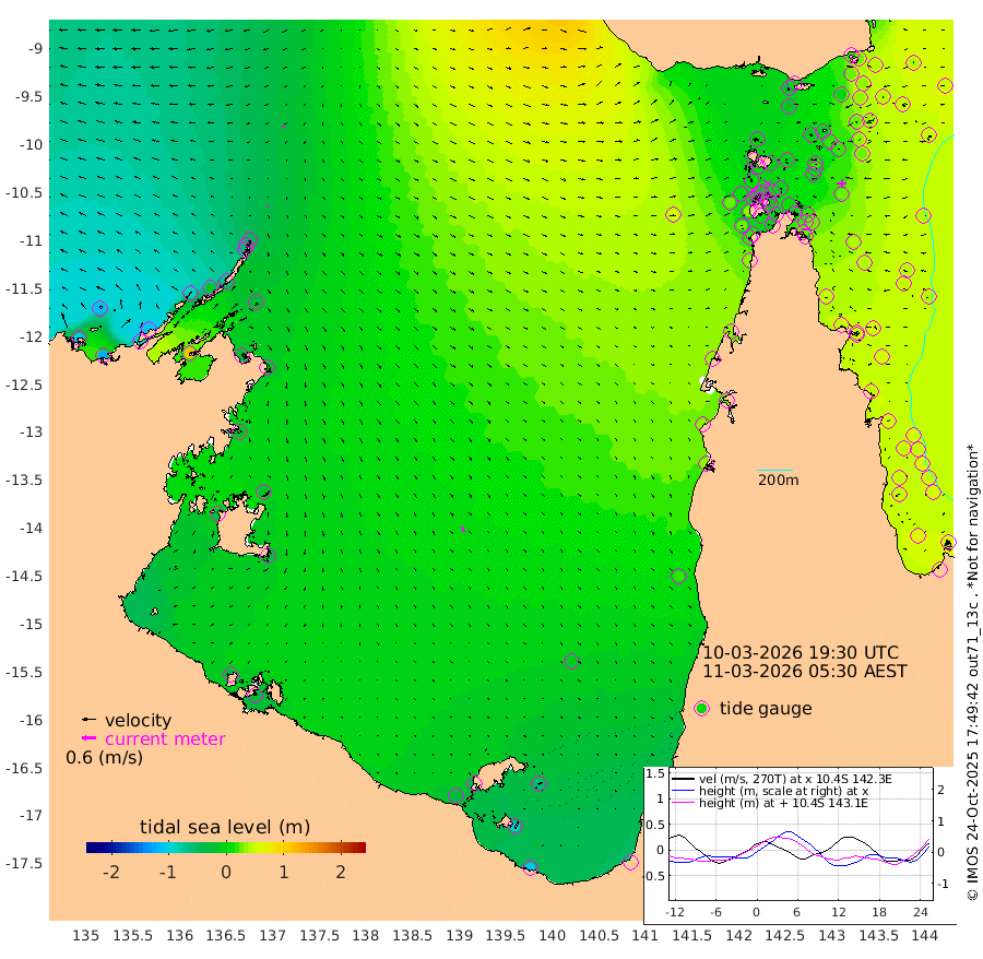 5cm/s 150T +3cm/s rms + 7cm/s -42T. ARA-GOC87 57m 23cm/s 154T +3cm/s rms + 2cm/s -2T. ARA-GOC87 60m 6cm/s -132T +2cm/s rms + 3cm/s 61T. ARA-GOC87 47m 21cm Daru 28cm Bobo Island 48cm Meer Island Barge 44cm Bramble Cay 36cm Unnamed Cay 34cm Pearce Cay 38cm Stephens Island 42cm Merrie England Shoals 28cm Mutacomal Reef 47cm Darnley Island Barge 49cm East Cay 37cm Yorke Island Barge 26cm Rennel Island 34cm Aureed Island 15cm Dungeness Reef 0cm Zagai Island -6cm Yam Island -17cm Dauan Island 1cm Saibai Island -17cm Phipi Reef -3cm Warrior Reef - West -5cm Mabuiag Island Barge 26cm Half Way Island 21cm Coconut Island 23cm Dugong Islet 7cm Poll Island 9cm Kirkcaldie Reef -1cm Suarji Island 17cm Sue Islet 14cm Hawkesbury Island 9cm Alert Patches 6cm Twin Island 2cm Badu Island -5cm St Pauls (Moa Island) 1cm Kubin (Moa Island) 2cm Ince Point 5cm Thursday Island 3cm Nardana Patches 7cm Turtle Head 6cm Round Island 15cm Goods Island 25cm Booby Island 15cm White Rocks Area 54cm Carpentaria -5cm Papou Point 35cm Bampfield Head 16cm Crab Island 23cm Red Wallis Island 14cm Packe Island 22cm Harrington Reef 19cm Herald Camp -3cm Sharp Point 7cm Red Island Point 6cm Possession Island 11cm Alpha Rock 13cm Frederick Point 25cm Wyborn Reef Light 21cm Tetley Island 43cm Triangle Reef 23cm Turtle Head Island 44cm Maclennan Cay 45cm Raine Island 38cm Mcsweeny Reef 44cm Collette Reef 48cm Shadwell Reef 48cm Hannibal Island 47cm Round Point 32cm Vrilya Point 51cm Cape Grenville 43cm Hicks Island 55cm Sir Charles Hardy Island 14cm Harvey Island 59cm Kay Reef 51cm Rocky Island 59cm Chapman Island 56cm Ham Reef 51cm Jubilee Reef 45cm Night Island 57cm Unnamed Reef No. 3 51cm Morris Island 47cm 1st 3 Mile Opening 53cm Creech Reef 49cm Fife Island 62cm Eden Reef 57cm Stanley Island 55cm Normanby River -112cm Yabooma Island -125cm Hutchison River -112cm Elcho Island -117cm North West Crocodile Island -39cm Cape Wessel -87cm Stevens Island -19cm Guluwuru Island -70cm Hopeful Bay -58cm Auster Point -64cm Two Island Bay -85cm Cadell Strait 116cm Mallison Island -28cm Melville Bay (Gove Harbour) -24cm Truant Island -13cm Cape Arnhem -21cm Cape Grey -21cm Hawk Island -35cm Milner Bay (Groote Eylandt) -35cm Cape Beatrice -30cm West Island -26cm Centre Island -37cm Mornington Island -33cm West Wellesley Islands -54cm Bountiful Island -108cm Albert River Mouth -97cm Sweers Island -97cm Karumba -12cm Nassau River Offshore 15cm Christmas Creek 33cm Archer River 37cm Boyd Point 31cm Weipa (Humbug Point) 32cm Pennefather River 33cm Cullen Point
