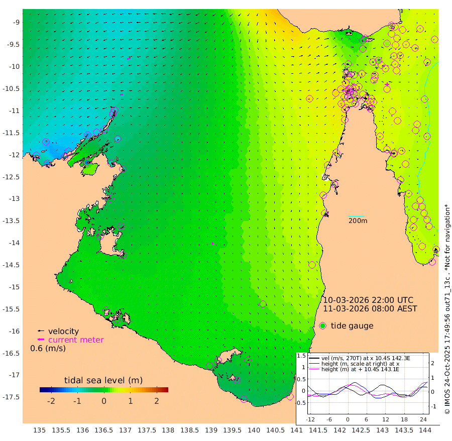 28cm/s -95T +3cm/s rms + 7cm/s -42T. ARA-GOC87 57m 22cm/s 169T +3cm/s rms + 2cm/s -2T. ARA-GOC87 60m 34cm/s -103T +2cm/s rms + 3cm/s 61T. ARA-GOC87 47m 55cm Daru 56cm Bobo Island 52cm Meer Island Barge 58cm Bramble Cay 63cm Unnamed Cay 70cm Pearce Cay 66cm Stephens Island 67cm Merrie England Shoals 63cm Mutacomal Reef 60cm Darnley Island Barge 60cm East Cay 59cm Yorke Island Barge 67cm Rennel Island 65cm Aureed Island 64cm Dungeness Reef 29cm Zagai Island 40cm Yam Island 13cm Dauan Island 12cm Saibai Island 26cm Phipi Reef 33cm Warrior Reef - West 36cm Mabuiag Island Barge 68cm Half Way Island 60cm Coconut Island 73cm Dugong Islet 56cm Poll Island 64cm Kirkcaldie Reef 65cm Suarji Island 52cm Sue Islet 85cm Hawkesbury Island 72cm Alert Patches 66cm Twin Island 62cm Badu Island 57cm St Pauls (Moa Island) 68cm Kubin (Moa Island) 65cm Ince Point 71cm Thursday Island 67cm Nardana Patches 77cm Turtle Head 68cm Round Island 86cm Goods Island 95cm Booby Island 96cm White Rocks Area 89cm Carpentaria 49cm Papou Point 94cm Bampfield Head 70cm Crab Island 92cm Red Wallis Island 83cm Packe Island 79cm Harrington Reef 87cm Herald Camp 11cm Sharp Point 72cm Red Island Point 66cm Possession Island 54cm Alpha Rock 68cm Frederick Point 58cm Wyborn Reef Light 55cm Tetley Island 50cm Triangle Reef 71cm Turtle Head Island 60cm Maclennan Cay 47cm Raine Island 64cm Mcsweeny Reef 60cm Collette Reef 50cm Shadwell Reef 64cm Hannibal Island 65cm Round Point 75cm Vrilya Point 66cm Cape Grenville 58cm Hicks Island 63cm Sir Charles Hardy Island 20cm Harvey Island 64cm Kay Reef 55cm Rocky Island 55cm Chapman Island 53cm Ham Reef 51cm Jubilee Reef 51cm Night Island 57cm Unnamed Reef No. 3 57cm Morris Island 54cm 1st 3 Mile Opening 58cm Creech Reef 55cm Fife Island 60cm Eden Reef 61cm Stanley Island 65cm Normanby River -108cm Yabooma Island -131cm Hutchison River -119cm Elcho Island -113cm North West Crocodile Island -87cm Cape Wessel -121cm Stevens Island -99cm Guluwuru Island -103cm Hopeful Bay -91cm Auster Point -100cm Two Island Bay -134cm Cadell Strait -149cm Mallison Island -88cm Melville Bay (Gove Harbour) -91cm Truant Island -63cm Cape Arnhem -44cm Cape Grey -39cm Hawk Island -35cm Milner Bay (Groote Eylandt) -21cm Cape Beatrice 6cm West Island 5cm Centre Island 0cm Mornington Island 8cm West Wellesley Islands 1cm Bountiful Island -56cm Albert River Mouth -53cm Sweers Island -37cm Karumba 30cm Nassau River Offshore 50cm Christmas Creek 59cm Archer River 63cm Boyd Point 65cm Weipa (Humbug Point) 56cm Pennefather River 69cm Cullen Point