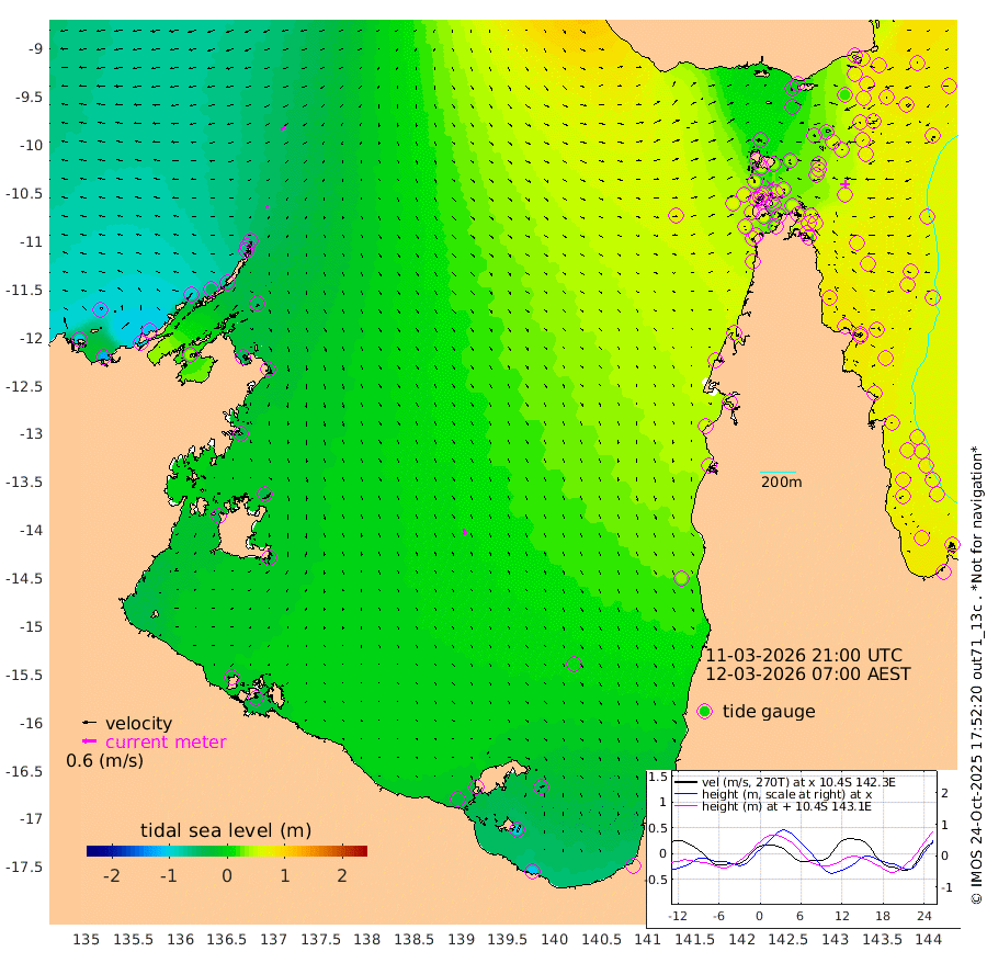 12cm/s -112T +3cm/s rms + 7cm/s -42T. ARA-GOC87 57m 27cm/s 162T +3cm/s rms + 2cm/s -2T. ARA-GOC87 60m 20cm/s -109T +2cm/s rms + 3cm/s 61T. ARA-GOC87 47m 58cm Daru 63cm Bobo Island 69cm Meer Island Barge 77cm Bramble Cay 76cm Unnamed Cay 74cm Pearce Cay 76cm Stephens Island 85cm Merrie England Shoals 73cm Mutacomal Reef 75cm Darnley Island Barge 77cm East Cay 68cm Yorke Island Barge 69cm Rennel Island 68cm Aureed Island 54cm Dungeness Reef 20cm Zagai Island 24cm Yam Island -6cm Dauan Island 4cm Saibai Island 1cm Phipi Reef 21cm Warrior Reef - West 15cm Mabuiag Island Barge 68cm Half Way Island 59cm Coconut Island 67cm Dugong Islet 44cm Poll Island 49cm Kirkcaldie Reef 37cm Suarji Island 46cm Sue Islet 59cm Hawkesbury Island 50cm Alert Patches 45cm Twin Island 35cm Badu Island 31cm St Pauls (Moa Island) 41cm Kubin (Moa Island) 40cm Ince Point 44cm Thursday Island 40cm Nardana Patches 48cm Turtle Head 45cm Round Island 57cm Goods Island 65cm Booby Island 62cm White Rocks Area 75cm Carpentaria 26cm Papou Point 75cm Bampfield Head 46cm Crab Island 65cm Red Wallis Island 60cm Packe Island 71cm Harrington Reef 62cm Herald Camp 4cm Sharp Point 43cm Red Island Point 43cm Possession Island 47cm Alpha Rock 55cm Frederick Point 67cm Wyborn Reef Light 62cm Tetley Island 65cm Triangle Reef 69cm Turtle Head Island 70cm Maclennan Cay 63cm Raine Island 75cm Mcsweeny Reef 76cm Collette Reef 69cm Shadwell Reef 83cm Hannibal Island 85cm Round Point 56cm Vrilya Point 84cm Cape Grenville 72cm Hicks Island 82cm Sir Charles Hardy Island 24cm Harvey Island 87cm Kay Reef 73cm Rocky Island 79cm Chapman Island 74cm Ham Reef 70cm Jubilee Reef 66cm Night Island 78cm Unnamed Reef No. 3 75cm Morris Island 67cm 1st 3 Mile Opening 74cm Creech Reef 74cm Fife Island 85cm Eden Reef 81cm Stanley Island 85cm Normanby River -103cm Yabooma Island -122cm Hutchison River -111cm Elcho Island -112cm North West Crocodile Island -53cm Cape Wessel -92cm Stevens Island -50cm Guluwuru Island -74cm Hopeful Bay -66cm Auster Point -74cm Two Island Bay -103cm Cadell Strait 36cm Mallison Island -49cm Melville Bay (Gove Harbour) -48cm Truant Island -33cm Cape Arnhem -35cm Cape Grey -31cm Hawk Island -44cm Milner Bay (Groote Eylandt) -37cm Cape Beatrice -27cm West Island -26cm Centre Island -32cm Mornington Island -25cm West Wellesley Islands -45cm Bountiful Island -108cm Albert River Mouth -102cm Sweers Island -91cm Karumba 3cm Nassau River Offshore 33cm Christmas Creek 50cm Archer River 55cm Boyd Point 52cm Weipa (Humbug Point) 48cm Pennefather River 56cm Cullen Point