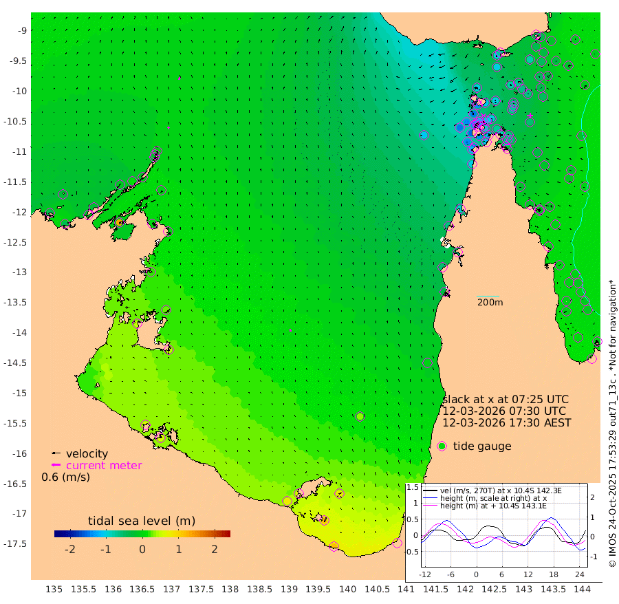 17cm/s 4T +3cm/s rms + 7cm/s -42T. ARA-GOC87 57m 15cm/s -21T +3cm/s rms + 2cm/s -2T. ARA-GOC87 60m 18cm/s 15T +2cm/s rms + 3cm/s 61T. ARA-GOC87 47m -49cm Daru -42cm Bobo Island -11cm Meer Island Barge -14cm Bramble Cay -31cm Unnamed Cay -46cm Pearce Cay -32cm Stephens Island -22cm Merrie England Shoals -40cm Mutacomal Reef -22cm Darnley Island Barge -11cm East Cay -35cm Yorke Island Barge -46cm Rennel Island -44cm Aureed Island -66cm Dungeness Reef -71cm Zagai Island -79cm Yam Island -98cm Dauan Island -74cm Saibai Island -98cm Phipi Reef -78cm Warrior Reef - West -98cm Mabuiag Island Barge -47cm Half Way Island -60cm Coconut Island -57cm Dugong Islet -75cm Poll Island -72cm Kirkcaldie Reef -99cm Suarji Island -63cm Sue Islet -145cm Hawkesbury Island -104cm Alert Patches -99cm Twin Island -137cm Badu Island -109cm St Pauls (Moa Island) -135cm Kubin (Moa Island) -111cm Ince Point -119cm Thursday Island -117cm Nardana Patches -127cm Turtle Head -135cm Round Island -139cm Goods Island -144cm Booby Island -139cm White Rocks Area -107cm Carpentaria -94cm Papou Point -156cm Bampfield Head -115cm Crab Island -135cm Red Wallis Island -135cm Packe Island -65cm Harrington Reef -146cm Herald Camp -22cm Sharp Point -106cm Red Island Point -114cm Possession Island -74cm Alpha Rock -84cm Frederick Point -54cm Wyborn Reef Light -61cm Tetley Island -22cm Triangle Reef -74cm Turtle Head Island -20cm Maclennan Cay -7cm Raine Island -34cm Mcsweeny Reef -22cm Collette Reef -10cm Shadwell Reef -19cm Hannibal Island -19cm Round Point -101cm Vrilya Point -13cm Cape Grenville -18cm Hicks Island -14cm Sir Charles Hardy Island -6cm Harvey Island -1cm Kay Reef -6cm Rocky Island -1cm Chapman Island 0cm Ham Reef -4cm Jubilee Reef -9cm Night Island -1cm Unnamed Reef No. 3 -6cm Morris Island -14cm 1st 3 Mile Opening -8cm Creech Reef -6cm Fife Island 2cm Eden Reef -1cm Stanley Island 0cm Normanby River -39cm Yabooma Island -43cm Hutchison River -28cm Elcho Island -27cm North West Crocodile Island -4cm Cape Wessel -13cm Stevens Island 13cm Guluwuru Island -8cm Hopeful Bay -17cm Auster Point -20cm Two Island Bay -18cm Cadell Strait 134cm Mallison Island 3cm Melville Bay (Gove Harbour) -2cm Truant Island 6cm Cape Arnhem 19cm Cape Grey 24cm Hawk Island 46cm Milner Bay (Groote Eylandt) 48cm Cape Beatrice 62cm West Island 62cm Centre Island 74cm Mornington Island 79cm West Wellesley Islands 80cm Bountiful Island 117cm Albert River Mouth 120cm Sweers Island 99cm Karumba 35cm Nassau River Offshore -1cm Christmas Creek -35cm Archer River -57cm Boyd Point -62cm Weipa (Humbug Point) -63cm Pennefather River -92cm Cullen Point