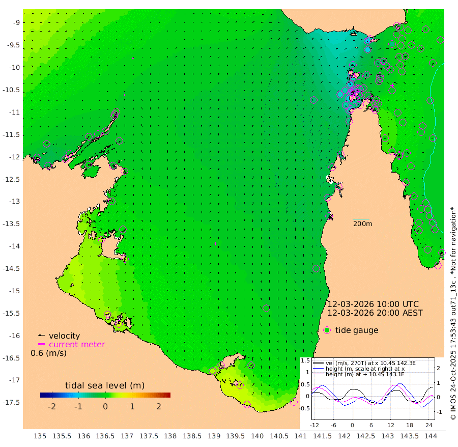 12cm/s 2T +3cm/s rms + 7cm/s -42T. ARA-GOC87 57m 26cm/s 1T +3cm/s rms + 2cm/s -2T. ARA-GOC87 60m 11cm/s 33T +2cm/s rms + 3cm/s 61T. ARA-GOC87 47m -14cm Daru -3cm Bobo Island -5cm Meer Island Barge 4cm Bramble Cay -2cm Unnamed Cay -3cm Pearce Cay 1cm Stephens Island 10cm Merrie England Shoals -1cm Mutacomal Reef -5cm Darnley Island Barge 3cm East Cay -10cm Yorke Island Barge -4cm Rennel Island -5cm Aureed Island -26cm Dungeness Reef -48cm Zagai Island -46cm Yam Island -109cm Dauan Island -91cm Saibai Island -103cm Phipi Reef -62cm Warrior Reef - West -79cm Mabuiag Island Barge -2cm Half Way Island -13cm Coconut Island -10cm Dugong Islet -28cm Poll Island -26cm Kirkcaldie Reef -46cm Suarji Island -34cm Sue Islet -104cm Hawkesbury Island -53cm Alert Patches -43cm Twin Island -106cm Badu Island -57cm St Pauls (Moa Island) -89cm Kubin (Moa Island) -63cm Ince Point -68cm Thursday Island -69cm Nardana Patches -84cm Turtle Head -90cm Round Island -96cm Goods Island -96cm Booby Island -78cm White Rocks Area -58cm Carpentaria -45cm Papou Point -100cm Bampfield Head -76cm Crab Island -81cm Red Wallis Island -82cm Packe Island -1cm Harrington Reef -105cm Herald Camp -12cm Sharp Point -65cm Red Island Point -61cm Possession Island -28cm Alpha Rock -27cm Frederick Point -8cm Wyborn Reef Light -13cm Tetley Island -11cm Triangle Reef -15cm Turtle Head Island -5cm Maclennan Cay -6cm Raine Island -2cm Mcsweeny Reef -1cm Collette Reef -8cm Shadwell Reef 3cm Hannibal Island 7cm Round Point -62cm Vrilya Point 7cm Cape Grenville -2cm Hicks Island -10cm Sir Charles Hardy Island 1cm Harvey Island 8cm Kay Reef -4cm Rocky Island -2cm Chapman Island -3cm Ham Reef -5cm Jubilee Reef -1cm Night Island 2cm Unnamed Reef No. 3 -1cm Morris Island -12cm 1st 3 Mile Opening -4cm Creech Reef 6cm Fife Island -1cm Eden Reef 3cm Stanley Island 12cm Normanby River -20cm Yabooma Island -33cm Hutchison River -18cm Elcho Island -15cm North West Crocodile Island 4cm Cape Wessel -4cm Stevens Island -21cm Guluwuru Island -6cm Hopeful Bay -6cm Auster Point -11cm Two Island Bay -30cm Cadell Strait -1cm Mallison Island -18cm Melville Bay (Gove Harbour) -17cm Truant Island -11cm Cape Arnhem 3cm Cape Grey 9cm Hawk Island 42cm Milner Bay (Groote Eylandt) 41cm Cape Beatrice 64cm West Island 66cm Centre Island 35cm Mornington Island 44cm West Wellesley Islands 22cm Bountiful Island 46cm Albert River Mouth 55cm Sweers Island 34cm Karumba 0cm Nassau River Offshore -29cm Christmas Creek -47cm Archer River -57cm Boyd Point -66cm Weipa (Humbug Point) -46cm Pennefather River -66cm Cullen Point