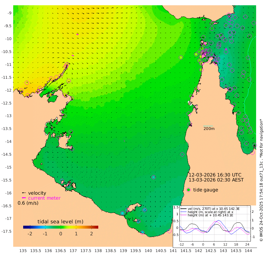 35cm/s 114T +3cm/s rms + 7cm/s -42T. ARA-GOC87 57m 7cm/s 69T +3cm/s rms + 2cm/s -2T. ARA-GOC87 60m 33cm/s 109T +2cm/s rms + 3cm/s 61T. ARA-GOC87 47m -45cm Daru -47cm Bobo Island -21cm Meer Island Barge -38cm Bramble Cay -45cm Unnamed Cay -50cm Pearce Cay -44cm Stephens Island -52cm Merrie England Shoals -55cm Mutacomal Reef -35cm Darnley Island Barge -34cm East Cay -39cm Yorke Island Barge -51cm Rennel Island -48cm Aureed Island -43cm Dungeness Reef -19cm Zagai Island -25cm Yam Island 10cm Dauan Island 5cm Saibai Island -8cm Phipi Reef -25cm Warrior Reef - West 5cm Mabuiag Island Barge -46cm Half Way Island -44cm Coconut Island -50cm Dugong Islet -38cm Poll Island -42cm Kirkcaldie Reef -39cm Suarji Island -32cm Sue Islet 23cm Hawkesbury Island -29cm Alert Patches -30cm Twin Island 28cm Badu Island -20cm St Pauls (Moa Island) 17cm Kubin (Moa Island) -12cm Ince Point -4cm Thursday Island -5cm Nardana Patches 4cm Turtle Head 22cm Round Island 23cm Goods Island 35cm Booby Island 18cm White Rocks Area 36cm Carpentaria -17cm Papou Point 45cm Bampfield Head 31cm Crab Island 23cm Red Wallis Island 11cm Packe Island -59cm Harrington Reef 28cm Herald Camp -10cm Sharp Point -8cm Red Island Point -8cm Possession Island -31cm Alpha Rock -40cm Frederick Point -44cm Wyborn Reef Light -41cm Tetley Island -23cm Triangle Reef -36cm Turtle Head Island -27cm Maclennan Cay -15cm Raine Island -44cm Mcsweeny Reef -41cm Collette Reef -23cm Shadwell Reef -44cm Hannibal Island -43cm Round Point 32cm Vrilya Point -40cm Cape Grenville -31cm Hicks Island -29cm Sir Charles Hardy Island -11cm Harvey Island -36cm Kay Reef -24cm Rocky Island -24cm Chapman Island -21cm Ham Reef -19cm Jubilee Reef -22cm Night Island -26cm Unnamed Reef No. 3 -25cm Morris Island -12cm 1st 3 Mile Opening -22cm Creech Reef -31cm Fife Island -23cm Eden Reef -26cm Stanley Island -36cm Normanby River 92cm Yabooma Island 107cm Hutchison River 92cm Elcho Island 81cm North West Crocodile Island 73cm Cape Wessel 91cm Stevens Island 83cm Guluwuru Island 79cm Hopeful Bay 80cm Auster Point 91cm Two Island Bay 108cm Cadell Strait 110cm Mallison Island 71cm Melville Bay (Gove Harbour) 80cm Truant Island 51cm Cape Arnhem 19cm Cape Grey 2cm Hawk Island -17cm Milner Bay (Groote Eylandt) -37cm Cape Beatrice -70cm West Island -67cm Centre Island -90cm Mornington Island -97cm West Wellesley Islands -104cm Bountiful Island -102cm Albert River Mouth -105cm Sweers Island -109cm Karumba -77cm Nassau River Offshore -51cm Christmas Creek -16cm Archer River 3cm Boyd Point 3cm Weipa (Humbug Point) 16cm Pennefather River 25cm Cullen Point