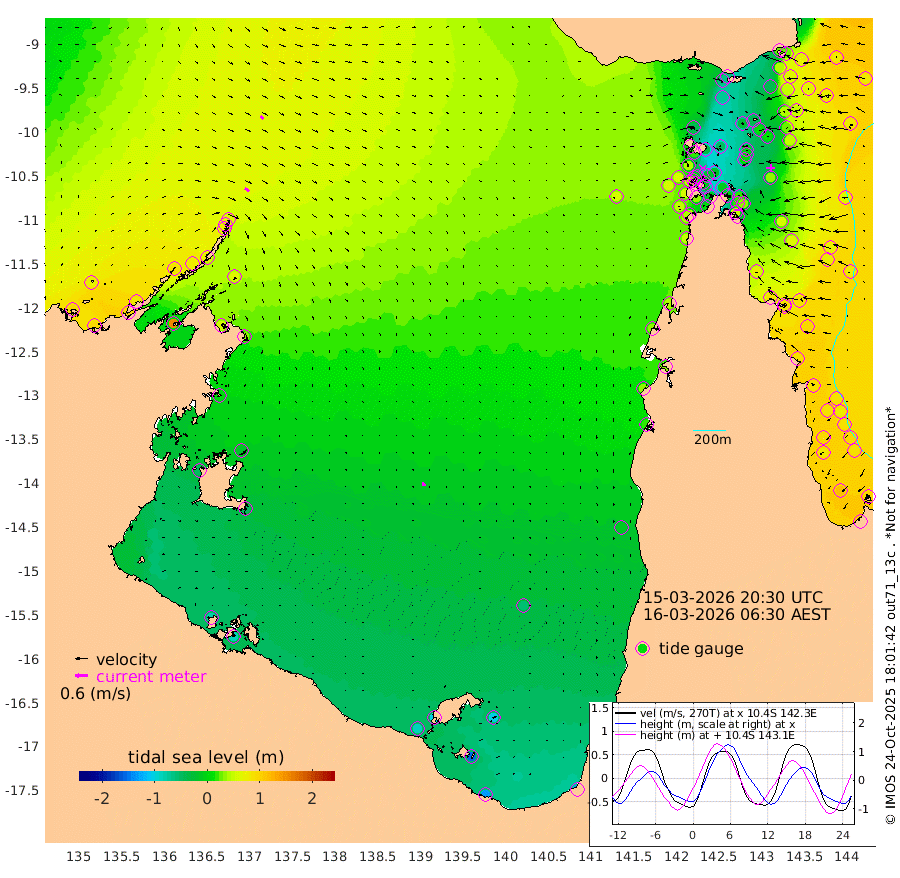 24cm/s 125T +3cm/s rms + 7cm/s -42T. ARA-GOC87 57m 19cm/s 159T +3cm/s rms + 2cm/s -2T. ARA-GOC87 60m 19cm/s 131T +2cm/s rms + 3cm/s 61T. ARA-GOC87 47m 26cm Daru 28cm Bobo Island 82cm Meer Island Barge 81cm Bramble Cay 66cm Unnamed Cay 47cm Pearce Cay 66cm Stephens Island 75cm Merrie England Shoals 41cm Mutacomal Reef 68cm Darnley Island Barge 82cm East Cay 46cm Yorke Island Barge 43cm Rennel Island 27cm Aureed Island 14cm Dungeness Reef -38cm Zagai Island -27cm Yam Island -60cm Dauan Island -61cm Saibai Island -69cm Phipi Reef -44cm Warrior Reef - West -38cm Mabuiag Island Barge 48cm Half Way Island 10cm Coconut Island 36cm Dugong Islet -7cm Poll Island 4cm Kirkcaldie Reef -45cm Suarji Island -7cm Sue Islet 44cm Hawkesbury Island -19cm Alert Patches -20cm Twin Island 15cm Badu Island -36cm St Pauls (Moa Island) 19cm Kubin (Moa Island) -14cm Ince Point -4cm Thursday Island -9cm Nardana Patches 13cm Turtle Head 17cm Round Island 46cm Goods Island 58cm Booby Island 53cm White Rocks Area 55cm Carpentaria -26cm Papou Point 58cm Bampfield Head 40cm Crab Island 49cm Red Wallis Island 32cm Packe Island 22cm Harrington Reef 39cm Herald Camp -25cm Sharp Point 1cm Red Island Point -14cm Possession Island -9cm Alpha Rock -4cm Frederick Point 31cm Wyborn Reef Light 20cm Tetley Island 58cm Triangle Reef 46cm Turtle Head Island 74cm Maclennan Cay 82cm Raine Island 57cm Mcsweeny Reef 62cm Collette Reef 75cm Shadwell Reef 74cm Hannibal Island 83cm Round Point 48cm Vrilya Point 83cm Cape Grenville 79cm Hicks Island 90cm Sir Charles Hardy Island 24cm Harvey Island 96cm Kay Reef 85cm Rocky Island 86cm Chapman Island 85cm Ham Reef 88cm Jubilee Reef 75cm Night Island 85cm Unnamed Reef No. 3 92cm Morris Island 91cm 1st 3 Mile Opening 89cm Creech Reef 82cm Fife Island 113cm Eden Reef 101cm Stanley Island 105cm Normanby River 93cm Yabooma Island 96cm Hutchison River 80cm Elcho Island 69cm North West Crocodile Island 67cm Cape Wessel 83cm Stevens Island 75cm Guluwuru Island 76cm Hopeful Bay 70cm Auster Point 78cm Two Island Bay 91cm Cadell Strait 151cm Mallison Island 58cm Melville Bay (Gove Harbour) 65cm Truant Island 33cm Cape Arnhem 3cm Cape Grey -18cm Hawk Island -46cm Milner Bay (Groote Eylandt) -49cm Cape Beatrice -81cm West Island -88cm Centre Island -98cm Mornington Island -87cm West Wellesley Islands -103cm Bountiful Island -133cm Albert River Mouth -151cm Sweers Island -141cm Karumba -54cm Nassau River Offshore -15cm Christmas Creek 21cm Archer River 32cm Boyd Point 37cm Weipa (Humbug Point) 33cm Pennefather River 39cm Cullen Point