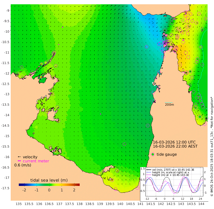 19cm/s 55T +3cm/s rms + 7cm/s -42T. ARA-GOC87 57m 26cm/s 1T +3cm/s rms + 2cm/s -2T. ARA-GOC87 60m 25cm/s 57T +2cm/s rms + 3cm/s 61T. ARA-GOC87 47m 84cm Daru 88cm Bobo Island 22cm Meer Island Barge 55cm Bramble Cay 77cm Unnamed Cay 75cm Pearce Cay 66cm Stephens Island 85cm Merrie England Shoals 93cm Mutacomal Reef 54cm Darnley Island Barge 34cm East Cay 66cm Yorke Island Barge 75cm Rennel Island 72cm Aureed Island 64cm Dungeness Reef 54cm Zagai Island 46cm Yam Island -18cm Dauan Island -3cm Saibai Island 12cm Phipi Reef 43cm Warrior Reef - West -8cm Mabuiag Island Barge 69cm Half Way Island 83cm Coconut Island 67cm Dugong Islet 63cm Poll Island 63cm Kirkcaldie Reef 53cm Suarji Island 60cm Sue Islet -88cm Hawkesbury Island 35cm Alert Patches 41cm Twin Island -67cm Badu Island 34cm St Pauls (Moa Island) -57cm Kubin (Moa Island) 2cm Ince Point -18cm Thursday Island -14cm Nardana Patches -49cm Turtle Head -56cm Round Island -94cm Goods Island -121cm Booby Island -97cm White Rocks Area -111cm Carpentaria 32cm Papou Point -101cm Bampfield Head -98cm Crab Island -110cm Red Wallis Island -74cm Packe Island 90cm Harrington Reef -106cm Herald Camp 17cm Sharp Point -29cm Red Island Point 7cm Possession Island 51cm Alpha Rock 63cm Frederick Point 93cm Wyborn Reef Light 89cm Tetley Island 23cm Triangle Reef 84cm Turtle Head Island 18cm Maclennan Cay 4cm Raine Island 69cm Mcsweeny Reef 63cm Collette Reef 27cm Shadwell Reef 70cm Hannibal Island 59cm Round Point -100cm Vrilya Point 45cm Cape Grenville 35cm Hicks Island 18cm Sir Charles Hardy Island 13cm Harvey Island 34cm Kay Reef 15cm Rocky Island 9cm Chapman Island 4cm Ham Reef 10cm Jubilee Reef 12cm Night Island 8cm Unnamed Reef No. 3 16cm Morris Island 0cm 1st 3 Mile Opening 7cm Creech Reef 21cm Fife Island 7cm Eden Reef 14cm Stanley Island 25cm Normanby River 17cm Yabooma Island 27cm Hutchison River 20cm Elcho Island 21cm North West Crocodile Island 36cm Cape Wessel 47cm Stevens Island 40cm Guluwuru Island 35cm Hopeful Bay 36cm Auster Point 21cm Two Island Bay 35cm Cadell Strait 87cm Mallison Island 41cm Melville Bay (Gove Harbour) 42cm Truant Island 32cm Cape Arnhem 45cm Cape Grey 45cm Hawk Island 55cm Milner Bay (Groote Eylandt) 46cm Cape Beatrice 51cm West Island 51cm Centre Island 48cm Mornington Island 46cm West Wellesley Islands 52cm Bountiful Island 64cm Albert River Mouth 95cm Sweers Island 63cm Karumba 3cm Nassau River Offshore -32cm Christmas Creek -58cm Archer River -75cm Boyd Point -87cm Weipa (Humbug Point) -64cm Pennefather River -102cm Cullen Point