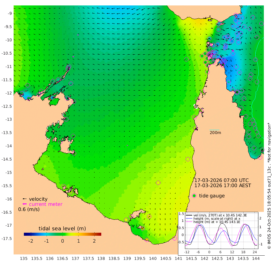 21cm/s -81T +3cm/s rms + 7cm/s -42T. ARA-GOC87 57m 13cm/s -84T +3cm/s rms + 2cm/s -2T. ARA-GOC87 60m 17cm/s -81T +2cm/s rms + 3cm/s 61T. ARA-GOC87 47m -125cm Daru -122cm Bobo Island -36cm Meer Island Barge -72cm Bramble Cay -108cm Unnamed Cay -107cm Pearce Cay -92cm Stephens Island -107cm Merrie England Shoals -133cm Mutacomal Reef -79cm Darnley Island Barge -44cm East Cay -101cm Yorke Island Barge -110cm Rennel Island -108cm Aureed Island -112cm Dungeness Reef -121cm Zagai Island -120cm Yam Island -76cm Dauan Island -86cm Saibai Island -69cm Phipi Reef -116cm Warrior Reef - West -83cm Mabuiag Island Barge -108cm Half Way Island -130cm Coconut Island -118cm Dugong Islet -126cm Poll Island -120cm Kirkcaldie Reef -125cm Suarji Island -122cm Sue Islet -27cm Hawkesbury Island -113cm Alert Patches -122cm Twin Island -43cm Badu Island -123cm St Pauls (Moa Island) -52cm Kubin (Moa Island) -94cm Ince Point -78cm Thursday Island -82cm Nardana Patches -50cm Turtle Head -34cm Round Island -16cm Goods Island 4cm Booby Island -16cm White Rocks Area -5cm Carpentaria -108cm Papou Point -10cm Bampfield Head 13cm Crab Island -7cm Red Wallis Island -37cm Packe Island -139cm Harrington Reef 1cm Herald Camp -36cm Sharp Point -45cm Red Island Point -76cm Possession Island -126cm Alpha Rock -131cm Frederick Point -143cm Wyborn Reef Light -145cm Tetley Island -48cm Triangle Reef -134cm Turtle Head Island -40cm Maclennan Cay -12cm Raine Island -100cm Mcsweeny Reef -84cm Collette Reef -40cm Shadwell Reef -90cm Hannibal Island -75cm Round Point 16cm Vrilya Point -60cm Cape Grenville -48cm Hicks Island -48cm Sir Charles Hardy Island -17cm Harvey Island -44cm Kay Reef -24cm Rocky Island -18cm Chapman Island -15cm Ham Reef -23cm Jubilee Reef -22cm Night Island -19cm Unnamed Reef No. 3 -25cm Morris Island -13cm 1st 3 Mile Opening -19cm Creech Reef -28cm Fife Island -13cm Eden Reef -21cm Stanley Island -30cm Normanby River -16cm Yabooma Island -28cm Hutchison River -13cm Elcho Island -11cm North West Crocodile Island -58cm Cape Wessel -45cm Stevens Island -67cm Guluwuru Island -21cm Hopeful Bay -41cm Auster Point -35cm Two Island Bay -43cm Cadell Strait -128cm Mallison Island -55cm Melville Bay (Gove Harbour) -64cm Truant Island -42cm Cape Arnhem -25cm Cape Grey -6cm Hawk Island 7cm Milner Bay (Groote Eylandt) 17cm Cape Beatrice 28cm West Island 38cm Centre Island 69cm Mornington Island 64cm West Wellesley Islands 80cm Bountiful Island 115cm Albert River Mouth 115cm Sweers Island 121cm Karumba 65cm Nassau River Offshore 51cm Christmas Creek 41cm Archer River 24cm Boyd Point 39cm Weipa (Humbug Point) 24cm Pennefather River 23cm Cullen Point