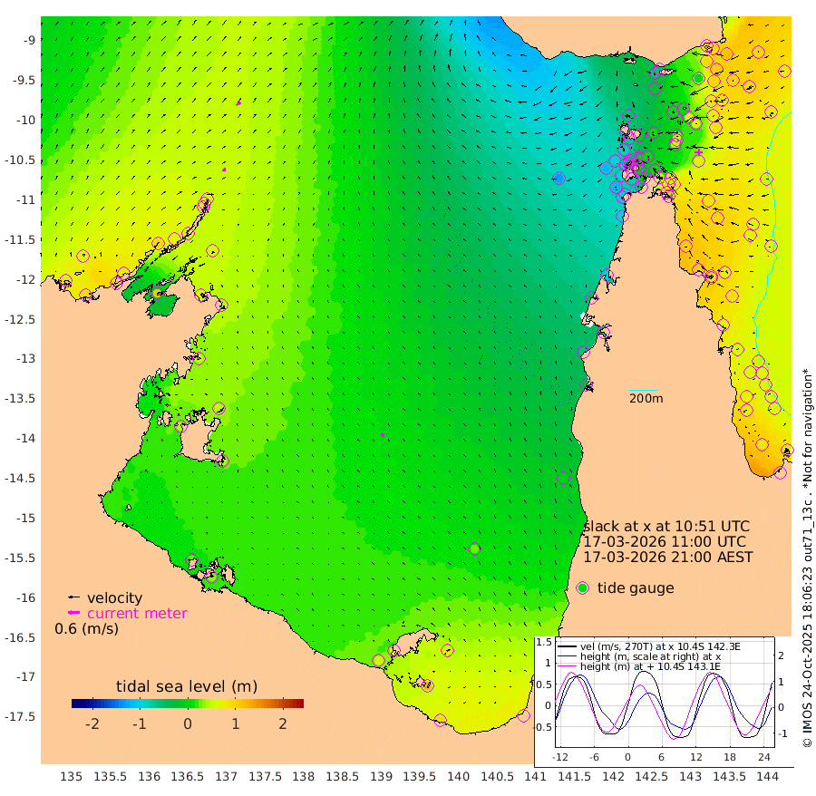 20cm/s 67T +3cm/s rms + 7cm/s -42T. ARA-GOC87 57m 19cm/s -19T +3cm/s rms + 2cm/s -2T. ARA-GOC87 60m 27cm/s 60T +2cm/s rms + 3cm/s 61T. ARA-GOC87 47m 88cm Daru 93cm Bobo Island 69cm Meer Island Barge 97cm Bramble Cay 103cm Unnamed Cay 94cm Pearce Cay 97cm Stephens Island 114cm Merrie England Shoals 97cm Mutacomal Reef 87cm Darnley Island Barge 81cm East Cay 82cm Yorke Island Barge 89cm Rennel Island 77cm Aureed Island 64cm Dungeness Reef 14cm Zagai Island 11cm Yam Island -61cm Dauan Island -58cm Saibai Island -16cm Phipi Reef 6cm Warrior Reef - West -56cm Mabuiag Island Barge 83cm Half Way Island 71cm Coconut Island 72cm Dugong Islet 40cm Poll Island 49cm Kirkcaldie Reef 9cm Suarji Island 34cm Sue Islet -90cm Hawkesbury Island 2cm Alert Patches 4cm Twin Island -85cm Badu Island -12cm St Pauls (Moa Island) -70cm Kubin (Moa Island) -32cm Ince Point -48cm Thursday Island -45cm Nardana Patches -62cm Turtle Head -61cm Round Island -92cm Goods Island -119cm Booby Island -100cm White Rocks Area -132cm Carpentaria -7cm Papou Point -98cm Bampfield Head -96cm Crab Island -116cm Red Wallis Island -81cm Packe Island 84cm Harrington Reef -98cm Herald Camp -4cm Sharp Point -46cm Red Island Point -14cm Possession Island 14cm Alpha Rock 38cm Frederick Point 87cm Wyborn Reef Light 75cm Tetley Island 50cm Triangle Reef 94cm Turtle Head Island 58cm Maclennan Cay 54cm Raine Island 90cm Mcsweeny Reef 91cm Collette Reef 68cm Shadwell Reef 105cm Hannibal Island 102cm Round Point -99cm Vrilya Point 87cm Cape Grenville 81cm Hicks Island 62cm Sir Charles Hardy Island 26cm Harvey Island 84cm Kay Reef 65cm Rocky Island 58cm Chapman Island 51cm Ham Reef 59cm Jubilee Reef 57cm Night Island 54cm Unnamed Reef No. 3 69cm Morris Island 55cm 1st 3 Mile Opening 59cm Creech Reef 70cm Fife Island 75cm Eden Reef 72cm Stanley Island 86cm Normanby River 78cm Yabooma Island 96cm Hutchison River 77cm Elcho Island 73cm North West Crocodile Island 53cm Cape Wessel 91cm Stevens Island 67cm Guluwuru Island 83cm Hopeful Bay 70cm Auster Point 60cm Two Island Bay 92cm Cadell Strait 110cm Mallison Island 66cm Melville Bay (Gove Harbour) 64cm Truant Island 44cm Cape Arnhem 52cm Cape Grey 52cm Hawk Island 48cm Milner Bay (Groote Eylandt) 42cm Cape Beatrice 30cm West Island 32cm Centre Island 62cm Mornington Island 58cm West Wellesley Islands 76cm Bountiful Island 95cm Albert River Mouth 125cm Sweers Island 98cm Karumba 29cm Nassau River Offshore -4cm Christmas Creek -33cm Archer River -61cm Boyd Point -62cm Weipa (Humbug Point) -52cm Pennefather River -98cm Cullen Point