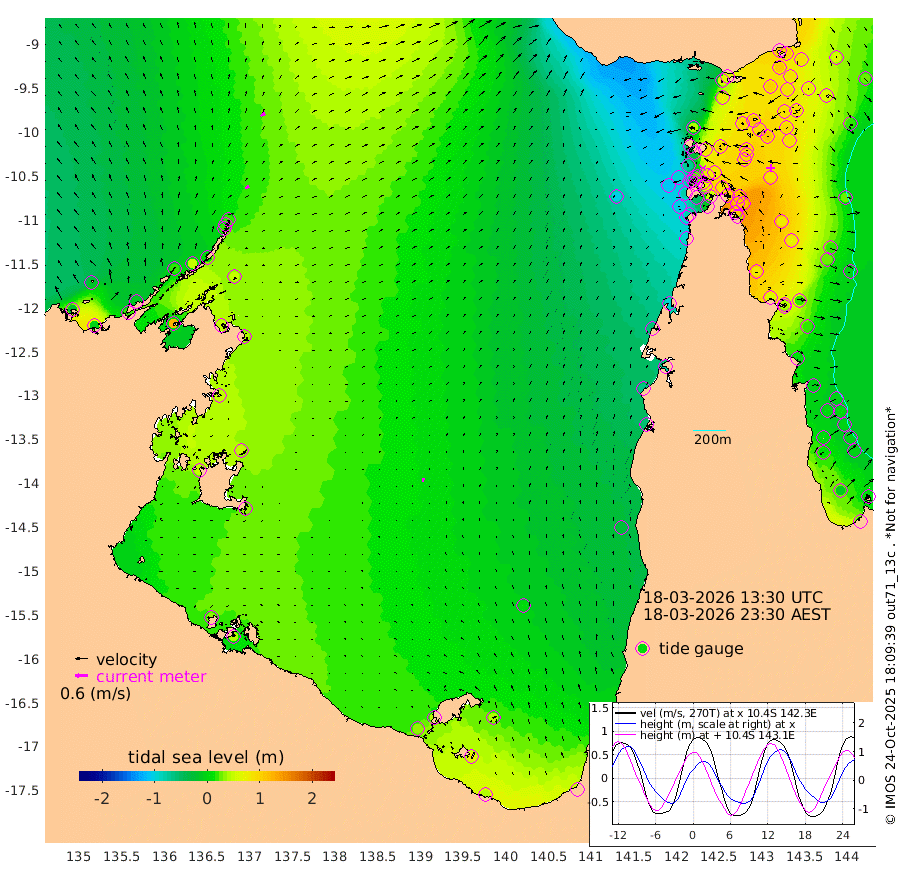 22cm/s 67T +3cm/s rms + 7cm/s -42T. ARA-GOC87 57m 17cm/s 9T +3cm/s rms + 2cm/s -2T. ARA-GOC87 60m 26cm/s 59T +2cm/s rms + 3cm/s 61T. ARA-GOC87 47m 112cm Daru 110cm Bobo Island 21cm Meer Island Barge 54cm Bramble Cay 89cm Unnamed Cay 87cm Pearce Cay 73cm Stephens Island 88cm Merrie England Shoals 111cm Mutacomal Reef 64cm Darnley Island Barge 27cm East Cay 86cm Yorke Island Barge 90cm Rennel Island 94cm Aureed Island 96cm Dungeness Reef 108cm Zagai Island 93cm Yam Island 53cm Dauan Island 62cm Saibai Island 82cm Phipi Reef 101cm Warrior Reef - West 39cm Mabuiag Island Barge 84cm Half Way Island 112cm Coconut Island 89cm Dugong Islet 100cm Poll Island 96cm Kirkcaldie Reef 103cm Suarji Island 100cm Sue Islet -71cm Hawkesbury Island 78cm Alert Patches 82cm Twin Island -38cm Badu Island 85cm St Pauls (Moa Island) -26cm Kubin (Moa Island) 42cm Ince Point 17cm Thursday Island 24cm Nardana Patches -19cm Turtle Head -25cm Round Island -78cm Goods Island -112cm Booby Island -94cm White Rocks Area -104cm Carpentaria 71cm Papou Point -79cm Bampfield Head -92cm Crab Island -104cm Red Wallis Island -52cm Packe Island 113cm Harrington Reef -80cm Herald Camp 34cm Sharp Point -12cm Red Island Point 46cm Possession Island 86cm Alpha Rock 98cm Frederick Point 118cm Wyborn Reef Light 118cm Tetley Island 28cm Triangle Reef 109cm Turtle Head Island 17cm Maclennan Cay -5cm Raine Island 80cm Mcsweeny Reef 71cm Collette Reef 27cm Shadwell Reef 76cm Hannibal Island 55cm Round Point -97cm Vrilya Point 41cm Cape Grenville 32cm Hicks Island 17cm Sir Charles Hardy Island 12cm Harvey Island 22cm Kay Reef 6cm Rocky Island -4cm Chapman Island -7cm Ham Reef 1cm Jubilee Reef 6cm Night Island -6cm Unnamed Reef No. 3 5cm Morris Island -5cm 1st 3 Mile Opening -1cm Creech Reef 9cm Fife Island -8cm Eden Reef 1cm Stanley Island 6cm Normanby River -22cm Yabooma Island -4cm Hutchison River -14cm Elcho Island -17cm North West Crocodile Island 22cm Cape Wessel 20cm Stevens Island 51cm Guluwuru Island 8cm Hopeful Bay 20cm Auster Point 7cm Two Island Bay 20cm Cadell Strait 123cm Mallison Island 48cm Melville Bay (Gove Harbour) 50cm Truant Island 43cm Cape Arnhem 49cm Cape Grey 49cm Hawk Island 49cm Milner Bay (Groote Eylandt) 36cm Cape Beatrice 36cm West Island 39cm Centre Island 43cm Mornington Island 35cm West Wellesley Islands 42cm Bountiful Island 44cm Albert River Mouth 78cm Sweers Island 47cm Karumba 0cm Nassau River Offshore -27cm Christmas Creek -56cm Archer River -66cm Boyd Point -81cm Weipa (Humbug Point) -60cm Pennefather River -93cm Cullen Point