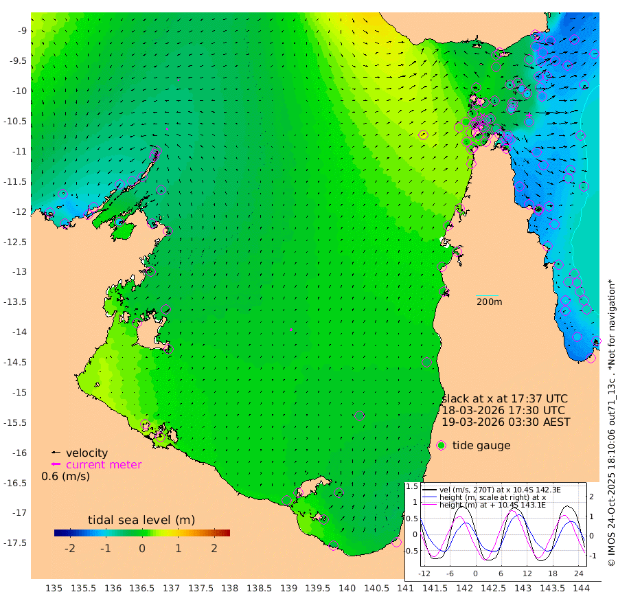 11cm/s -75T +3cm/s rms + 7cm/s -42T. ARA-GOC87 57m 18cm/s 26T +3cm/s rms + 2cm/s -2T. ARA-GOC87 60m 8cm/s -113T +2cm/s rms + 3cm/s 61T. ARA-GOC87 47m -134cm Daru -130cm Bobo Island -99cm Meer Island Barge -131cm Bramble Cay -141cm Unnamed Cay -139cm Pearce Cay -138cm Stephens Island -151cm Merrie England Shoals -141cm Mutacomal Reef -122cm Darnley Island Barge -112cm East Cay -119cm Yorke Island Barge -136cm Rennel Island -116cm Aureed Island -115cm Dungeness Reef -59cm Zagai Island -69cm Yam Island -17cm Dauan Island 4cm Saibai Island -42cm Phipi Reef -68cm Warrior Reef - West 3cm Mabuiag Island Barge -132cm Half Way Island -112cm Coconut Island -126cm Dugong Islet -93cm Poll Island -103cm Kirkcaldie Reef -54cm Suarji Island -75cm Sue Islet -9cm Hawkesbury Island -58cm Alert Patches -62cm Twin Island -1cm Badu Island -49cm St Pauls (Moa Island) -24cm Kubin (Moa Island) -37cm Ince Point -24cm Thursday Island -26cm Nardana Patches -24cm Turtle Head -11cm Round Island -6cm Goods Island 23cm Booby Island 9cm White Rocks Area 68cm Carpentaria -43cm Papou Point 27cm Bampfield Head 17cm Crab Island 15cm Red Wallis Island -24cm Packe Island -130cm Harrington Reef 4cm Herald Camp -7cm Sharp Point -16cm Red Island Point -34cm Possession Island -63cm Alpha Rock -91cm Frederick Point -129cm Wyborn Reef Light -119cm Tetley Island -85cm Triangle Reef -139cm Turtle Head Island -94cm Maclennan Cay -82cm Raine Island -129cm Mcsweeny Reef -122cm Collette Reef -96cm Shadwell Reef -138cm Hannibal Island -138cm Round Point 29cm Vrilya Point -119cm Cape Grenville -113cm Hicks Island -104cm Sir Charles Hardy Island -37cm Harvey Island -110cm Kay Reef -92cm Rocky Island -83cm Chapman Island -77cm Ham Reef -88cm Jubilee Reef -87cm Night Island -82cm Unnamed Reef No. 3 -99cm Morris Island -85cm 1st 3 Mile Opening -90cm Creech Reef -105cm Fife Island -109cm Eden Reef -102cm Stanley Island -116cm Normanby River -94cm Yabooma Island -120cm Hutchison River -91cm Elcho Island -88cm North West Crocodile Island -52cm Cape Wessel -93cm Stevens Island -73cm Guluwuru Island -78cm Hopeful Bay -64cm Auster Point -70cm Two Island Bay -117cm Cadell Strait -109cm Mallison Island -66cm Melville Bay (Gove Harbour) -66cm Truant Island -40cm Cape Arnhem -20cm Cape Grey -21cm Hawk Island 16cm Milner Bay (Groote Eylandt) 5cm Cape Beatrice 38cm West Island 45cm Centre Island -18cm Mornington Island -16cm West Wellesley Islands -14cm Bountiful Island -33cm Albert River Mouth -14cm Sweers Island -36cm Karumba -37cm Nassau River Offshore -35cm Christmas Creek -14cm Archer River 2cm Boyd Point -3cm Weipa (Humbug Point) 4cm Pennefather River 28cm Cullen Point