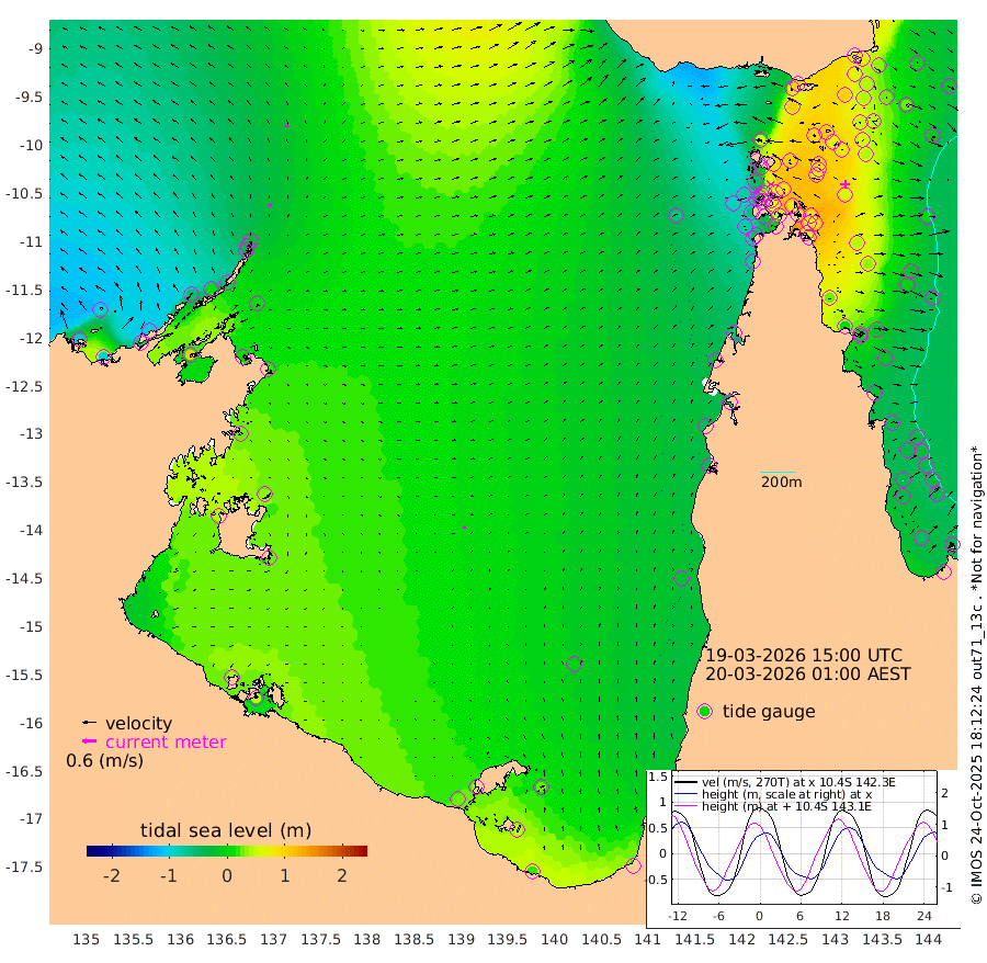 15cm/s 57T +3cm/s rms + 7cm/s -42T. ARA-GOC87 57m 13cm/s 31T +3cm/s rms + 2cm/s -2T. ARA-GOC87 60m 16cm/s 46T +2cm/s rms + 3cm/s 61T. ARA-GOC87 47m 75cm Daru 68cm Bobo Island -14cm Meer Island Barge 5cm Bramble Cay 42cm Unnamed Cay 39cm Pearce Cay 26cm Stephens Island 35cm Merrie England Shoals 68cm Mutacomal Reef 25cm Darnley Island Barge -17cm East Cay 52cm Yorke Island Barge 46cm Rennel Island 59cm Aureed Island 67cm Dungeness Reef 109cm Zagai Island 91cm Yam Island 86cm Dauan Island 98cm Saibai Island 98cm Phipi Reef 104cm Warrior Reef - West 63cm Mabuiag Island Barge 43cm Half Way Island 81cm Coconut Island 54cm Dugong Islet 82cm Poll Island 74cm Kirkcaldie Reef 102cm Suarji Island 91cm Sue Islet -58cm Hawkesbury Island 76cm Alert Patches 78cm Twin Island -19cm Badu Island 91cm St Pauls (Moa Island) -14cm Kubin (Moa Island) 50cm Ince Point 29cm Thursday Island 36cm Nardana Patches -7cm Turtle Head -12cm Round Island -63cm Goods Island -87cm Booby Island -81cm White Rocks Area -60cm Carpentaria 71cm Papou Point -55cm Bampfield Head -71cm Crab Island -81cm Red Wallis Island -39cm Packe Island 73cm Harrington Reef -56cm Herald Camp 41cm Sharp Point -7cm Red Island Point 49cm Possession Island 81cm Alpha Rock 79cm Frederick Point 80cm Wyborn Reef Light 86cm Tetley Island 1cm Triangle Reef 64cm Turtle Head Island -16cm Maclennan Cay -37cm Raine Island 38cm Mcsweeny Reef 30cm Collette Reef -5cm Shadwell Reef 29cm Hannibal Island 2cm Round Point -71cm Vrilya Point -3cm Cape Grenville -10cm Hicks Island -17cm Sir Charles Hardy Island -1cm Harvey Island -21cm Kay Reef -29cm Rocky Island -37cm Chapman Island -36cm Ham Reef -31cm Jubilee Reef -25cm Night Island -38cm Unnamed Reef No. 3 -34cm Morris Island -36cm 1st 3 Mile Opening -35cm Creech Reef -31cm Fife Island -51cm Eden Reef -38cm Stanley Island -43cm Normanby River -110cm Yabooma Island -104cm Hutchison River -98cm Elcho Island -100cm North West Crocodile Island -27cm Cape Wessel -59cm Stevens Island 11cm Guluwuru Island -63cm Hopeful Bay -40cm Auster Point -51cm Two Island Bay -62cm Cadell Strait 107cm Mallison Island 7cm Melville Bay (Gove Harbour) 9cm Truant Island 20cm Cape Arnhem 29cm Cape Grey 32cm Hawk Island 40cm Milner Bay (Groote Eylandt) 26cm Cape Beatrice 41cm West Island 47cm Centre Island 36cm Mornington Island 27cm West Wellesley Islands 27cm Bountiful Island 17cm Albert River Mouth 48cm Sweers Island 20cm Karumba -5cm Nassau River Offshore -23cm Christmas Creek -48cm Archer River -47cm Boyd Point -66cm Weipa (Humbug Point) -44cm Pennefather River -64cm Cullen Point