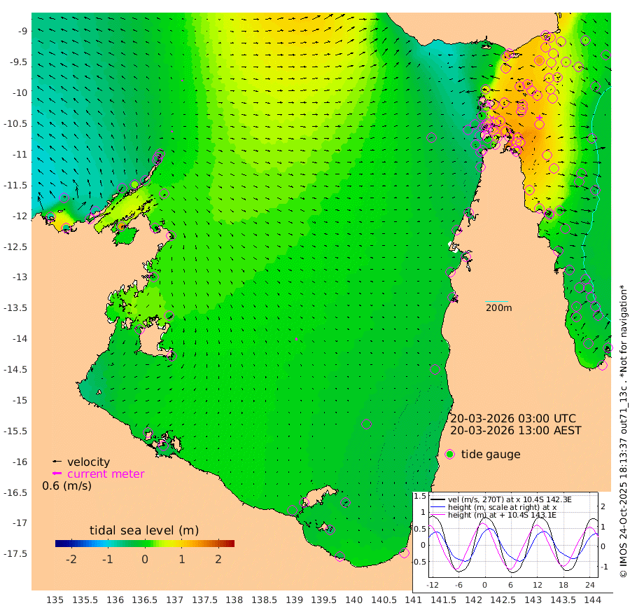8cm/s 47T +3cm/s rms + 7cm/s -42T. ARA-GOC87 57m 18cm/s 163T +3cm/s rms + 2cm/s -2T. ARA-GOC87 60m 8cm/s -13T +2cm/s rms + 3cm/s 61T. ARA-GOC87 47m 103cm Daru 90cm Bobo Island 3cm Meer Island Barge 29cm Bramble Cay 68cm Unnamed Cay 67cm Pearce Cay 52cm Stephens Island 61cm Merrie England Shoals 100cm Mutacomal Reef 47cm Darnley Island Barge 2cm East Cay 74cm Yorke Island Barge 77cm Rennel Island 78cm Aureed Island 93cm Dungeness Reef 129cm Zagai Island 127cm Yam Island 126cm Dauan Island 128cm Saibai Island 108cm Phipi Reef 139cm Warrior Reef - West 89cm Mabuiag Island Barge 77cm Half Way Island 99cm Coconut Island 93cm Dugong Islet 111cm Poll Island 107cm Kirkcaldie Reef 109cm Suarji Island 115cm Sue Islet 1cm Hawkesbury Island 96cm Alert Patches 105cm Twin Island 21cm Badu Island 119cm St Pauls (Moa Island) 36cm Kubin (Moa Island) 82cm Ince Point 61cm Thursday Island 68cm Nardana Patches 32cm Turtle Head 6cm Round Island -16cm Goods Island -43cm Booby Island -36cm White Rocks Area -34cm Carpentaria 98cm Papou Point -54cm Bampfield Head -36cm Crab Island -26cm Red Wallis Island 14cm Packe Island 100cm Harrington Reef -21cm Herald Camp 46cm Sharp Point 26cm Red Island Point 52cm Possession Island 110cm Alpha Rock 107cm Frederick Point 105cm Wyborn Reef Light 112cm Tetley Island 20cm Triangle Reef 87cm Turtle Head Island 6cm Maclennan Cay -23cm Raine Island 62cm Mcsweeny Reef 48cm Collette Reef 9cm Shadwell Reef 48cm Hannibal Island 25cm Round Point -38cm Vrilya Point 16cm Cape Grenville 9cm Hicks Island 12cm Sir Charles Hardy Island 6cm Harvey Island -4cm Kay Reef -15cm Rocky Island -25cm Chapman Island -20cm Ham Reef -13cm Jubilee Reef -10cm Night Island -20cm Unnamed Reef No. 3 -17cm Morris Island -25cm 1st 3 Mile Opening -18cm Creech Reef -10cm Fife Island -31cm Eden Reef -21cm Stanley Island -19cm Normanby River -78cm Yabooma Island -67cm Hutchison River -69cm Elcho Island -64cm North West Crocodile Island -9cm Cape Wessel -38cm Stevens Island 33cm Guluwuru Island -55cm Hopeful Bay -34cm Auster Point -24cm Two Island Bay -15cm Cadell Strait 138cm Mallison Island 14cm Melville Bay (Gove Harbour) 17cm Truant Island 18cm Cape Arnhem 6cm Cape Grey 3cm Hawk Island -13cm Milner Bay (Groote Eylandt) -6cm Cape Beatrice -8cm West Island -18cm Centre Island -8cm Mornington Island -9cm West Wellesley Islands -31cm Bountiful Island -32cm Albert River Mouth -54cm Sweers Island -36cm Karumba -9cm Nassau River Offshore -8cm Christmas Creek -30cm Archer River -20cm Boyd Point -38cm Weipa (Humbug Point) -29cm Pennefather River -33cm Cullen Point