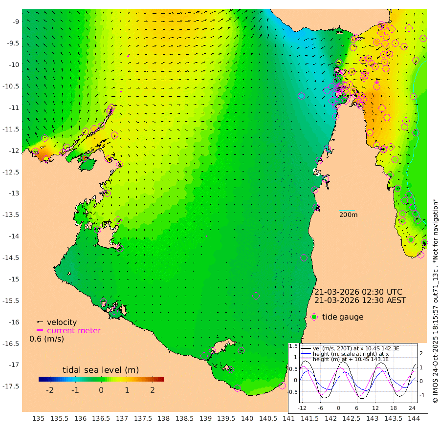 19cm/s 74T +3cm/s rms + 7cm/s -42T. ARA-GOC87 57m 12cm/s 175T +3cm/s rms + 2cm/s -2T. ARA-GOC87 60m 19cm/s 52T +2cm/s rms + 3cm/s 61T. ARA-GOC87 47m 120cm Daru 116cm Bobo Island 41cm Meer Island Barge 68cm Bramble Cay 98cm Unnamed Cay 101cm Pearce Cay 88cm Stephens Island 92cm Merrie England Shoals 115cm Mutacomal Reef 81cm Darnley Island Barge 43cm East Cay 100cm Yorke Island Barge 101cm Rennel Island 101cm Aureed Island 106cm Dungeness Reef 116cm Zagai Island 113cm Yam Island 90cm Dauan Island 90cm Saibai Island 84cm Phipi Reef 123cm Warrior Reef - West 51cm Mabuiag Island Barge 100cm Half Way Island 107cm Coconut Island 109cm Dugong Islet 108cm Poll Island 106cm Kirkcaldie Reef 90cm Suarji Island 108cm Sue Islet -32cm Hawkesbury Island 71cm Alert Patches 84cm Twin Island -16cm Badu Island 91cm St Pauls (Moa Island) 6cm Kubin (Moa Island) 51cm Ince Point 27cm Thursday Island 34cm Nardana Patches -1cm Turtle Head -24cm Round Island -49cm Goods Island -86cm Booby Island -73cm White Rocks Area -90cm Carpentaria 78cm Papou Point -91cm Bampfield Head -78cm Crab Island -73cm Red Wallis Island -25cm Packe Island 115cm Harrington Reef -57cm Herald Camp 32cm Sharp Point -1cm Red Island Point 31cm Possession Island 89cm Alpha Rock 100cm Frederick Point 118cm Wyborn Reef Light 119cm Tetley Island 43cm Triangle Reef 112cm Turtle Head Island 39cm Maclennan Cay 10cm Raine Island 89cm Mcsweeny Reef 75cm Collette Reef 39cm Shadwell Reef 82cm Hannibal Island 65cm Round Point -86cm Vrilya Point 50cm Cape Grenville 48cm Hicks Island 48cm Sir Charles Hardy Island 17cm Harvey Island 33cm Kay Reef 22cm Rocky Island 9cm Chapman Island 12cm Ham Reef 22cm Jubilee Reef 20cm Night Island 11cm Unnamed Reef No. 3 23cm Morris Island 12cm 1st 3 Mile Opening 17cm Creech Reef 27cm Fife Island 18cm Eden Reef 18cm Stanley Island 29cm Normanby River 34cm Yabooma Island 64cm Hutchison River 40cm Elcho Island 41cm North West Crocodile Island 64cm Cape Wessel 59cm Stevens Island 108cm Guluwuru Island 35cm Hopeful Bay 50cm Auster Point 63cm Two Island Bay 101cm Cadell Strait 175cm Mallison Island 84cm Melville Bay (Gove Harbour) 88cm Truant Island 62cm Cape Arnhem 44cm Cape Grey 30cm Hawk Island 0cm Milner Bay (Groote Eylandt) 2cm Cape Beatrice -21cm West Island -34cm Centre Island -9cm Mornington Island -10cm West Wellesley Islands -9cm Bountiful Island -7cm Albert River Mouth -21cm Sweers Island -14cm Karumba -16cm Nassau River Offshore -23cm Christmas Creek -51cm Archer River -47cm Boyd Point -61cm Weipa (Humbug Point) -63cm Pennefather River -77cm Cullen Point