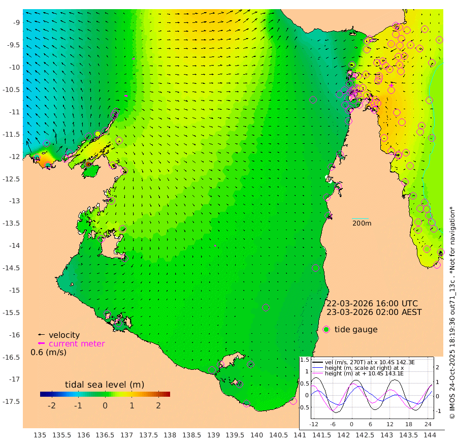 30cm/s 98T +3cm/s rms + 7cm/s -42T. ARA-GOC87 57m 15cm/s 149T +3cm/s rms + 2cm/s -2T. ARA-GOC87 60m 22cm/s 83T +2cm/s rms + 3cm/s 61T. ARA-GOC87 47m 102cm Daru 98cm Bobo Island 52cm Meer Island Barge 63cm Bramble Cay 85cm Unnamed Cay 85cm Pearce Cay 79cm Stephens Island 79cm Merrie England Shoals 90cm Mutacomal Reef 82cm Darnley Island Barge 46cm East Cay 93cm Yorke Island Barge 81cm Rennel Island 93cm Aureed Island 92cm Dungeness Reef 104cm Zagai Island 87cm Yam Island 82cm Dauan Island 80cm Saibai Island 91cm Phipi Reef 104cm Warrior Reef - West 42cm Mabuiag Island Barge 83cm Half Way Island 96cm Coconut Island 87cm Dugong Islet 88cm Poll Island 87cm Kirkcaldie Reef 83cm Suarji Island 92cm Sue Islet -36cm Hawkesbury Island 68cm Alert Patches 72cm Twin Island -6cm Badu Island 79cm St Pauls (Moa Island) 5cm Kubin (Moa Island) 46cm Ince Point 30cm Thursday Island 35cm Nardana Patches 10cm Turtle Head -5cm Round Island -29cm Goods Island -50cm Booby Island -55cm White Rocks Area -36cm Carpentaria 61cm Papou Point -32cm Bampfield Head -40cm Crab Island -49cm Red Wallis Island -11cm Packe Island 93cm Harrington Reef -29cm Herald Camp 27cm Sharp Point -4cm Red Island Point 43cm Possession Island 69cm Alpha Rock 82cm Frederick Point 95cm Wyborn Reef Light 95cm Tetley Island 49cm Triangle Reef 96cm Turtle Head Island 44cm Maclennan Cay 28cm Raine Island 81cm Mcsweeny Reef 74cm Collette Reef 51cm Shadwell Reef 80cm Hannibal Island 59cm Round Point -38cm Vrilya Point 53cm Cape Grenville 51cm Hicks Island 51cm Sir Charles Hardy Island 18cm Harvey Island 40cm Kay Reef 34cm Rocky Island 26cm Chapman Island 26cm Ham Reef 35cm Jubilee Reef 36cm Night Island 25cm Unnamed Reef No. 3 35cm Morris Island 36cm 1st 3 Mile Opening 35cm Creech Reef 35cm Fife Island 35cm Eden Reef 34cm Stanley Island 31cm Normanby River -79cm Yabooma Island -61cm Hutchison River -69cm Elcho Island -79cm North West Crocodile Island -1cm Cape Wessel -34cm Stevens Island 67cm Guluwuru Island -41cm Hopeful Bay -15cm Auster Point -15cm Two Island Bay 1cm Cadell Strait 208cm Mallison Island 45cm Melville Bay (Gove Harbour) 51cm Truant Island 47cm Cape Arnhem 27cm Cape Grey 19cm Hawk Island -3cm Milner Bay (Groote Eylandt) -12cm Cape Beatrice -25cm West Island -21cm Centre Island -5cm Mornington Island -12cm West Wellesley Islands -26cm Bountiful Island -43cm Albert River Mouth -37cm Sweers Island -43cm Karumba -6cm Nassau River Offshore 3cm Christmas Creek -13cm Archer River -10cm Boyd Point -23cm Weipa (Humbug Point) -12cm Pennefather River -33cm Cullen Point