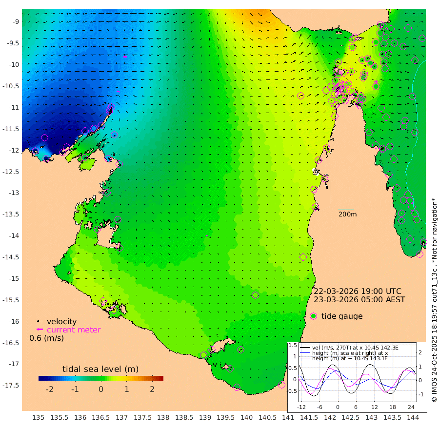 29cm/s -79T +3cm/s rms + 7cm/s -42T. ARA-GOC87 57m 15cm/s 143T +3cm/s rms + 2cm/s -2T. ARA-GOC87 60m 35cm/s -91T +2cm/s rms + 3cm/s 61T. ARA-GOC87 47m -8cm Daru -21cm Bobo Island -19cm Meer Island Barge -25cm Bramble Cay -10cm Unnamed Cay -30cm Pearce Cay -22cm Stephens Island -11cm Merrie England Shoals -2cm Mutacomal Reef -12cm Darnley Island Barge -26cm East Cay -6cm Yorke Island Barge -14cm Rennel Island -10cm Aureed Island -2cm Dungeness Reef 16cm Zagai Island 15cm Yam Island 30cm Dauan Island 42cm Saibai Island 27cm Phipi Reef 15cm Warrior Reef - West 39cm Mabuiag Island Barge -12cm Half Way Island -2cm Coconut Island -3cm Dugong Islet 7cm Poll Island 9cm Kirkcaldie Reef 31cm Suarji Island 23cm Sue Islet 22cm Hawkesbury Island 36cm Alert Patches 26cm Twin Island 23cm Badu Island 31cm St Pauls (Moa Island) 20cm Kubin (Moa Island) 33cm Ince Point 37cm Thursday Island 36cm Nardana Patches 31cm Turtle Head 32cm Round Island 27cm Goods Island 43cm Booby Island 31cm White Rocks Area 79cm Carpentaria 16cm Papou Point 55cm Bampfield Head 33cm Crab Island 39cm Red Wallis Island 29cm Packe Island -4cm Harrington Reef 46cm Herald Camp 19cm Sharp Point 18cm Red Island Point 31cm Possession Island 30cm Alpha Rock 12cm Frederick Point -3cm Wyborn Reef Light 1cm Tetley Island -11cm Triangle Reef -15cm Turtle Head Island -15cm Maclennan Cay -19cm Raine Island -10cm Mcsweeny Reef -7cm Collette Reef -8cm Shadwell Reef -12cm Hannibal Island -27cm Round Point 50cm Vrilya Point -11cm Cape Grenville -23cm Hicks Island -11cm Sir Charles Hardy Island -5cm Harvey Island -12cm Kay Reef -17cm Rocky Island -16cm Chapman Island -13cm Ham Reef -16cm Jubilee Reef -14cm Night Island -14cm Unnamed Reef No. 3 -20cm Morris Island -13cm 1st 3 Mile Opening -14cm Creech Reef -26cm Fife Island -28cm Eden Reef -14cm Stanley Island -30cm Normanby River -238cm Yabooma Island -281cm Hutchison River -240cm Elcho Island -236cm North West Crocodile Island -151cm Cape Wessel -213cm Stevens Island -135cm Guluwuru Island -187cm Hopeful Bay -168cm Auster Point -179cm Two Island Bay -249cm Cadell Strait -41cm Mallison Island -127cm Melville Bay (Gove Harbour) -131cm Truant Island -78cm Cape Arnhem -49cm Cape Grey -34cm Hawk Island -4cm Milner Bay (Groote Eylandt) 0cm Cape Beatrice 51cm West Island 58cm Centre Island 29cm Mornington Island 35cm West Wellesley Islands 18cm Bountiful Island -25cm Albert River Mouth -12cm Sweers Island -17cm Karumba 28cm Nassau River Offshore 38cm Christmas Creek 36cm Archer River 43cm Boyd Point 36cm Weipa (Humbug Point) 42cm Pennefather River 52cm Cullen Point