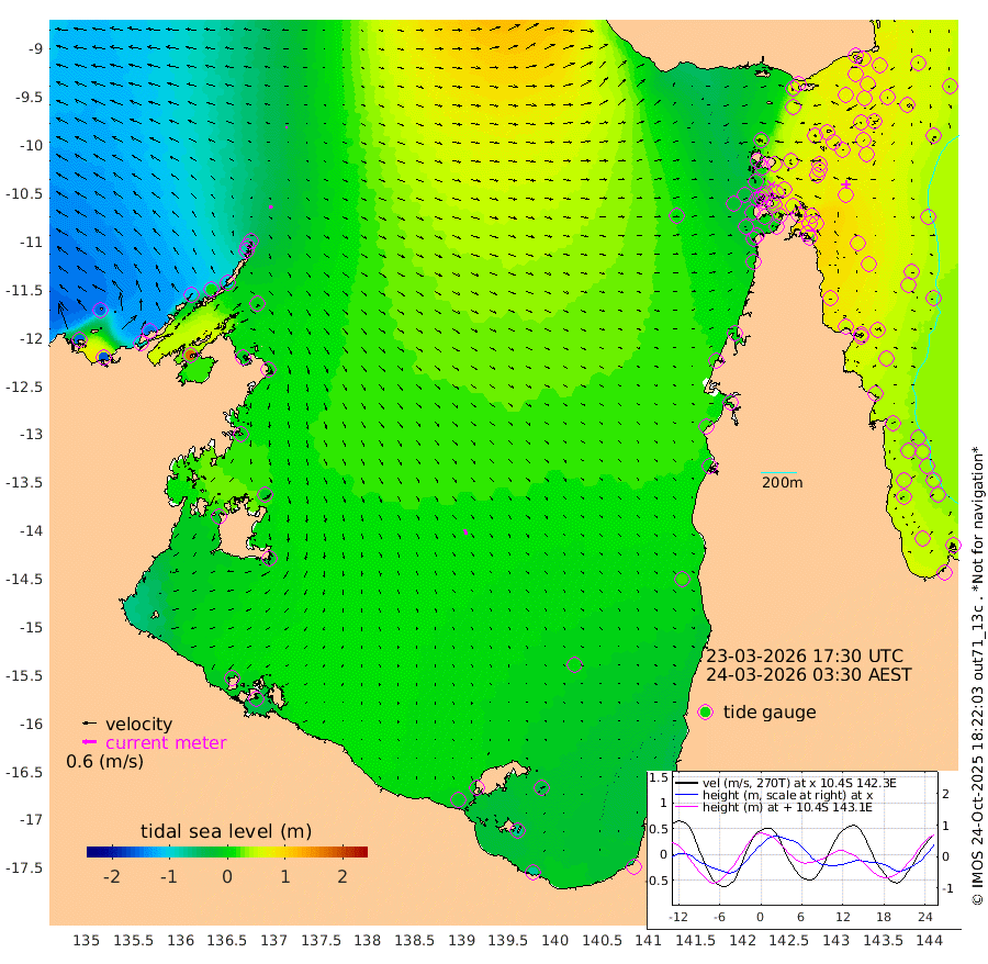 16cm/s 102T +3cm/s rms + 7cm/s -42T. ARA-GOC87 57m 24cm/s 153T +3cm/s rms + 2cm/s -2T. ARA-GOC87 60m 6cm/s 89T +2cm/s rms + 3cm/s 61T. ARA-GOC87 47m 77cm Daru 72cm Bobo Island 52cm Meer Island Barge 54cm Bramble Cay 71cm Unnamed Cay 63cm Pearce Cay 66cm Stephens Island 68cm Merrie England Shoals 71cm Mutacomal Reef 74cm Darnley Island Barge 44cm East Cay 78cm Yorke Island Barge 63cm Rennel Island 73cm Aureed Island 70cm Dungeness Reef 75cm Zagai Island 64cm Yam Island 59cm Dauan Island 63cm Saibai Island 60cm Phipi Reef 74cm Warrior Reef - West 33cm Mabuiag Island Barge 69cm Half Way Island 71cm Coconut Island 72cm Dugong Islet 65cm Poll Island 69cm Kirkcaldie Reef 59cm Suarji Island 75cm Sue Islet -17cm Hawkesbury Island 55cm Alert Patches 56cm Twin Island 0cm Badu Island 59cm St Pauls (Moa Island) 9cm Kubin (Moa Island) 39cm Ince Point 30cm Thursday Island 32cm Nardana Patches 16cm Turtle Head 1cm Round Island -9cm Goods Island -16cm Booby Island -27cm White Rocks Area 14cm Carpentaria 43cm Papou Point -5cm Bampfield Head -13cm Crab Island -17cm Red Wallis Island 4cm Packe Island 72cm Harrington Reef -5cm Herald Camp 22cm Sharp Point 1cm Red Island Point 33cm Possession Island 57cm Alpha Rock 63cm Frederick Point 71cm Wyborn Reef Light 70cm Tetley Island 46cm Triangle Reef 72cm Turtle Head Island 45cm Maclennan Cay 33cm Raine Island 68cm Mcsweeny Reef 65cm Collette Reef 52cm Shadwell Reef 70cm Hannibal Island 50cm Round Point 0cm Vrilya Point 53cm Cape Grenville 47cm Hicks Island 55cm Sir Charles Hardy Island 17cm Harvey Island 45cm Kay Reef 38cm Rocky Island 33cm Chapman Island 35cm Ham Reef 41cm Jubilee Reef 39cm Night Island 34cm Unnamed Reef No. 3 39cm Morris Island 42cm 1st 3 Mile Opening 42cm Creech Reef 37cm Fife Island 43cm Eden Reef 43cm Stanley Island 36cm Normanby River -155cm Yabooma Island -158cm Hutchison River -150cm Elcho Island -157cm North West Crocodile Island -55cm Cape Wessel -111cm Stevens Island 10cm Guluwuru Island -107cm Hopeful Bay -76cm Auster Point -76cm Two Island Bay -87cm Cadell Strait 178cm Mallison Island -11cm Melville Bay (Gove Harbour) -7cm Truant Island 8cm Cape Arnhem -2cm Cape Grey -8cm Hawk Island -19cm Milner Bay (Groote Eylandt) -22cm Cape Beatrice -17cm West Island -13cm Centre Island -11cm Mornington Island -11cm West Wellesley Islands -37cm Bountiful Island -73cm Albert River Mouth -72cm Sweers Island -71cm Karumba 0cm Nassau River Offshore 20cm Christmas Creek 12cm Archer River 19cm Boyd Point 5cm Weipa (Humbug Point) 16cm Pennefather River 2cm Cullen Point