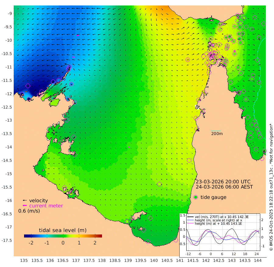 35cm/s -85T +3cm/s rms + 7cm/s -42T. ARA-GOC87 57m 20cm/s 158T +3cm/s rms + 2cm/s -2T. ARA-GOC87 60m 43cm/s -95T +2cm/s rms + 3cm/s 61T. ARA-GOC87 47m 20cm Daru 4cm Bobo Island 7cm Meer Island Barge 7cm Bramble Cay 23cm Unnamed Cay 3cm Pearce Cay 12cm Stephens Island 26cm Merrie England Shoals 31cm Mutacomal Reef 15cm Darnley Island Barge 4cm East Cay 19cm Yorke Island Barge 19cm Rennel Island 15cm Aureed Island 25cm Dungeness Reef 22cm Zagai Island 29cm Yam Island 29cm Dauan Island 35cm Saibai Island 31cm Phipi Reef 24cm Warrior Reef - West 45cm Mabuiag Island Barge 21cm Half Way Island 23cm Coconut Island 29cm Dugong Islet 29cm Poll Island 36cm Kirkcaldie Reef 46cm Suarji Island 39cm Sue Islet 55cm Hawkesbury Island 58cm Alert Patches 47cm Twin Island 47cm Badu Island 47cm St Pauls (Moa Island) 46cm Kubin (Moa Island) 54cm Ince Point 60cm Thursday Island 57cm Nardana Patches 59cm Turtle Head 56cm Round Island 61cm Goods Island 76cm Booby Island 67cm White Rocks Area 97cm Carpentaria 31cm Papou Point 82cm Bampfield Head 60cm Crab Island 73cm Red Wallis Island 63cm Packe Island 29cm Harrington Reef 75cm Herald Camp 20cm Sharp Point 43cm Red Island Point 49cm Possession Island 48cm Alpha Rock 37cm Frederick Point 25cm Wyborn Reef Light 27cm Tetley Island 11cm Triangle Reef 18cm Turtle Head Island 12cm Maclennan Cay 5cm Raine Island 20cm Mcsweeny Reef 22cm Collette Reef 17cm Shadwell Reef 21cm Hannibal Island 9cm Round Point 75cm Vrilya Point 22cm Cape Grenville 7cm Hicks Island 18cm Sir Charles Hardy Island 5cm Harvey Island 19cm Kay Reef 10cm Rocky Island 10cm Chapman Island 11cm Ham Reef 9cm Jubilee Reef 11cm Night Island 13cm Unnamed Reef No. 3 9cm Morris Island 13cm 1st 3 Mile Opening 13cm Creech Reef 3cm Fife Island 3cm Eden Reef 17cm Stanley Island 4cm Normanby River -227cm Yabooma Island -271cm Hutchison River -233cm Elcho Island -228cm North West Crocodile Island -159cm Cape Wessel -212cm Stevens Island -149cm Guluwuru Island -186cm Hopeful Bay -171cm Auster Point -183cm Two Island Bay -251cm Cadell Strait -77cm Mallison Island -137cm Melville Bay (Gove Harbour) -143cm Truant Island -90cm Cape Arnhem -60cm Cape Grey -44cm Hawk Island -17cm Milner Bay (Groote Eylandt) -7cm Cape Beatrice 44cm West Island 47cm Centre Island 28cm Mornington Island 37cm West Wellesley Islands 18cm Bountiful Island -30cm Albert River Mouth -25cm Sweers Island -19cm Karumba 42cm Nassau River Offshore 58cm Christmas Creek 57cm Archer River 62cm Boyd Point 59cm Weipa (Humbug Point) 61cm Pennefather River 72cm Cullen Point