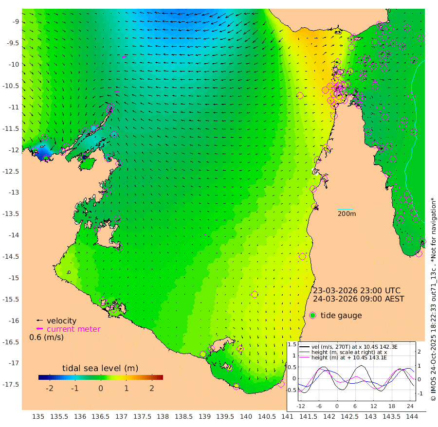 45cm/s -90T +3cm/s rms + 7cm/s -42T. ARA-GOC87 57m 12cm/s -130T +3cm/s rms + 2cm/s -2T. ARA-GOC87 60m 43cm/s -99T +2cm/s rms + 3cm/s 61T. ARA-GOC87 47m -17cm Daru -25cm Bobo Island -15cm Meer Island Barge -14cm Bramble Cay -13cm Unnamed Cay -15cm Pearce Cay -18cm Stephens Island -13cm Merrie England Shoals -8cm Mutacomal Reef -26cm Darnley Island Barge -8cm East Cay -25cm Yorke Island Barge -7cm Rennel Island -17cm Aureed Island -1cm Dungeness Reef -10cm Zagai Island 4cm Yam Island 27cm Dauan Island 13cm Saibai Island 37cm Phipi Reef 3cm Warrior Reef - West 42cm Mabuiag Island Barge -16cm Half Way Island -8cm Coconut Island -9cm Dugong Islet 3cm Poll Island 0cm Kirkcaldie Reef 34cm Suarji Island -8cm Sue Islet 99cm Hawkesbury Island 38cm Alert Patches 25cm Twin Island 87cm Badu Island 25cm St Pauls (Moa Island) 74cm Kubin (Moa Island) 47cm Ince Point 58cm Thursday Island 56cm Nardana Patches 81cm Turtle Head 88cm Round Island 103cm Goods Island 111cm Booby Island 116cm White Rocks Area 68cm Carpentaria 17cm Papou Point 113cm Bampfield Head 82cm Crab Island 106cm Red Wallis Island 92cm Packe Island -7cm Harrington Reef 107cm Herald Camp 1cm Sharp Point 65cm Red Island Point 50cm Possession Island 15cm Alpha Rock 10cm Frederick Point -11cm Wyborn Reef Light -8cm Tetley Island -4cm Triangle Reef -17cm Turtle Head Island -4cm Maclennan Cay -1cm Raine Island -13cm Mcsweeny Reef -13cm Collette Reef -8cm Shadwell Reef -17cm Hannibal Island -7cm Round Point 65cm Vrilya Point -5cm Cape Grenville -8cm Hicks Island -3cm Sir Charles Hardy Island -4cm Harvey Island -3cm Kay Reef 0cm Rocky Island 5cm Chapman Island -1cm Ham Reef -6cm Jubilee Reef -3cm Night Island 1cm Unnamed Reef No. 3 -1cm Morris Island 0cm 1st 3 Mile Opening -3cm Creech Reef -4cm Fife Island -7cm Eden Reef -3cm Stanley Island -6cm Normanby River 7cm Yabooma Island -7cm Hutchison River -2cm Elcho Island 4cm North West Crocodile Island -59cm Cape Wessel -35cm Stevens Island -104cm Guluwuru Island -18cm Hopeful Bay -41cm Auster Point -55cm Two Island Bay -78cm Cadell Strait -245cm Mallison Island -72cm Melville Bay (Gove Harbour) -82cm Truant Island -61cm Cape Arnhem -35cm Cape Grey -18cm Hawk Island -5cm Milner Bay (Groote Eylandt) 9cm Cape Beatrice 29cm West Island 26cm Centre Island 45cm Mornington Island 48cm West Wellesley Islands 83cm Bountiful Island 72cm Albert River Mouth 72cm Sweers Island 81cm Karumba 62cm Nassau River Offshore 60cm Christmas Creek 62cm Archer River 56cm Boyd Point 77cm Weipa (Humbug Point) 41cm Pennefather River 71cm Cullen Point