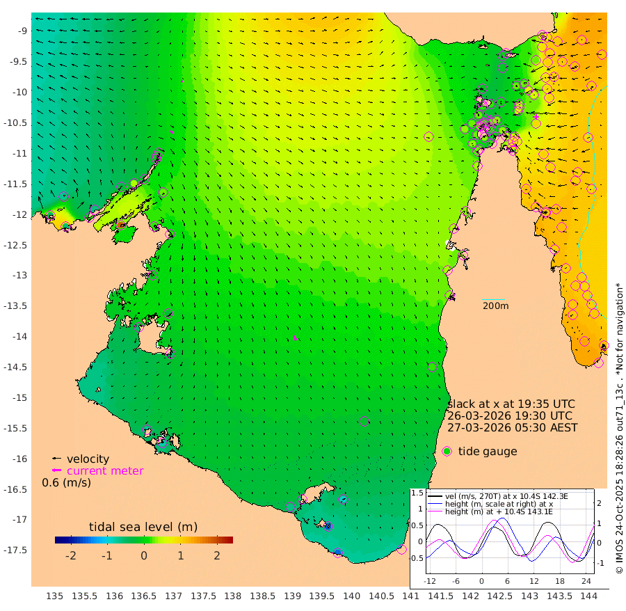23cm/s 119T +3cm/s rms + 7cm/s -42T. ARA-GOC87 57m 35cm/s 160T +3cm/s rms + 2cm/s -2T. ARA-GOC87 60m 12cm/s 133T +2cm/s rms + 3cm/s 61T. ARA-GOC87 47m 82cm Daru 88cm Bobo Island 108cm Meer Island Barge 111cm Bramble Cay 104cm Unnamed Cay 102cm Pearce Cay 111cm Stephens Island 111cm Merrie England Shoals 87cm Mutacomal Reef 115cm Darnley Island Barge 111cm East Cay 100cm Yorke Island Barge 90cm Rennel Island 90cm Aureed Island 70cm Dungeness Reef 23cm Zagai Island 26cm Yam Island -11cm Dauan Island -7cm Saibai Island -14cm Phipi Reef 23cm Warrior Reef - West -10cm Mabuiag Island Barge 97cm Half Way Island 67cm Coconut Island 90cm Dugong Islet 48cm Poll Island 60cm Kirkcaldie Reef 12cm Suarji Island 51cm Sue Islet 28cm Hawkesbury Island 28cm Alert Patches 31cm Twin Island 9cm Badu Island 16cm St Pauls (Moa Island) 22cm Kubin (Moa Island) 19cm Ince Point 20cm Thursday Island 17cm Nardana Patches 23cm Turtle Head 8cm Round Island 31cm Goods Island 34cm Booby Island 26cm White Rocks Area 48cm Carpentaria 16cm Papou Point 29cm Bampfield Head 24cm Crab Island 32cm Red Wallis Island 32cm Packe Island 84cm Harrington Reef 26cm Herald Camp -4cm Sharp Point 18cm Red Island Point 14cm Possession Island 33cm Alpha Rock 52cm Frederick Point 77cm Wyborn Reef Light 68cm Tetley Island 87cm Triangle Reef 95cm Turtle Head Island 102cm Maclennan Cay 95cm Raine Island 101cm Mcsweeny Reef 102cm Collette Reef 99cm Shadwell Reef 114cm Hannibal Island 113cm Round Point 40cm Vrilya Point 111cm Cape Grenville 106cm Hicks Island 118cm Sir Charles Hardy Island 34cm Harvey Island 116cm Kay Reef 103cm Rocky Island 103cm Chapman Island 103cm Ham Reef 106cm Jubilee Reef 95cm Night Island 104cm Unnamed Reef No. 3 109cm Morris Island 104cm 1st 3 Mile Opening 109cm Creech Reef 107cm Fife Island 129cm Eden Reef 117cm Stanley Island 123cm Normanby River -52cm Yabooma Island -55cm Hutchison River -61cm Elcho Island -68cm North West Crocodile Island 3cm Cape Wessel -35cm Stevens Island 43cm Guluwuru Island -34cm Hopeful Bay -14cm Auster Point -7cm Two Island Bay 0cm Cadell Strait 184cm Mallison Island 18cm Melville Bay (Gove Harbour) 25cm Truant Island 16cm Cape Arnhem -9cm Cape Grey -28cm Hawk Island -59cm Milner Bay (Groote Eylandt) -57cm Cape Beatrice -72cm West Island -76cm Centre Island -72cm Mornington Island -63cm West Wellesley Islands -94cm Bountiful Island -152cm Albert River Mouth -164cm Sweers Island -146cm Karumba -22cm Nassau River Offshore 20cm Christmas Creek 36cm Archer River 44cm Boyd Point 39cm Weipa (Humbug Point) 39cm Pennefather River 34cm Cullen Point