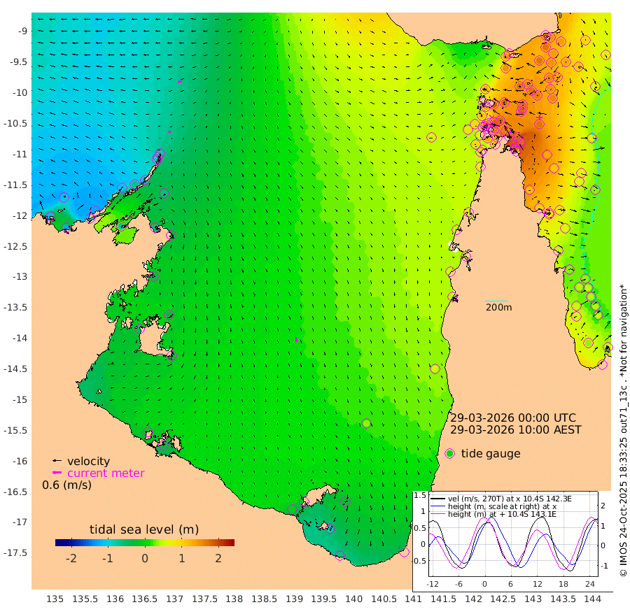 19cm/s -103T +3cm/s rms + 7cm/s -42T. ARA-GOC87 57m 34cm/s 170T +3cm/s rms + 2cm/s -2T. ARA-GOC87 60m 31cm/s -102T +2cm/s rms + 3cm/s 61T. ARA-GOC87 47m 165cm Daru 149cm Bobo Island 61cm Meer Island Barge 96cm Bramble Cay 139cm Unnamed Cay 145cm Pearce Cay 128cm Stephens Island 139cm Merrie England Shoals 168cm Mutacomal Reef 109cm Darnley Island Barge 71cm East Cay 134cm Yorke Island Barge 153cm Rennel Island 143cm Aureed Island 165cm Dungeness Reef 152cm Zagai Island 167cm Yam Island 136cm Dauan Island 121cm Saibai Island 147cm Phipi Reef 168cm Warrior Reef - West 125cm Mabuiag Island Barge 155cm Half Way Island 164cm Coconut Island 171cm Dugong Islet 171cm Poll Island 180cm Kirkcaldie Reef 174cm Suarji Island 161cm Sue Islet 118cm Hawkesbury Island 176cm Alert Patches 177cm Twin Island 113cm Badu Island 180cm St Pauls (Moa Island) 130cm Kubin (Moa Island) 158cm Ince Point 148cm Thursday Island 150cm Nardana Patches 133cm Turtle Head 106cm Round Island 104cm Goods Island 85cm Booby Island 93cm White Rocks Area 59cm Carpentaria 153cm Papou Point 73cm Bampfield Head 69cm Crab Island 95cm Red Wallis Island 128cm Packe Island 187cm Harrington Reef 100cm Herald Camp 54cm Sharp Point 120cm Red Island Point 137cm Possession Island 161cm Alpha Rock 180cm Frederick Point 167cm Wyborn Reef Light 171cm Tetley Island 72cm Triangle Reef 175cm Turtle Head Island 72cm Maclennan Cay 34cm Raine Island 132cm Mcsweeny Reef 112cm Collette Reef 65cm Shadwell Reef 118cm Hannibal Island 102cm Round Point 65cm Vrilya Point 90cm Cape Grenville 78cm Hicks Island 75cm Sir Charles Hardy Island 28cm Harvey Island 65cm Kay Reef 47cm Rocky Island 34cm Chapman Island 34cm Ham Reef 44cm Jubilee Reef 49cm Night Island 39cm Unnamed Reef No. 3 49cm Morris Island 40cm 1st 3 Mile Opening 47cm Creech Reef 54cm Fife Island 37cm Eden Reef 49cm Stanley Island 55cm Normanby River -116cm Yabooma Island -123cm Hutchison River -123cm Elcho Island -112cm North West Crocodile Island -82cm Cape Wessel -108cm Stevens Island -64cm Guluwuru Island -113cm Hopeful Bay -91cm Auster Point -89cm Two Island Bay -99cm Cadell Strait -74cm Mallison Island -62cm Melville Bay (Gove Harbour) -65cm Truant Island -44cm Cape Arnhem -38cm Cape Grey -35cm Hawk Island -49cm Milner Bay (Groote Eylandt) -29cm Cape Beatrice -14cm West Island -24cm Centre Island -5cm Mornington Island -4cm West Wellesley Islands -23cm Bountiful Island -66cm Albert River Mouth -86cm Sweers Island -45cm Karumba 33cm Nassau River Offshore 54cm Christmas Creek 45cm Archer River 53cm Boyd Point 46cm Weipa (Humbug Point) 52cm Pennefather River 56cm Cullen Point