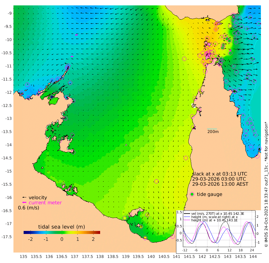 37cm/s -91T +3cm/s rms + 7cm/s -42T. ARA-GOC87 57m 19cm/s -158T +3cm/s rms + 2cm/s -2T. ARA-GOC87 60m 41cm/s -96T +2cm/s rms + 3cm/s 61T. ARA-GOC87 47m -30cm Daru -53cm Bobo Island -84cm Meer Island Barge -89cm Bramble Cay -70cm Unnamed Cay -64cm Pearce Cay -80cm Stephens Island -81cm Merrie England Shoals -42cm Mutacomal Reef -79cm Darnley Island Barge -93cm East Cay -55cm Yorke Island Barge -49cm Rennel Island -47cm Aureed Island -7cm Dungeness Reef 52cm Zagai Island 55cm Yam Island 141cm Dauan Island 122cm Saibai Island 132cm Phipi Reef 75cm Warrior Reef - West 109cm Mabuiag Island Barge -51cm Half Way Island -17cm Coconut Island -33cm Dugong Islet 20cm Poll Island 14cm Kirkcaldie Reef 64cm Suarji Island 22cm Sue Islet 95cm Hawkesbury Island 66cm Alert Patches 55cm Twin Island 115cm Badu Island 79cm St Pauls (Moa Island) 88cm Kubin (Moa Island) 81cm Ince Point 86cm Thursday Island 88cm Nardana Patches 94cm Turtle Head 81cm Round Island 92cm Goods Island 93cm Booby Island 82cm White Rocks Area 60cm Carpentaria 58cm Papou Point 62cm Bampfield Head 86cm Crab Island 92cm Red Wallis Island 89cm Packe Island -35cm Harrington Reef 88cm Herald Camp 34cm Sharp Point 80cm Red Island Point 60cm Possession Island 36cm Alpha Rock 18cm Frederick Point -37cm Wyborn Reef Light -21cm Tetley Island -55cm Triangle Reef -51cm Turtle Head Island -73cm Maclennan Cay -75cm Raine Island -65cm Mcsweeny Reef -69cm Collette Reef -70cm Shadwell Reef -84cm Hannibal Island -94cm Round Point 74cm Vrilya Point -88cm Cape Grenville -85cm Hicks Island -83cm Sir Charles Hardy Island -27cm Harvey Island -98cm Kay Reef -84cm Rocky Island -84cm Chapman Island -82cm Ham Reef -82cm Jubilee Reef -73cm Night Island -82cm Unnamed Reef No. 3 -90cm Morris Island -79cm 1st 3 Mile Opening -84cm Creech Reef -90cm Fife Island -110cm Eden Reef -97cm Stanley Island -114cm Normanby River -121cm Yabooma Island -130cm Hutchison River -112cm Elcho Island -99cm North West Crocodile Island -126cm Cape Wessel -130cm Stevens Island -122cm Guluwuru Island -122cm Hopeful Bay -123cm Auster Point -125cm Two Island Bay -138cm Cadell Strait -198cm Mallison Island -105cm Melville Bay (Gove Harbour) -117cm Truant Island -73cm Cape Arnhem -48cm Cape Grey -29cm Hawk Island -16cm Milner Bay (Groote Eylandt) 4cm Cape Beatrice 30cm West Island 30cm Centre Island 62cm Mornington Island 55cm West Wellesley Islands 67cm Bountiful Island 88cm Albert River Mouth 64cm Sweers Island 96cm Karumba 74cm Nassau River Offshore 71cm Christmas Creek 59cm Archer River 57cm Boyd Point 65cm Weipa (Humbug Point) 56cm Pennefather River 72cm Cullen Point