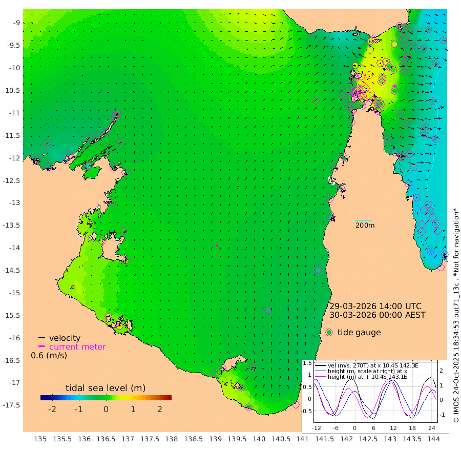 6cm/s 21T +3cm/s rms + 7cm/s -42T. ARA-GOC87 57m 32cm/s 14T +3cm/s rms + 2cm/s -2T. ARA-GOC87 60m 8cm/s 68T +2cm/s rms + 3cm/s 61T. ARA-GOC87 47m -2cm Daru -11cm Bobo Island -72cm Meer Island Barge -66cm Bramble Cay -33cm Unnamed Cay -37cm Pearce Cay -46cm Stephens Island -43cm Merrie England Shoals -8cm Mutacomal Reef -50cm Darnley Island Barge -79cm East Cay -23cm Yorke Island Barge -20cm Rennel Island -16cm Aureed Island 5cm Dungeness Reef 57cm Zagai Island 53cm Yam Island 52cm Dauan Island 58cm Saibai Island 48cm Phipi Reef 45cm Warrior Reef - West 60cm Mabuiag Island Barge -18cm Half Way Island 16cm Coconut Island -5cm Dugong Islet 34cm Poll Island 26cm Kirkcaldie Reef 67cm Suarji Island 36cm Sue Islet -9cm Hawkesbury Island 49cm Alert Patches 52cm Twin Island 12cm Badu Island 69cm St Pauls (Moa Island) 17cm Kubin (Moa Island) 46cm Ince Point 39cm Thursday Island 42cm Nardana Patches 12cm Turtle Head 25cm Round Island -16cm Goods Island -17cm Booby Island -12cm White Rocks Area 9cm Carpentaria 59cm Papou Point 12cm Bampfield Head -13cm Crab Island -16cm Red Wallis Island -5cm Packe Island 11cm Harrington Reef -1cm Herald Camp 31cm Sharp Point 10cm Red Island Point 49cm Possession Island 49cm Alpha Rock 35cm Frederick Point 10cm Wyborn Reef Light 21cm Tetley Island -54cm Triangle Reef 5cm Turtle Head Island -66cm Maclennan Cay -82cm Raine Island -34cm Mcsweeny Reef -44cm Collette Reef -66cm Shadwell Reef -52cm Hannibal Island -70cm Round Point -14cm Vrilya Point -67cm Cape Grenville -69cm Hicks Island -79cm Sir Charles Hardy Island -19cm Harvey Island -84cm Kay Reef -84cm Rocky Island -94cm Chapman Island -87cm Ham Reef -83cm Jubilee Reef -73cm Night Island -90cm Unnamed Reef No. 3 -88cm Morris Island -80cm 1st 3 Mile Opening -86cm Creech Reef -91cm Fife Island -113cm Eden Reef -93cm Stanley Island -101cm Normanby River -42cm Yabooma Island -49cm Hutchison River -39cm Elcho Island -36cm North West Crocodile Island -15cm Cape Wessel -27cm Stevens Island -27cm Guluwuru Island -37cm Hopeful Bay -17cm Auster Point -20cm Two Island Bay -55cm Cadell Strait -91cm Mallison Island -20cm Melville Bay (Gove Harbour) -16cm Truant Island -7cm Cape Arnhem 8cm Cape Grey 9cm Hawk Island 41cm Milner Bay (Groote Eylandt) 24cm Cape Beatrice 47cm West Island 53cm Centre Island -10cm Mornington Island -15cm West Wellesley Islands -23cm Bountiful Island -19cm Albert River Mouth 1cm Sweers Island -22cm Karumba -54cm Nassau River Offshore -66cm Christmas Creek -63cm Archer River -44cm Boyd Point -59cm Weipa (Humbug Point) -27cm Pennefather River -20cm Cullen Point