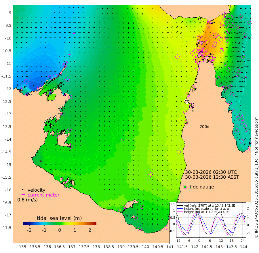 29cm/s -91T +3cm/s rms + 7cm/s -42T. ARA-GOC87 57m 23cm/s 179T +3cm/s rms + 2cm/s -2T. ARA-GOC87 60m 37cm/s -95T +2cm/s rms + 3cm/s 61T. ARA-GOC87 47m 42cm Daru 20cm Bobo Island -50cm Meer Island Barge -41cm Bramble Cay -4cm Unnamed Cay 4cm Pearce Cay -15cm Stephens Island -14cm Merrie England Shoals 32cm Mutacomal Reef -21cm Darnley Island Barge -55cm East Cay 11cm Yorke Island Barge 20cm Rennel Island 20cm Aureed Island 60cm Dungeness Reef 109cm Zagai Island 115cm Yam Island 163cm Dauan Island 148cm Saibai Island 157cm Phipi Reef 128cm Warrior Reef - West 134cm Mabuiag Island Barge 22cm Half Way Island 53cm Coconut Island 44cm Dugong Islet 87cm Poll Island 85cm Kirkcaldie Reef 120cm Suarji Island 88cm Sue Islet 104cm Hawkesbury Island 120cm Alert Patches 115cm Twin Island 117cm Badu Island 138cm St Pauls (Moa Island) 110cm Kubin (Moa Island) 123cm Ince Point 120cm Thursday Island 123cm Nardana Patches 111cm Turtle Head 93cm Round Island 90cm Goods Island 84cm Booby Island 76cm White Rocks Area 62cm Carpentaria 111cm Papou Point 58cm Bampfield Head 77cm Crab Island 88cm Red Wallis Island 102cm Packe Island 49cm Harrington Reef 92cm Herald Camp 52cm Sharp Point 100cm Red Island Point 99cm Possession Island 95cm Alpha Rock 88cm Frederick Point 39cm Wyborn Reef Light 54cm Tetley Island -22cm Triangle Reef 34cm Turtle Head Island -37cm Maclennan Cay -59cm Raine Island -2cm Mcsweeny Reef -15cm Collette Reef -39cm Shadwell Reef -25cm Hannibal Island -43cm Round Point 71cm Vrilya Point -43cm Cape Grenville -45cm Hicks Island -46cm Sir Charles Hardy Island -11cm Harvey Island -63cm Kay Reef -60cm Rocky Island -69cm Chapman Island -63cm Ham Reef -59cm Jubilee Reef -49cm Night Island -63cm Unnamed Reef No. 3 -64cm Morris Island -59cm 1st 3 Mile Opening -59cm Creech Reef -63cm Fife Island -88cm Eden Reef -70cm Stanley Island -81cm Normanby River -156cm Yabooma Island -168cm Hutchison River -152cm Elcho Island -136cm North West Crocodile Island -127cm Cape Wessel -152cm Stevens Island -111cm Guluwuru Island -149cm Hopeful Bay -132cm Auster Point -128cm Two Island Bay -148cm Cadell Strait -162cm Mallison Island -103cm Melville Bay (Gove Harbour) -110cm Truant Island -69cm Cape Arnhem -49cm Cape Grey -35cm Hawk Island -29cm Milner Bay (Groote Eylandt) -10cm Cape Beatrice 18cm West Island 16cm Centre Island 31cm Mornington Island 25cm West Wellesley Islands 17cm Bountiful Island 13cm Albert River Mouth -9cm Sweers Island 28cm Karumba 47cm Nassau River Offshore 53cm Christmas Creek 41cm Archer River 49cm Boyd Point 45cm Weipa (Humbug Point) 53cm Pennefather River 64cm Cullen Point