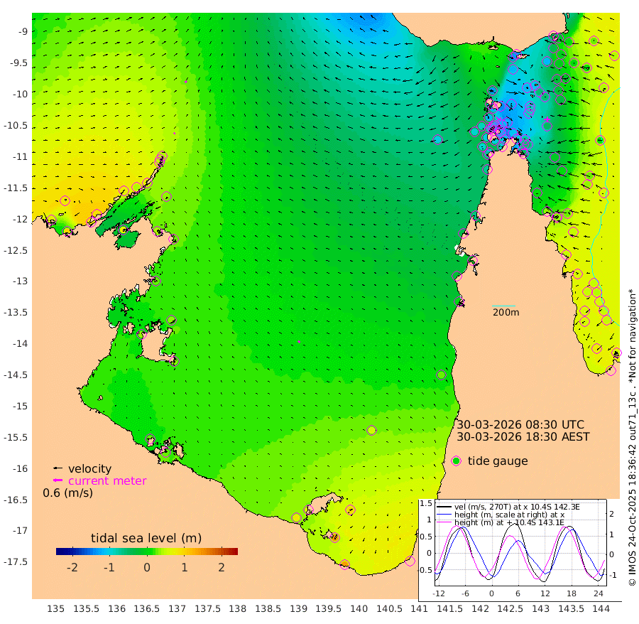 9cm/s 55T +3cm/s rms + 7cm/s -42T. ARA-GOC87 57m 17cm/s -50T +3cm/s rms + 2cm/s -2T. ARA-GOC87 60m 15cm/s 57T +2cm/s rms + 3cm/s 61T. ARA-GOC87 47m -46cm Daru -30cm Bobo Island 38cm Meer Island Barge 29cm Bramble Cay -10cm Unnamed Cay -11cm Pearce Cay 4cm Stephens Island 3cm Merrie England Shoals -41cm Mutacomal Reef 8cm Darnley Island Barge 44cm East Cay -22cm Yorke Island Barge -26cm Rennel Island -28cm Aureed Island -59cm Dungeness Reef -109cm Zagai Island -116cm Yam Island -136cm Dauan Island -135cm Saibai Island -115cm Phipi Reef -113cm Warrior Reef - West -134cm Mabuiag Island Barge -31cm Half Way Island -59cm Coconut Island -52cm Dugong Islet -90cm Poll Island -84cm Kirkcaldie Reef -120cm Suarji Island -94cm Sue Islet -114cm Hawkesbury Island -117cm Alert Patches -119cm Twin Island -113cm Badu Island -140cm St Pauls (Moa Island) -118cm Kubin (Moa Island) -124cm Ince Point -123cm Thursday Island -124cm Nardana Patches -105cm Turtle Head -109cm Round Island -91cm Goods Island -93cm Booby Island -88cm White Rocks Area -98cm Carpentaria -119cm Papou Point -102cm Bampfield Head -72cm Crab Island -94cm Red Wallis Island -102cm Packe Island -60cm Harrington Reef -111cm Herald Camp -46cm Sharp Point -92cm Red Island Point -110cm Possession Island -108cm Alpha Rock -95cm Frederick Point -57cm Wyborn Reef Light -72cm Tetley Island 13cm Triangle Reef -56cm Turtle Head Island 26cm Maclennan Cay 53cm Raine Island -9cm Mcsweeny Reef 7cm Collette Reef 32cm Shadwell Reef 14cm Hannibal Island 31cm Round Point -70cm Vrilya Point 30cm Cape Grenville 33cm Hicks Island 29cm Sir Charles Hardy Island 8cm Harvey Island 49cm Kay Reef 50cm Rocky Island 60cm Chapman Island 52cm Ham Reef 49cm Jubilee Reef 43cm Night Island 55cm Unnamed Reef No. 3 55cm Morris Island 49cm 1st 3 Mile Opening 51cm Creech Reef 58cm Fife Island 77cm Eden Reef 59cm Stanley Island 66cm Normanby River 77cm Yabooma Island 91cm Hutchison River 85cm Elcho Island 77cm North West Crocodile Island 40cm Cape Wessel 72cm Stevens Island 42cm Guluwuru Island 79cm Hopeful Bay 52cm Auster Point 43cm Two Island Bay 77cm Cadell Strait 77cm Mallison Island 42cm Melville Bay (Gove Harbour) 37cm Truant Island 27cm Cape Arnhem 28cm Cape Grey 32cm Hawk Island 33cm Milner Bay (Groote Eylandt) 37cm Cape Beatrice 24cm West Island 27cm Centre Island 74cm Mornington Island 76cm West Wellesley Islands 92cm Bountiful Island 137cm Albert River Mouth 144cm Sweers Island 126cm Karumba 57cm Nassau River Offshore 28cm Christmas Creek 7cm Archer River -27cm Boyd Point -15cm Weipa (Humbug Point) -30cm Pennefather River -64cm Cullen Point