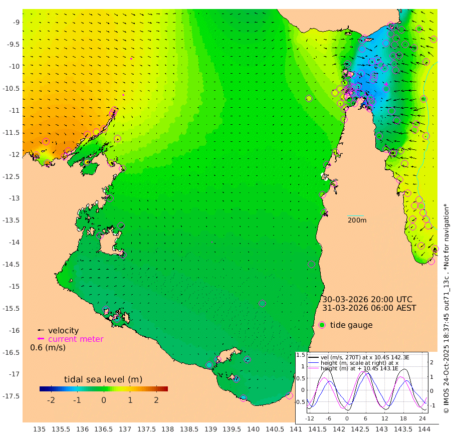 16cm/s 131T +3cm/s rms + 7cm/s -42T. ARA-GOC87 57m 6cm/s 157T +3cm/s rms + 2cm/s -2T. ARA-GOC87 60m 17cm/s 128T +2cm/s rms + 3cm/s 61T. ARA-GOC87 47m -63cm Daru -52cm Bobo Island 33cm Meer Island Barge 17cm Bramble Cay -20cm Unnamed Cay -31cm Pearce Cay -13cm Stephens Island -13cm Merrie England Shoals -50cm Mutacomal Reef -5cm Darnley Island Barge 35cm East Cay -34cm Yorke Island Barge -40cm Rennel Island -48cm Aureed Island -69cm Dungeness Reef -103cm Zagai Island -95cm Yam Island -96cm Dauan Island -87cm Saibai Island -113cm Phipi Reef -108cm Warrior Reef - West -64cm Mabuiag Island Barge -42cm Half Way Island -72cm Coconut Island -56cm Dugong Islet -84cm Poll Island -84cm Kirkcaldie Reef -107cm Suarji Island -81cm Sue Islet 35cm Hawkesbury Island -85cm Alert Patches -87cm Twin Island 0cm Badu Island -102cm St Pauls (Moa Island) -9cm Kubin (Moa Island) -66cm Ince Point -48cm Thursday Island -54cm Nardana Patches -20cm Turtle Head 5cm Round Island 32cm Goods Island 54cm Booby Island 48cm White Rocks Area 48cm Carpentaria -81cm Papou Point 62cm Bampfield Head 33cm Crab Island 44cm Red Wallis Island 9cm Packe Island -73cm Harrington Reef 39cm Herald Camp -45cm Sharp Point -20cm Red Island Point -54cm Possession Island -73cm Alpha Rock -80cm Frederick Point -55cm Wyborn Reef Light -64cm Tetley Island 18cm Triangle Reef -52cm Turtle Head Island 28cm Maclennan Cay 51cm Raine Island -21cm Mcsweeny Reef -8cm Collette Reef 27cm Shadwell Reef -4cm Hannibal Island 21cm Round Point 35cm Vrilya Point 24cm Cape Grenville 26cm Hicks Island 42cm Sir Charles Hardy Island 5cm Harvey Island 48cm Kay Reef 50cm Rocky Island 64cm Chapman Island 60cm Ham Reef 51cm Jubilee Reef 37cm Night Island 57cm Unnamed Reef No. 3 52cm Morris Island 51cm 1st 3 Mile Opening 50cm Creech Reef 45cm Fife Island 73cm Eden Reef 57cm Stanley Island 62cm Normanby River 156cm Yabooma Island 155cm Hutchison River 139cm Elcho Island 130cm North West Crocodile Island 100cm Cape Wessel 127cm Stevens Island 71cm Guluwuru Island 131cm Hopeful Bay 107cm Auster Point 111cm Two Island Bay 123cm Cadell Strait 104cm Mallison Island 66cm Melville Bay (Gove Harbour) 73cm Truant Island 35cm Cape Arnhem 6cm Cape Grey -8cm Hawk Island -33cm Milner Bay (Groote Eylandt) -43cm Cape Beatrice -77cm West Island -81cm Centre Island -93cm Mornington Island -85cm West Wellesley Islands -75cm Bountiful Island -104cm Albert River Mouth -106cm Sweers Island -108cm Karumba -56cm Nassau River Offshore -26cm Christmas Creek 16cm Archer River 24cm Boyd Point 37cm Weipa (Humbug Point) 14cm Pennefather River 38cm Cullen Point