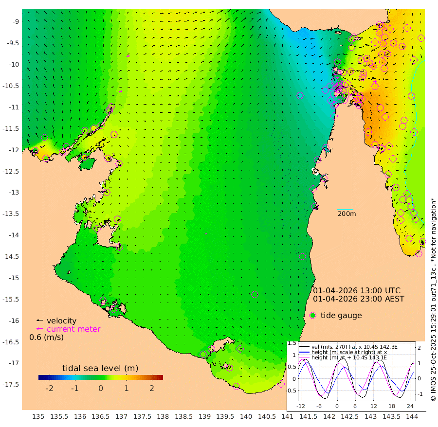 27cm/s 84T +3cm/s rms + 7cm/s -42T. ARA-GOC87 57m 10cm/s 8T +3cm/s rms + 2cm/s -2T. ARA-GOC87 60m 28cm/s 74T +2cm/s rms + 3cm/s 61T. ARA-GOC87 47m 127cm Daru 137cm Bobo Island 62cm Meer Island Barge 89cm Bramble Cay 110cm Unnamed Cay 126cm Pearce Cay 111cm Stephens Island 110cm Merrie England Shoals 119cm Mutacomal Reef 100cm Darnley Island Barge 72cm East Cay 111cm Yorke Island Barge 115cm Rennel Island 126cm Aureed Island 114cm Dungeness Reef 103cm Zagai Island 88cm Yam Island 35cm Dauan Island 35cm Saibai Island 63cm Phipi Reef 98cm Warrior Reef - West 13cm Mabuiag Island Barge 112cm Half Way Island 128cm Coconut Island 112cm Dugong Islet 106cm Poll Island 104cm Kirkcaldie Reef 101cm Suarji Island 94cm Sue Islet -78cm Hawkesbury Island 69cm Alert Patches 80cm Twin Island -42cm Badu Island 75cm St Pauls (Moa Island) -25cm Kubin (Moa Island) 36cm Ince Point 12cm Thursday Island 18cm Nardana Patches -15cm Turtle Head -38cm Round Island -65cm Goods Island -99cm Booby Island -79cm White Rocks Area -92cm Carpentaria 66cm Papou Point -80cm Bampfield Head -81cm Crab Island -88cm Red Wallis Island -41cm Packe Island 136cm Harrington Reef -84cm Herald Camp 23cm Sharp Point -11cm Red Island Point 36cm Possession Island 74cm Alpha Rock 103cm Frederick Point 124cm Wyborn Reef Light 119cm Tetley Island 59cm Triangle Reef 125cm Turtle Head Island 59cm Maclennan Cay 38cm Raine Island 108cm Mcsweeny Reef 96cm Collette Reef 58cm Shadwell Reef 106cm Hannibal Island 91cm Round Point -89cm Vrilya Point 75cm Cape Grenville 73cm Hicks Island 60cm Sir Charles Hardy Island 24cm Harvey Island 59cm Kay Reef 47cm Rocky Island 39cm Chapman Island 34cm Ham Reef 43cm Jubilee Reef 47cm Night Island 39cm Unnamed Reef No. 3 50cm Morris Island 40cm 1st 3 Mile Opening 45cm Creech Reef 58cm Fife Island 49cm Eden Reef 45cm Stanley Island 57cm Normanby River -4cm Yabooma Island 28cm Hutchison River 10cm Elcho Island 2cm North West Crocodile Island 43cm Cape Wessel 30cm Stevens Island 77cm Guluwuru Island 14cm Hopeful Bay 34cm Auster Point 23cm Two Island Bay 53cm Cadell Strait 108cm Mallison Island 65cm Melville Bay (Gove Harbour) 70cm Truant Island 56cm Cape Arnhem 48cm Cape Grey 40cm Hawk Island 31cm Milner Bay (Groote Eylandt) 24cm Cape Beatrice 13cm West Island 15cm Centre Island 34cm Mornington Island 28cm West Wellesley Islands 26cm Bountiful Island 31cm Albert River Mouth 44cm Sweers Island 28cm Karumba 7cm Nassau River Offshore -11cm Christmas Creek -41cm Archer River -50cm Boyd Point -61cm Weipa (Humbug Point) -53cm Pennefather River -85cm Cullen Point