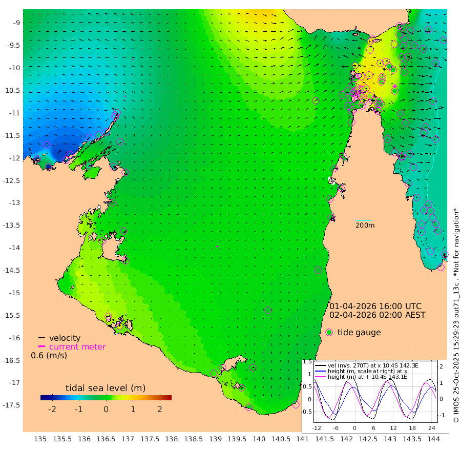 8cm/s -38T +3cm/s rms + 7cm/s -42T. ARA-GOC87 57m 14cm/s 40T +3cm/s rms + 2cm/s -2T. ARA-GOC87 60m 7cm/s -63T +2cm/s rms + 3cm/s 61T. ARA-GOC87 47m -9cm Daru -17cm Bobo Island -54cm Meer Island Barge -63cm Bramble Cay -38cm Unnamed Cay -38cm Pearce Cay -43cm Stephens Island -51cm Merrie England Shoals -22cm Mutacomal Reef -36cm Darnley Island Barge -67cm East Cay -16cm Yorke Island Barge -27cm Rennel Island -10cm Aureed Island 5cm Dungeness Reef 57cm Zagai Island 47cm Yam Island 68cm Dauan Island 74cm Saibai Island 58cm Phipi Reef 50cm Warrior Reef - West 55cm Mabuiag Island Barge -20cm Half Way Island 5cm Coconut Island -6cm Dugong Islet 25cm Poll Island 20cm Kirkcaldie Reef 61cm Suarji Island 35cm Sue Islet -26cm Hawkesbury Island 40cm Alert Patches 41cm Twin Island 3cm Badu Island 60cm St Pauls (Moa Island) 5cm Kubin (Moa Island) 38cm Ince Point 33cm Thursday Island 35cm Nardana Patches 10cm Turtle Head 4cm Round Island -16cm Goods Island -13cm Booby Island -19cm White Rocks Area 28cm Carpentaria 45cm Papou Point -2cm Bampfield Head -11cm Crab Island -15cm Red Wallis Island -10cm Packe Island 0cm Harrington Reef -6cm Herald Camp 30cm Sharp Point 1cm Red Island Point 32cm Possession Island 34cm Alpha Rock 22cm Frederick Point -11cm Wyborn Reef Light -1cm Tetley Island -41cm Triangle Reef -15cm Turtle Head Island -49cm Maclennan Cay -63cm Raine Island -33cm Mcsweeny Reef -40cm Collette Reef -51cm Shadwell Reef -49cm Hannibal Island -72cm Round Point -4cm Vrilya Point -60cm Cape Grenville -59cm Hicks Island -57cm Sir Charles Hardy Island -16cm Harvey Island -72cm Kay Reef -66cm Rocky Island -73cm Chapman Island -66cm Ham Reef -63cm Jubilee Reef -56cm Night Island -69cm Unnamed Reef No. 3 -70cm Morris Island -56cm 1st 3 Mile Opening -62cm Creech Reef -74cm Fife Island -87cm Eden Reef -73cm Stanley Island -86cm Normanby River -166cm Yabooma Island -183cm Hutchison River -159cm Elcho Island -157cm North West Crocodile Island -85cm Cape Wessel -142cm Stevens Island -63cm Guluwuru Island -138cm Hopeful Bay -102cm Auster Point -106cm Two Island Bay -151cm Cadell Strait -70cm Mallison Island -65cm Melville Bay (Gove Harbour) -64cm Truant Island -30cm Cape Arnhem -9cm Cape Grey -9cm Hawk Island 27cm Milner Bay (Groote Eylandt) 19cm Cape Beatrice 58cm West Island 65cm Centre Island 21cm Mornington Island 22cm West Wellesley Islands 10cm Bountiful Island -3cm Albert River Mouth 7cm Sweers Island -9cm Karumba -10cm Nassau River Offshore -15cm Christmas Creek -28cm Archer River -11cm Boyd Point -26cm Weipa (Humbug Point) -10cm Pennefather River -4cm Cullen Point