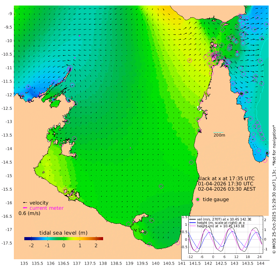 18cm/s -79T +3cm/s rms + 7cm/s -42T. ARA-GOC87 57m 12cm/s 35T +3cm/s rms + 2cm/s -2T. ARA-GOC87 60m 18cm/s -101T +2cm/s rms + 3cm/s 61T. ARA-GOC87 47m -93cm Daru -105cm Bobo Island -79cm Meer Island Barge -106cm Bramble Cay -101cm Unnamed Cay -115cm Pearce Cay -106cm Stephens Island -111cm Merrie England Shoals -99cm Mutacomal Reef -92cm Darnley Island Barge -96cm East Cay -86cm Yorke Island Barge -99cm Rennel Island -91cm Aureed Island -75cm Dungeness Reef -29cm Zagai Island -30cm Yam Island 15cm Dauan Island 22cm Saibai Island -6cm Phipi Reef -36cm Warrior Reef - West 25cm Mabuiag Island Barge -91cm Half Way Island -81cm Coconut Island -83cm Dugong Islet -56cm Poll Island -58cm Kirkcaldie Reef -21cm Suarji Island -41cm Sue Islet 13cm Hawkesbury Island -20cm Alert Patches -28cm Twin Island 20cm Badu Island -11cm St Pauls (Moa Island) 8cm Kubin (Moa Island) -3cm Ince Point 9cm Thursday Island 7cm Nardana Patches 9cm Turtle Head 19cm Round Island 21cm Goods Island 47cm Booby Island 32cm White Rocks Area 81cm Carpentaria -16cm Papou Point 52cm Bampfield Head 37cm Crab Island 35cm Red Wallis Island 7cm Packe Island -92cm Harrington Reef 39cm Herald Camp 5cm Sharp Point -2cm Red Island Point -4cm Possession Island -28cm Alpha Rock -57cm Frederick Point -93cm Wyborn Reef Light -83cm Tetley Island -71cm Triangle Reef -97cm Turtle Head Island -74cm Maclennan Cay -69cm Raine Island -96cm Mcsweeny Reef -93cm Collette Reef -74cm Shadwell Reef -105cm Hannibal Island -115cm Round Point 48cm Vrilya Point -93cm Cape Grenville -91cm Hicks Island -81cm Sir Charles Hardy Island -28cm Harvey Island -91cm Kay Reef -78cm Rocky Island -78cm Chapman Island -70cm Ham Reef -73cm Jubilee Reef -71cm Night Island -75cm Unnamed Reef No. 3 -83cm Morris Island -62cm 1st 3 Mile Opening -73cm Creech Reef -94cm Fife Island -94cm Eden Reef -81cm Stanley Island -101cm Normanby River -127cm Yabooma Island -161cm Hutchison River -130cm Elcho Island -127cm North West Crocodile Island -92cm Cape Wessel -130cm Stevens Island -96cm Guluwuru Island -116cm Hopeful Bay -99cm Auster Point -101cm Two Island Bay -159cm Cadell Strait -126cm Mallison Island -89cm Melville Bay (Gove Harbour) -91cm Truant Island -56cm Cape Arnhem -30cm Cape Grey -29cm Hawk Island 15cm Milner Bay (Groote Eylandt) 8cm Cape Beatrice 49cm West Island 55cm Centre Island 0cm Mornington Island 7cm West Wellesley Islands 3cm Bountiful Island -12cm Albert River Mouth -7cm Sweers Island -20cm Karumba -14cm Nassau River Offshore -9cm Christmas Creek 0cm Archer River 19cm Boyd Point 15cm Weipa (Humbug Point) 21cm Pennefather River 45cm Cullen Point